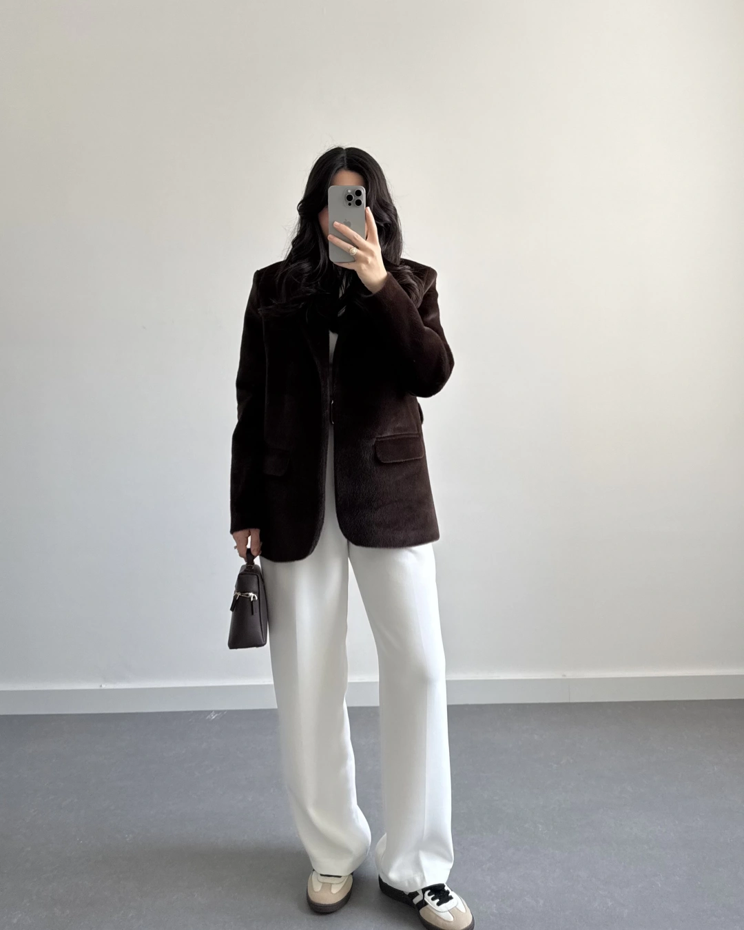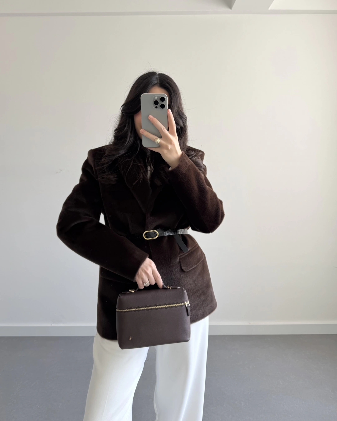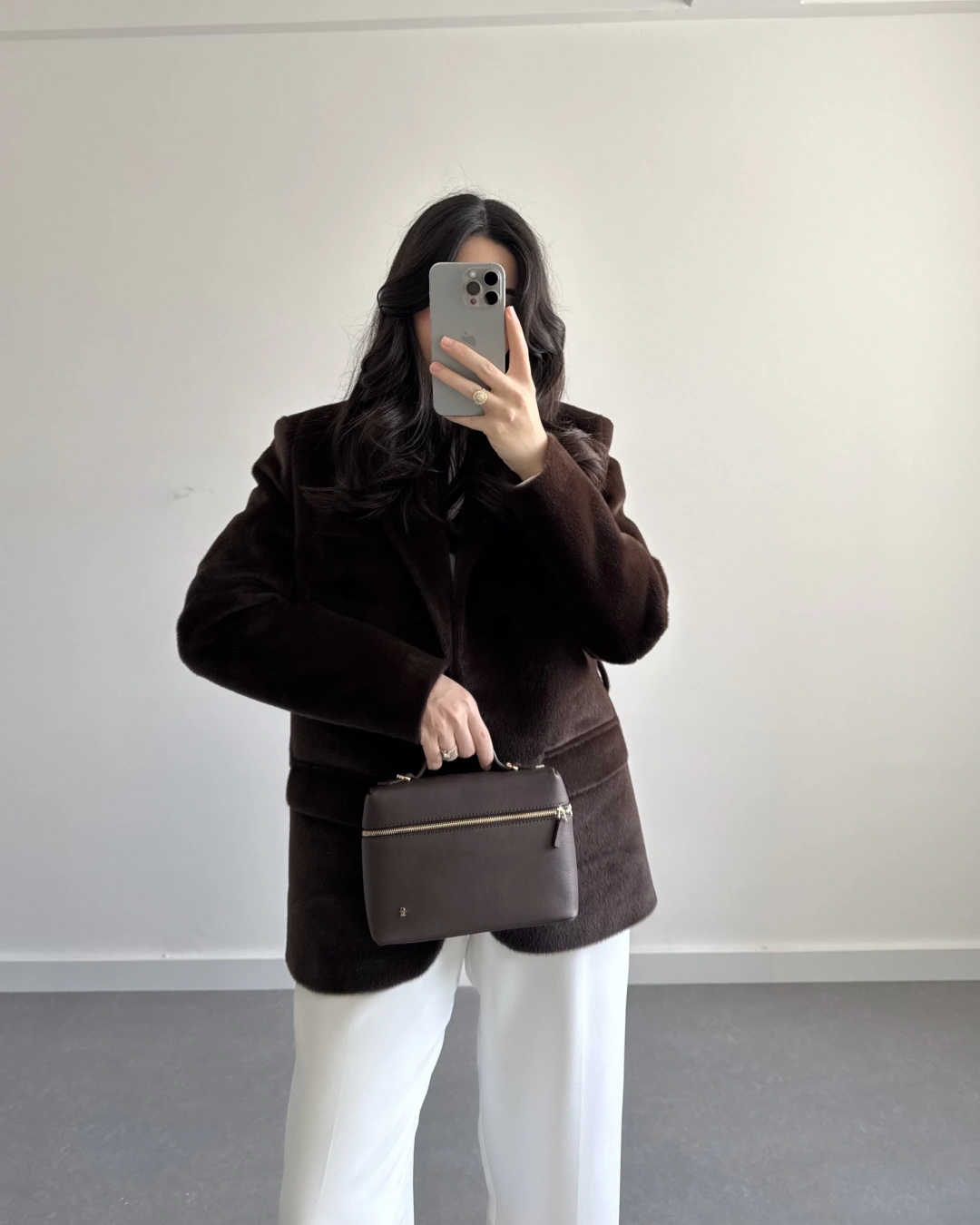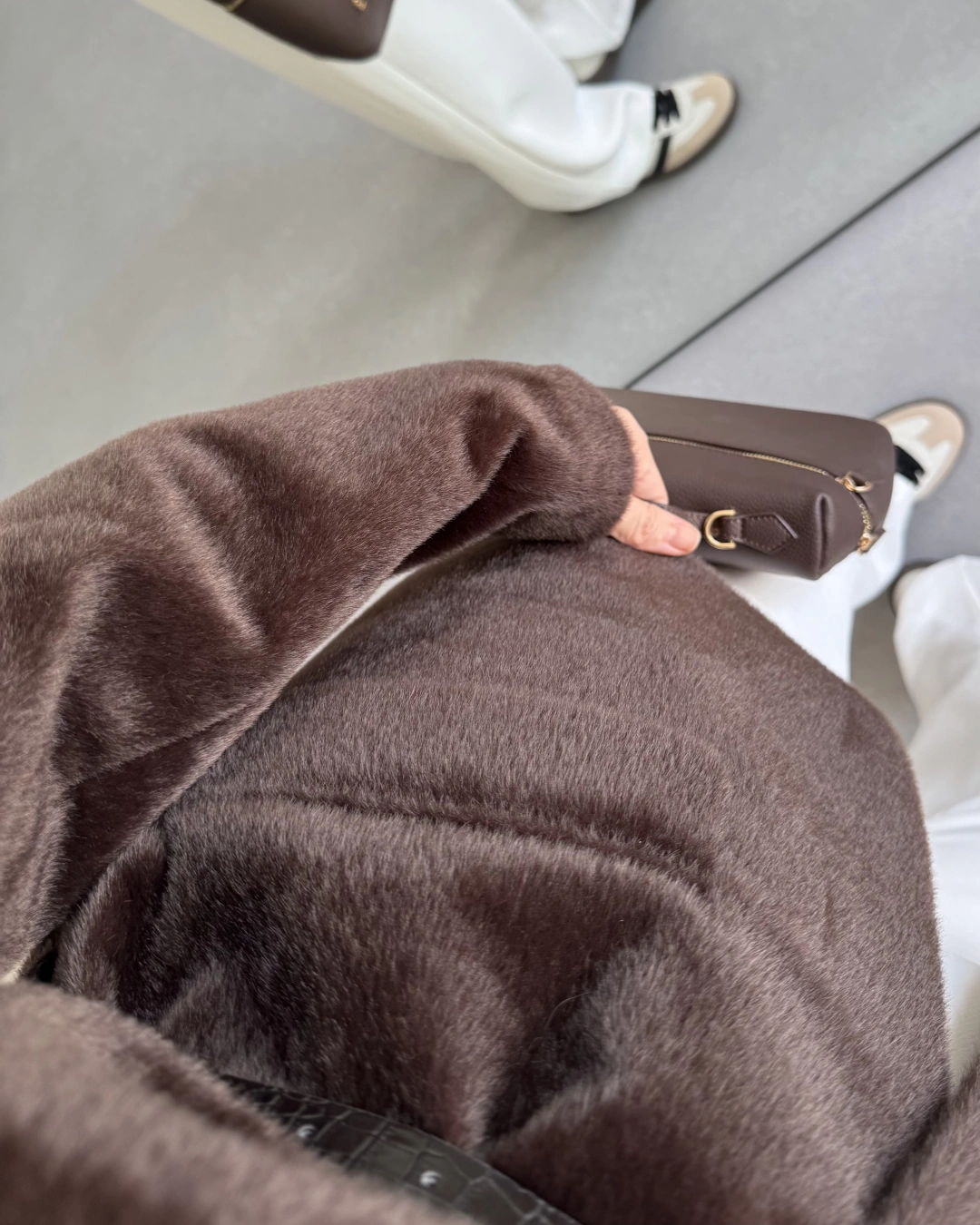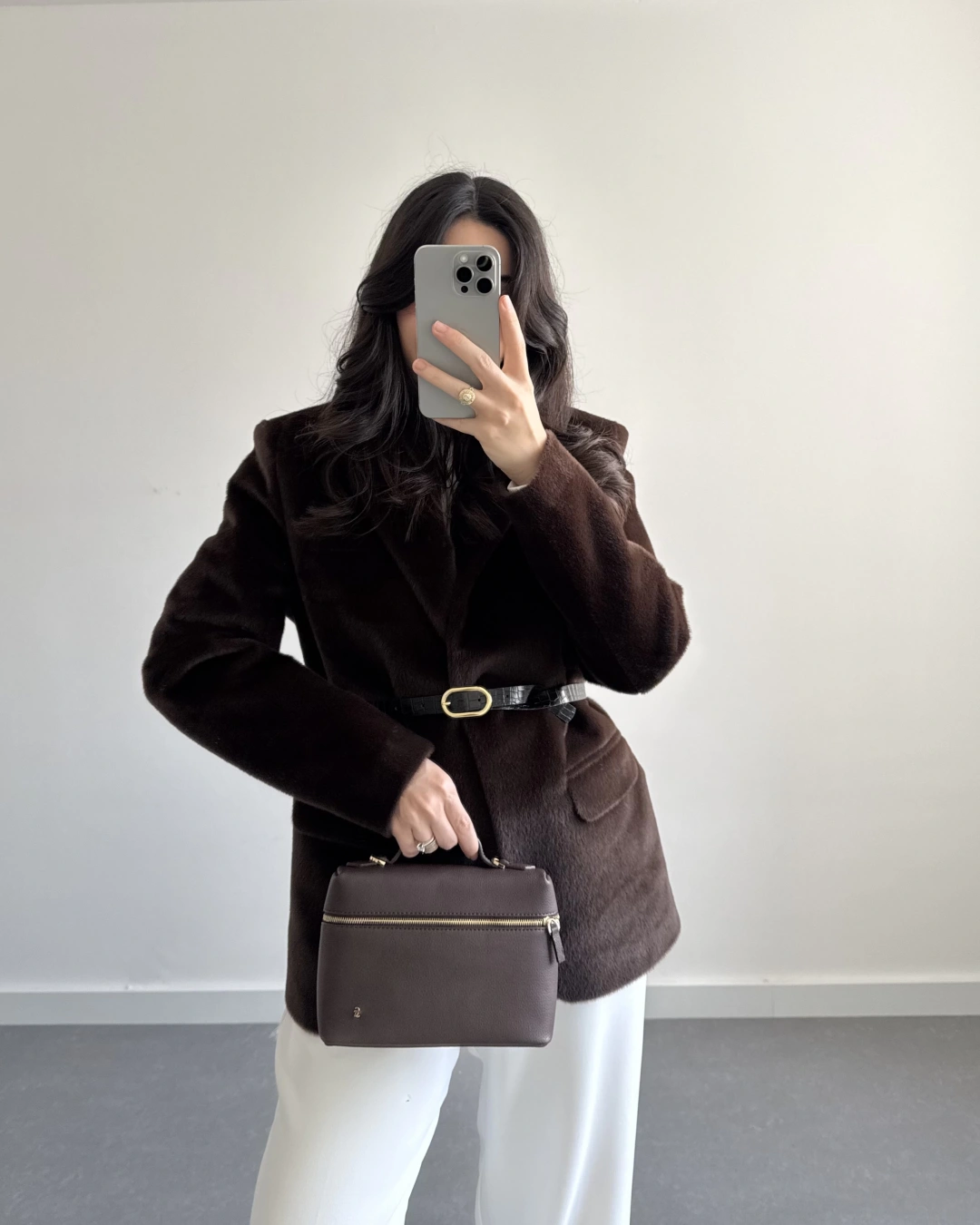Acı Kahve Astarlı Kemerli Peluş Tüylü Ceket