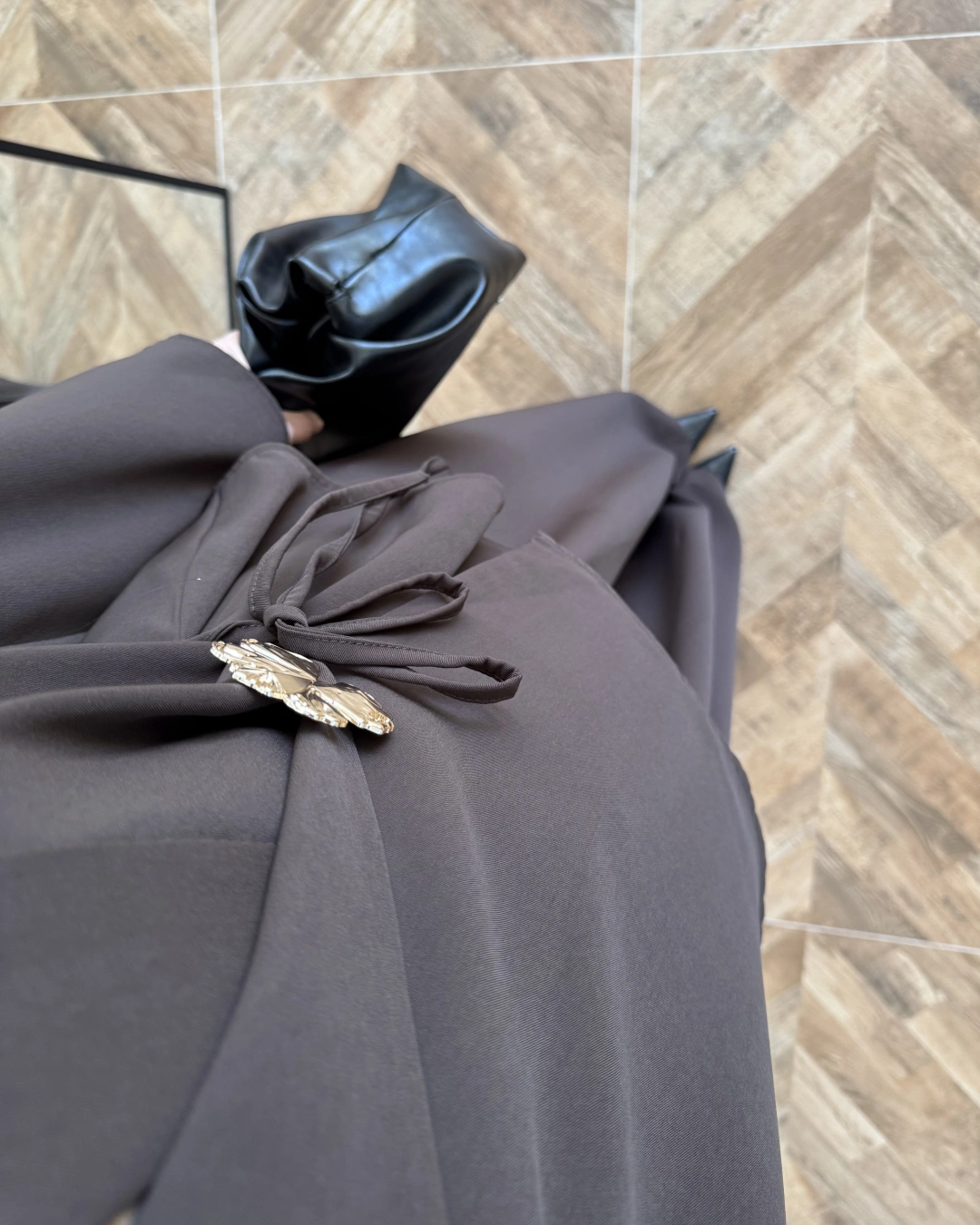 KAHVE PARÇALI ŞİFON ETEK -3369