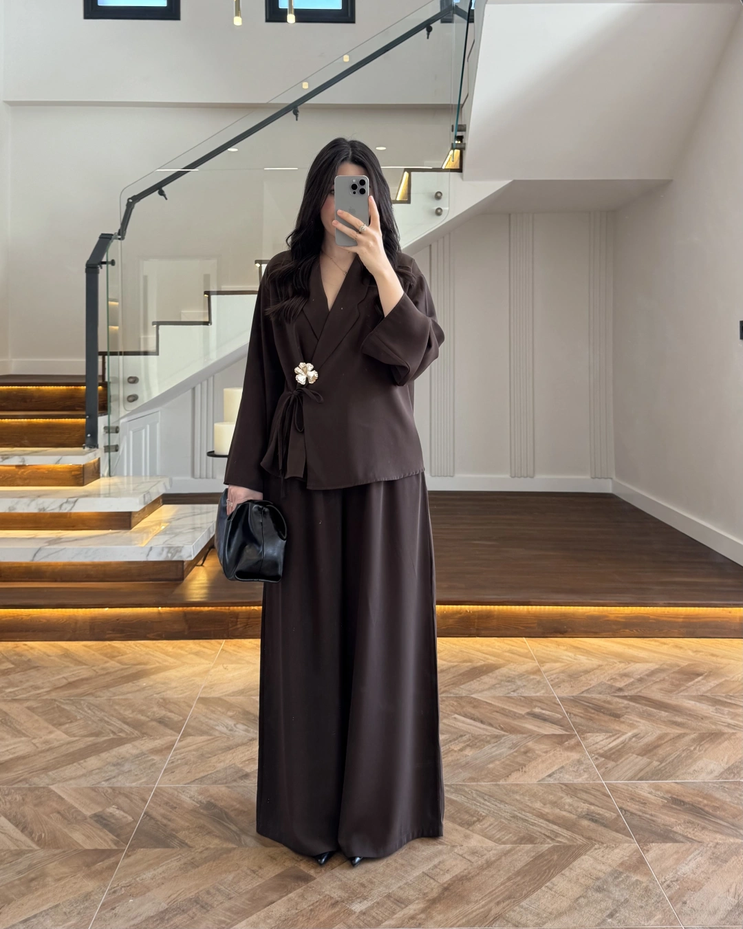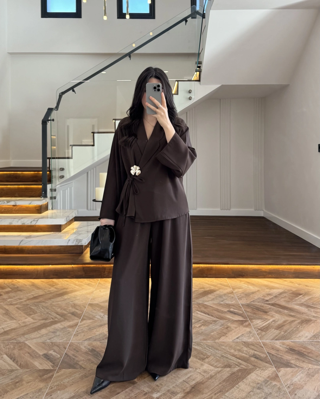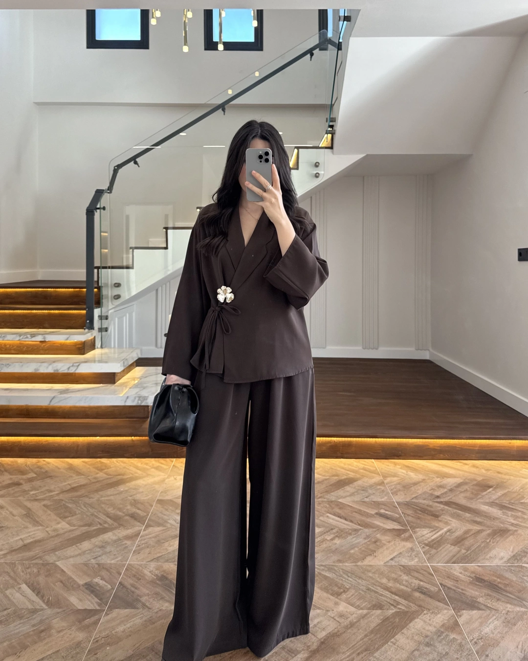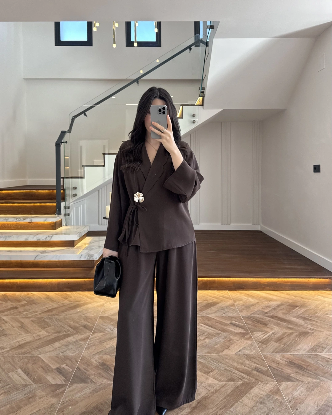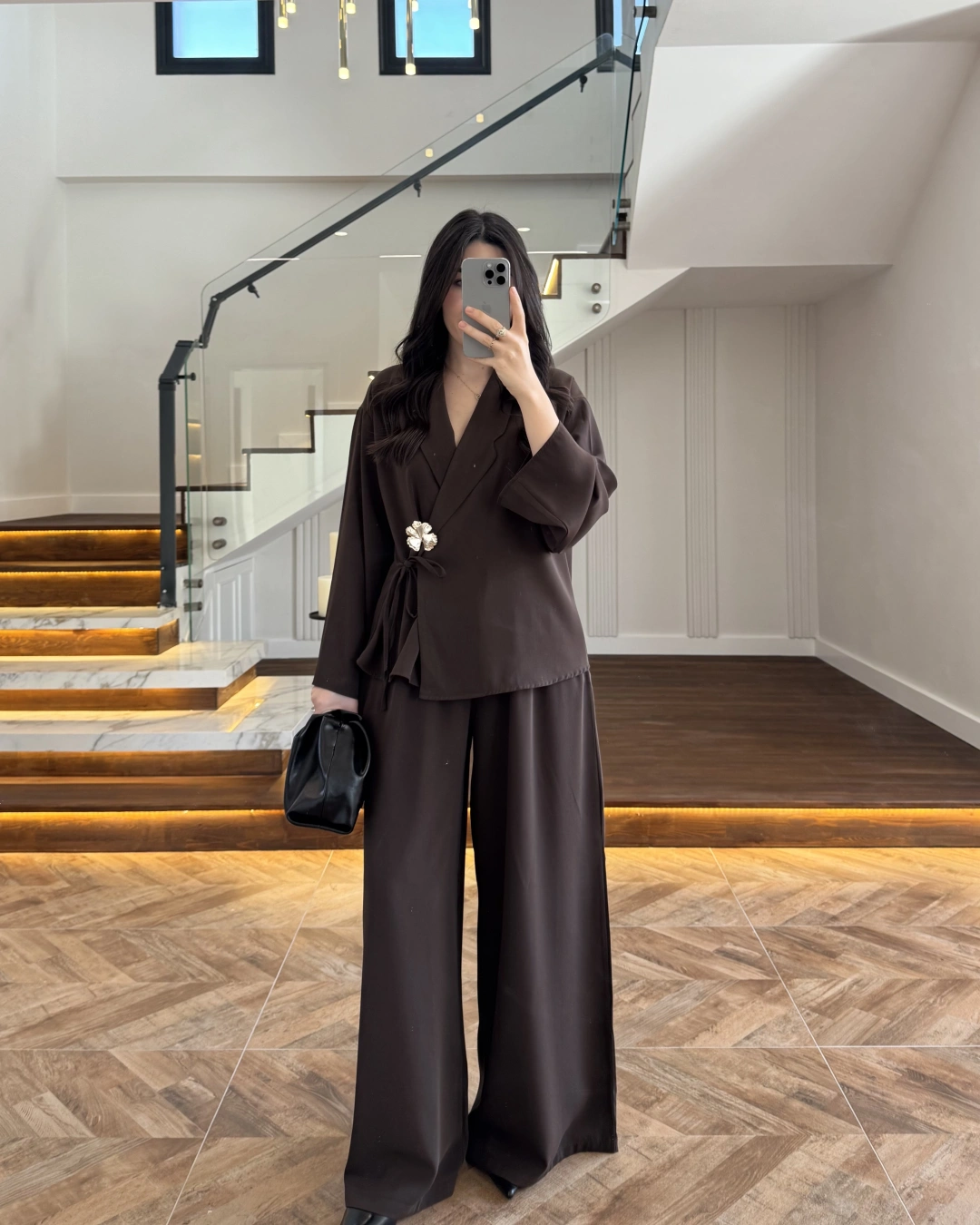 (ÖN SİPARİŞ ) KAHVE KÖPRÜ DETAYLI PALAZZO PANTOLON-3855
