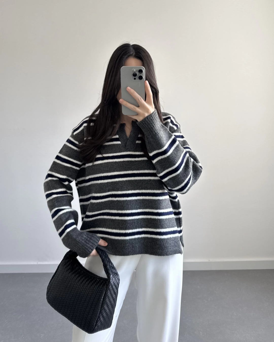 ANTRASİT ÇİZGİLİ PREMİUM KAZAK