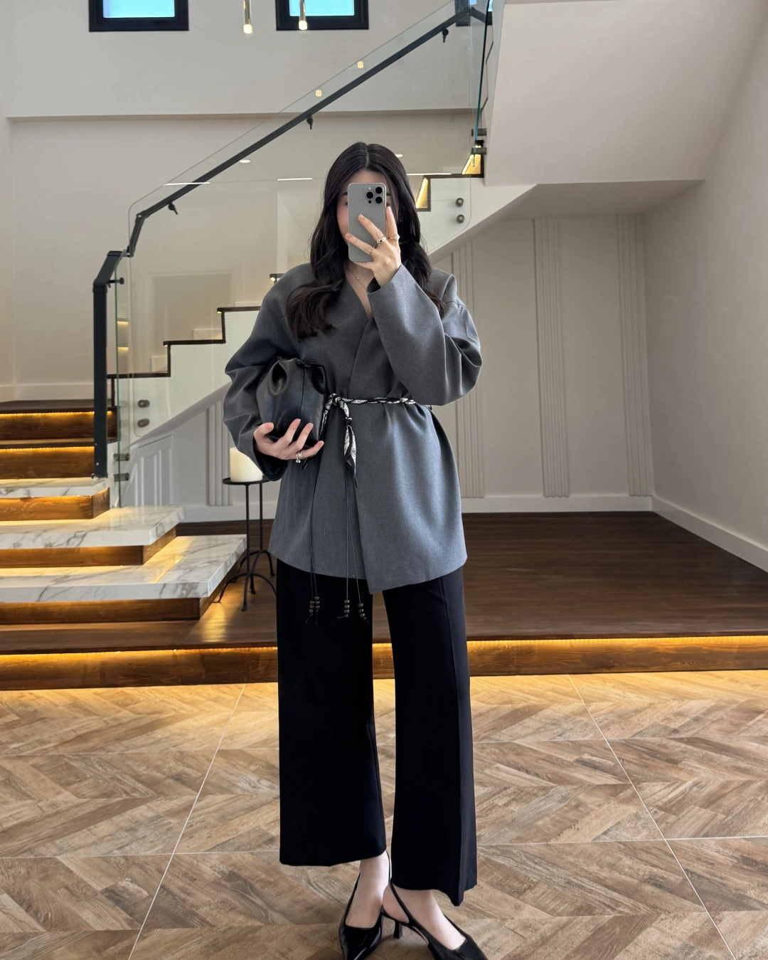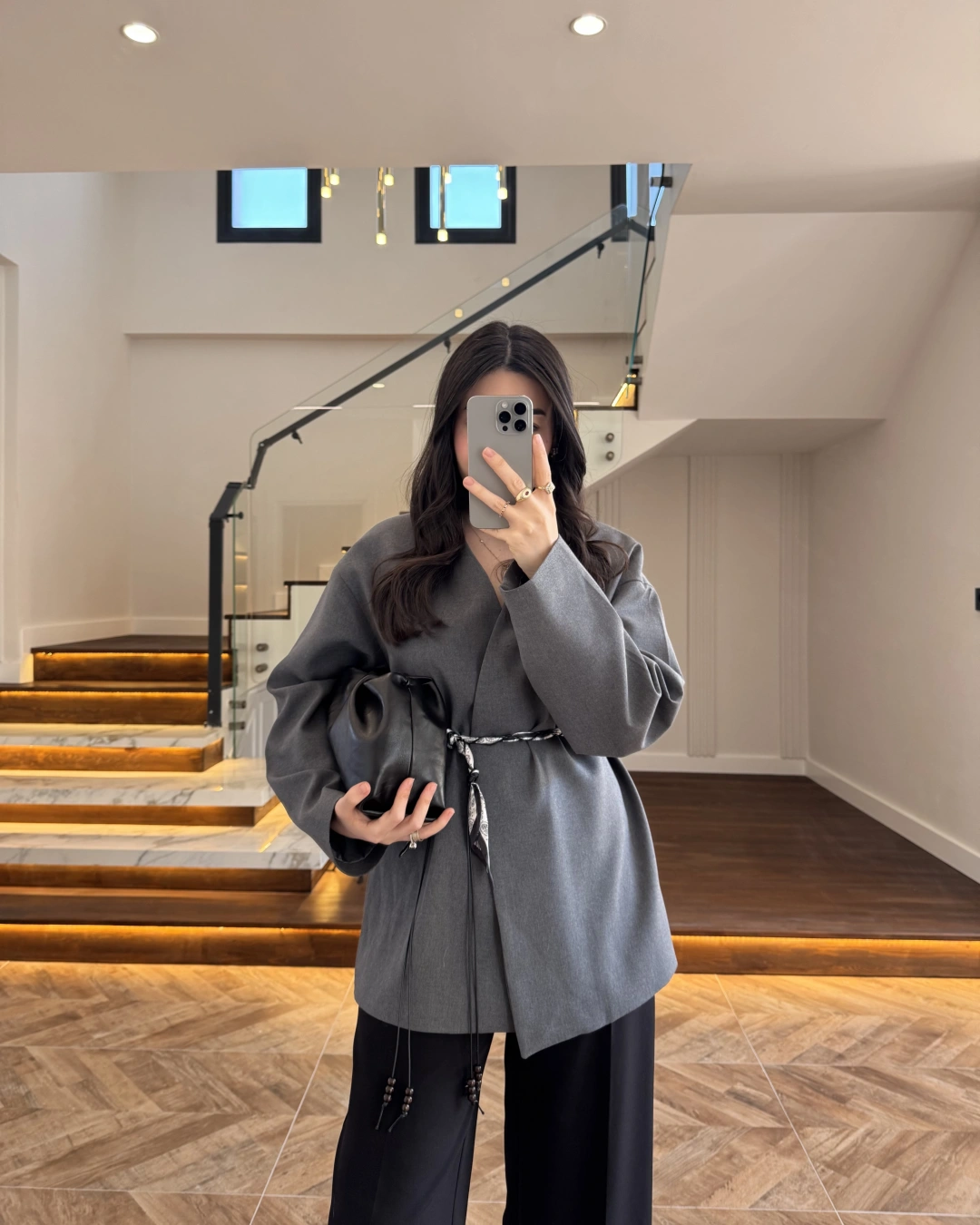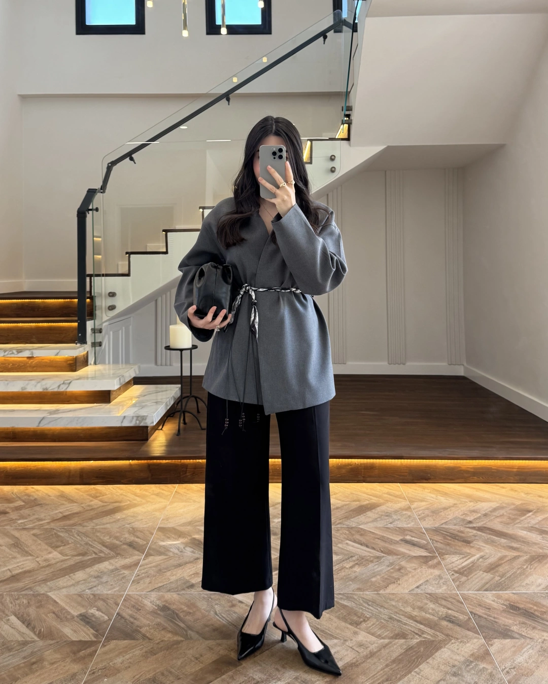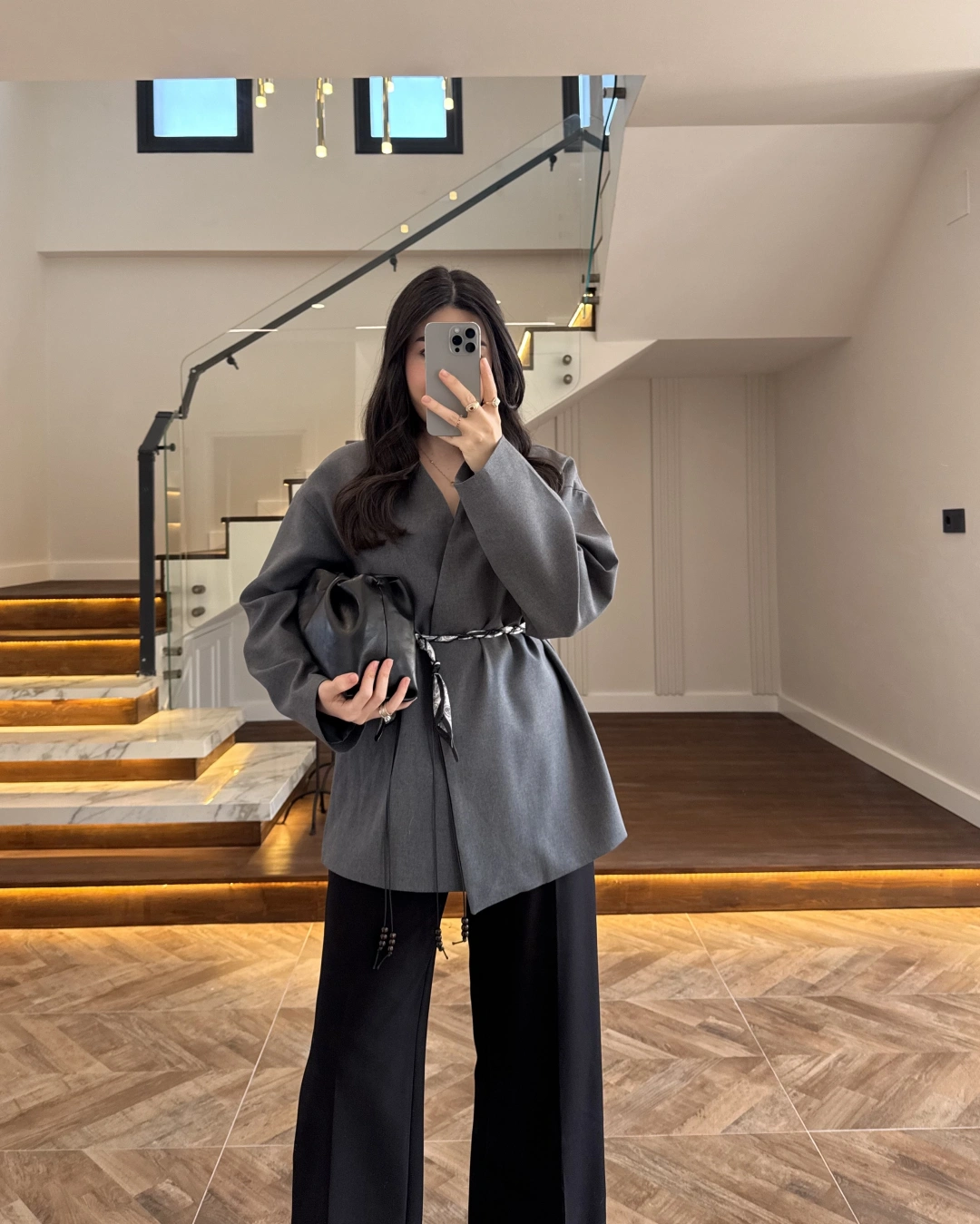 ANTRASİT KEMERLİ CEKET -7673