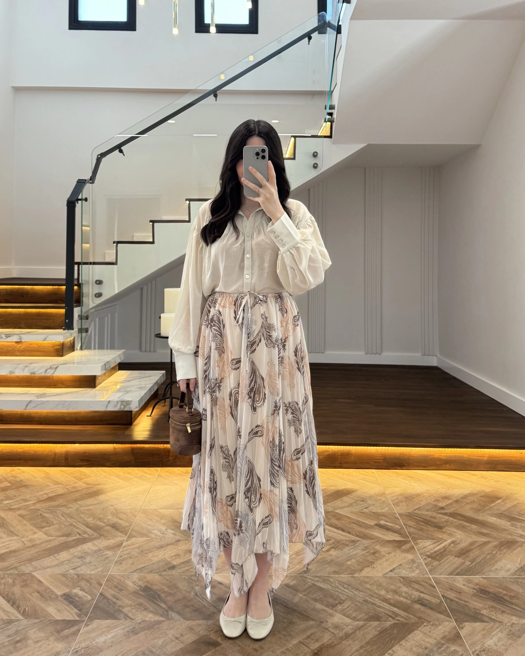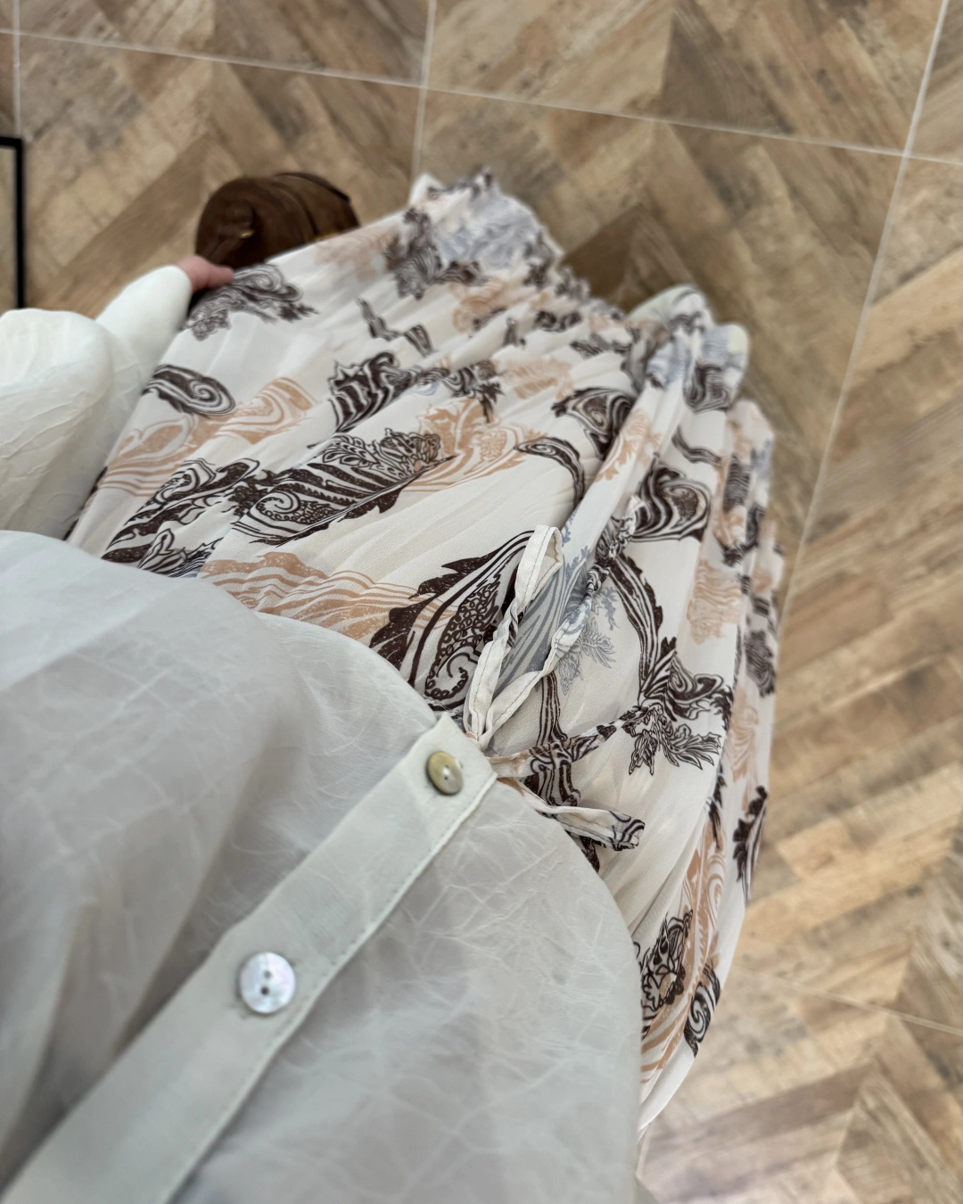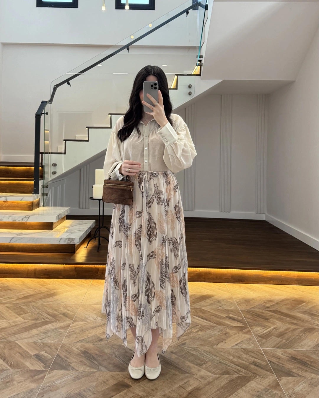 ASİMETRİK KESİM BEJ ŞİFON ETEK-1293