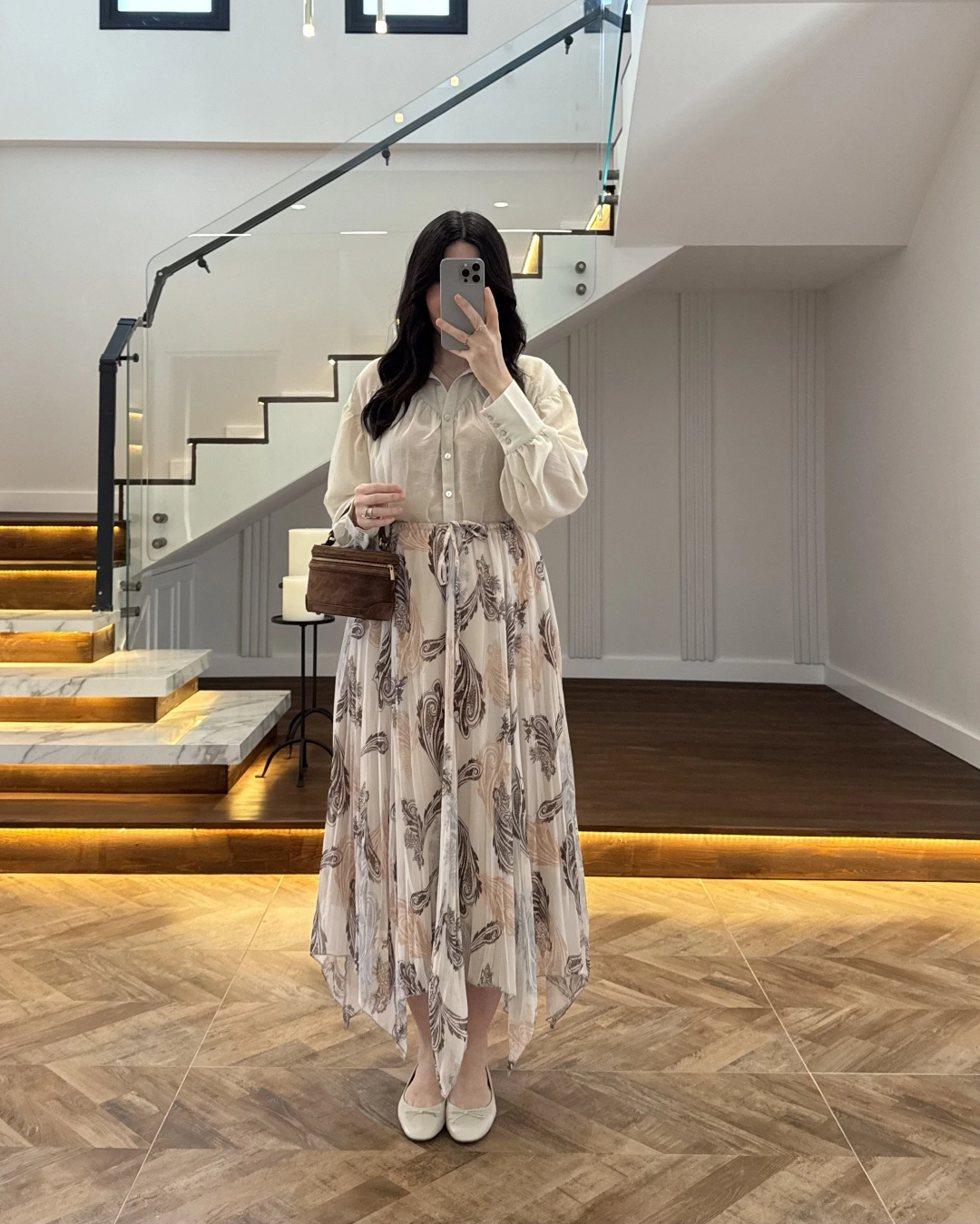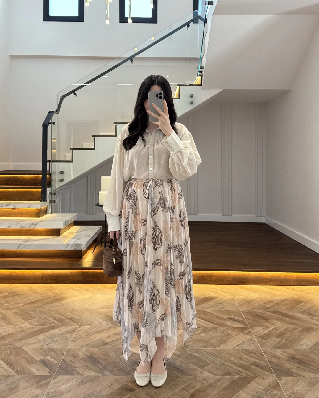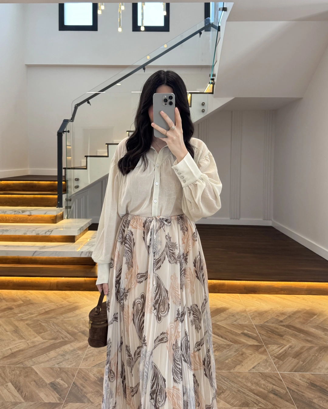 ASİMETRİK KESİM BEJ ŞİFON ETEK-1293