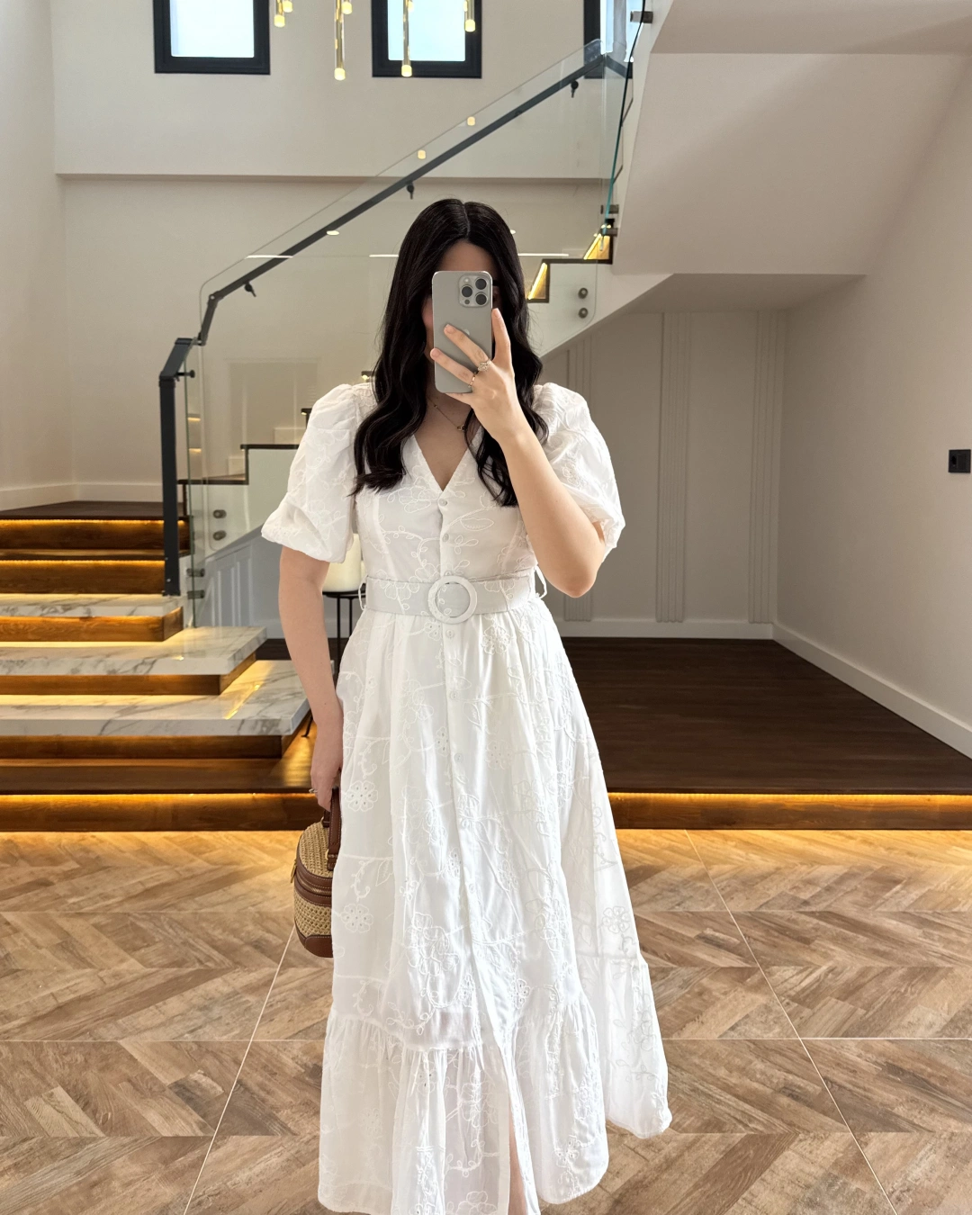 BALON KOL V YAKA ÇİÇEK BASKILI ELBİSE - 3076