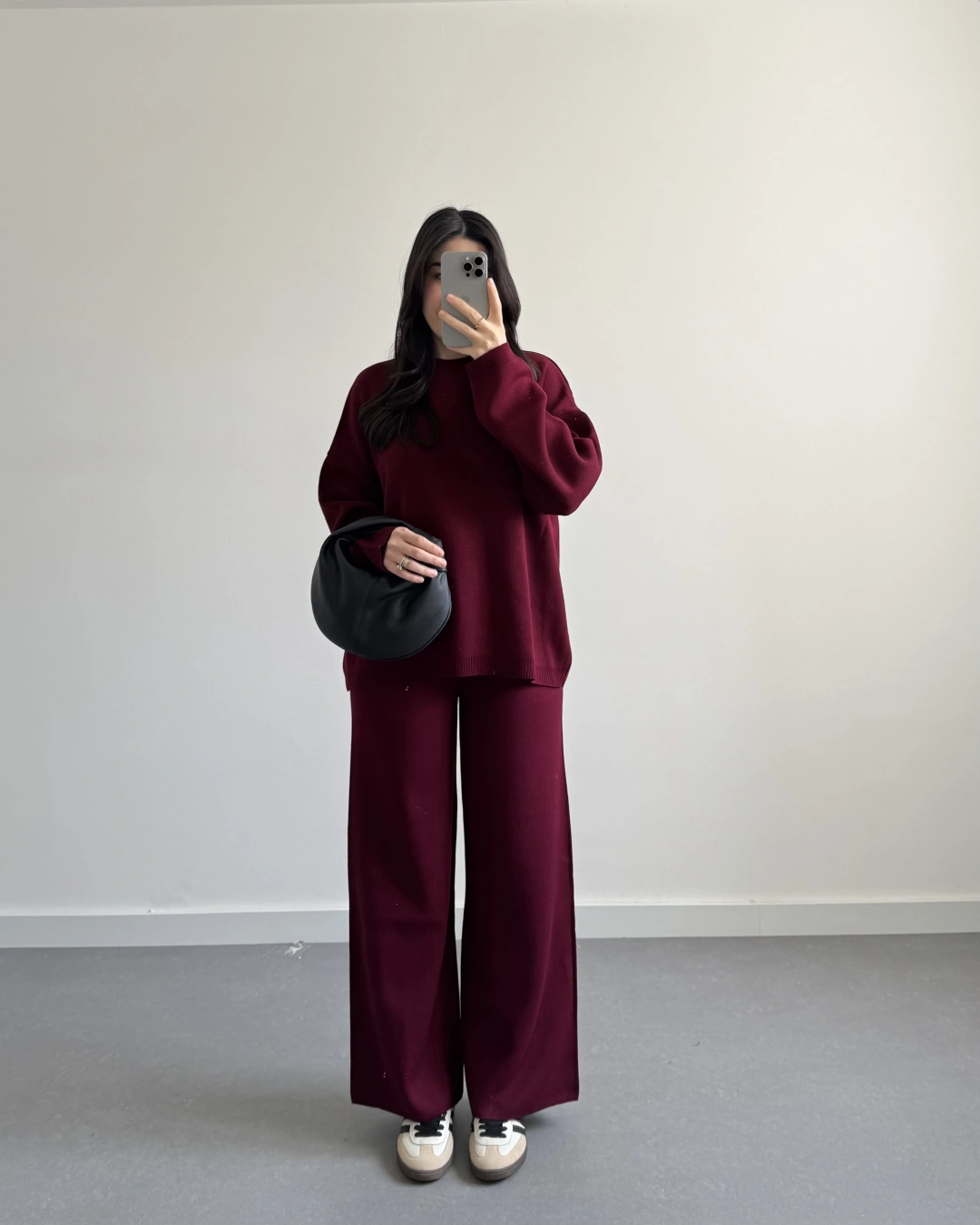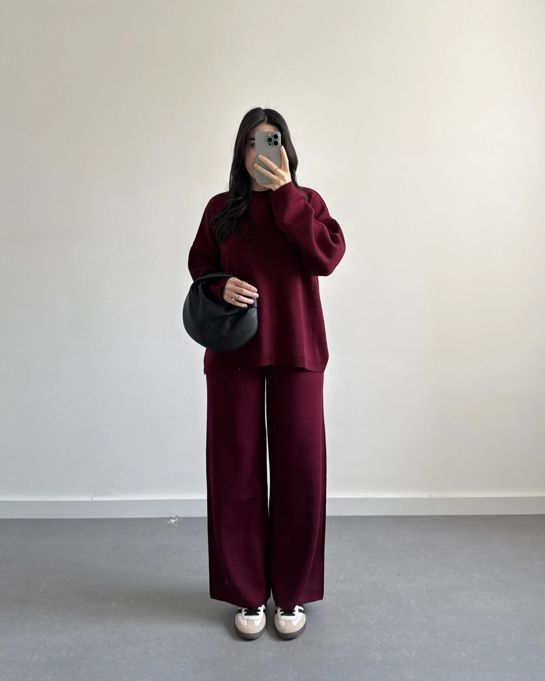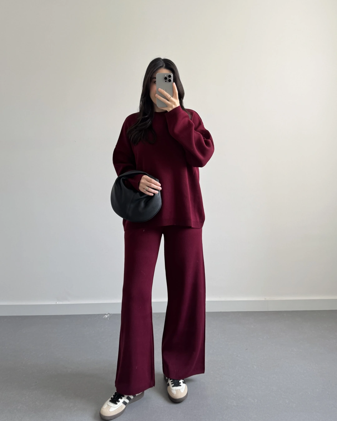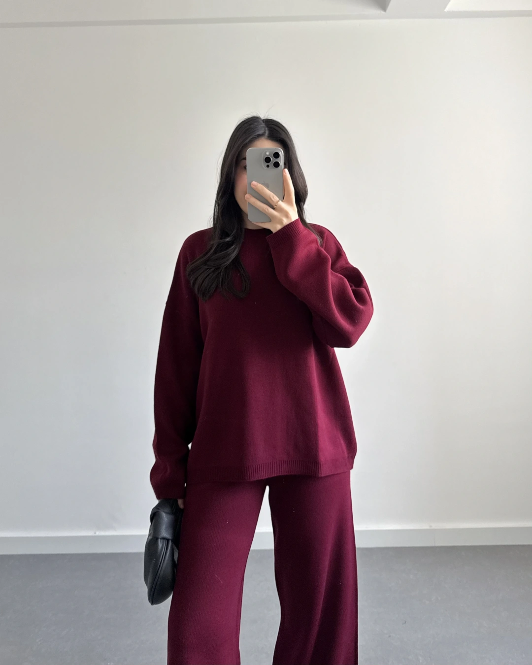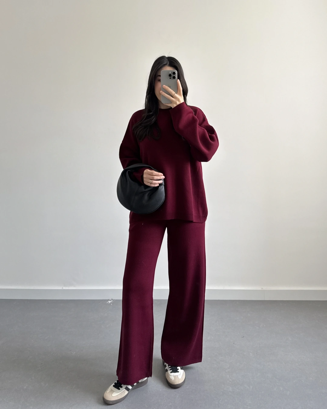 DÜĞME DETAYLI YELEK TAKIM BORDO