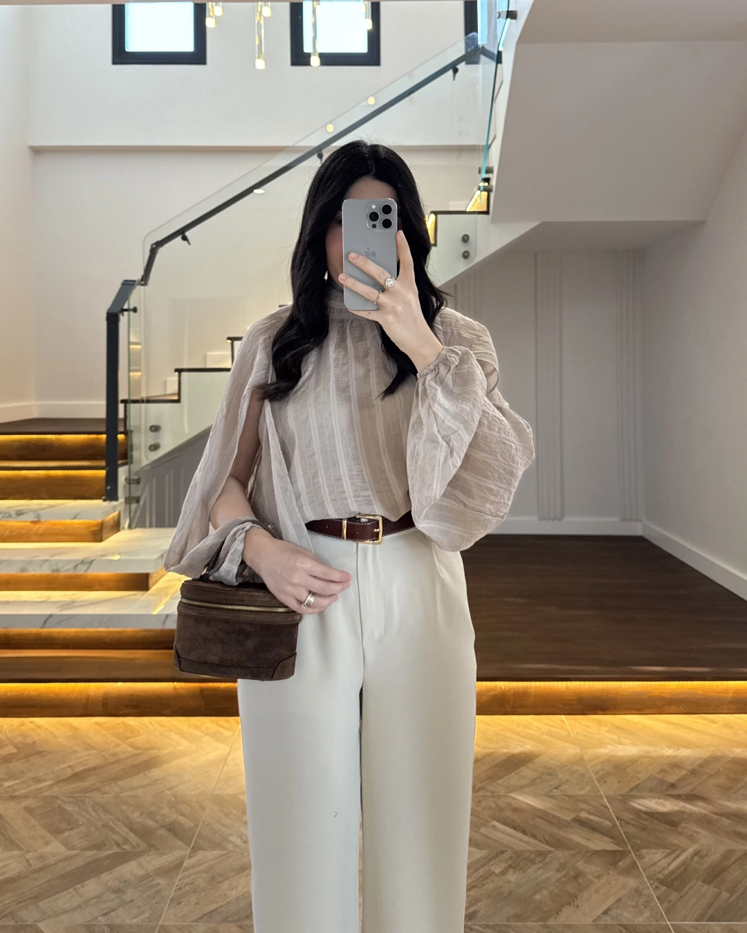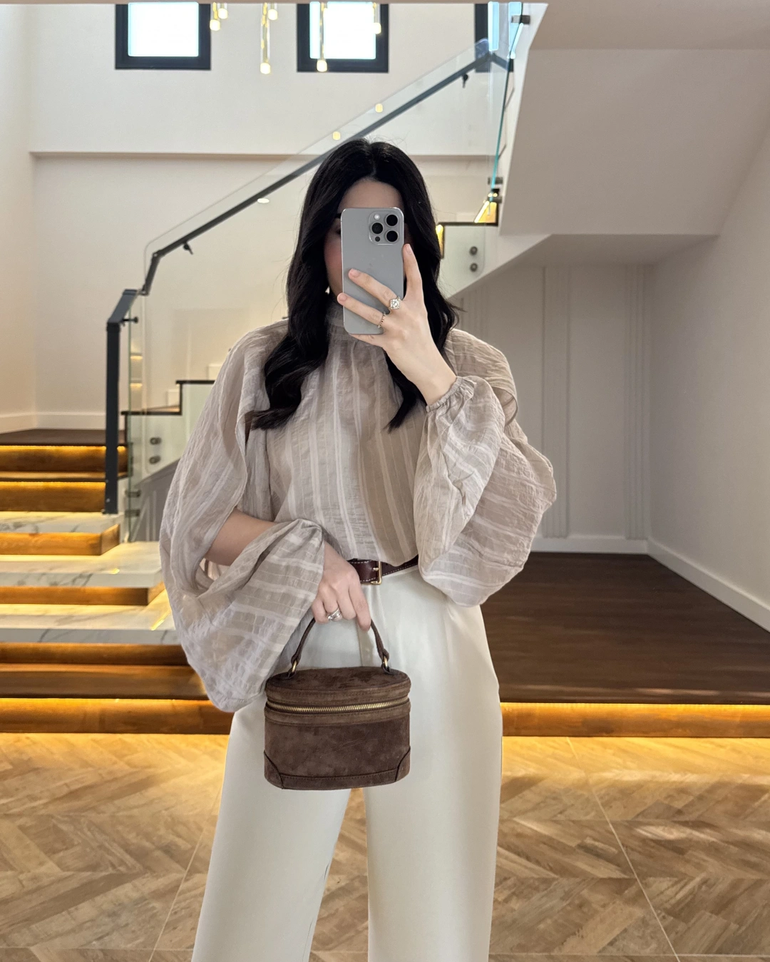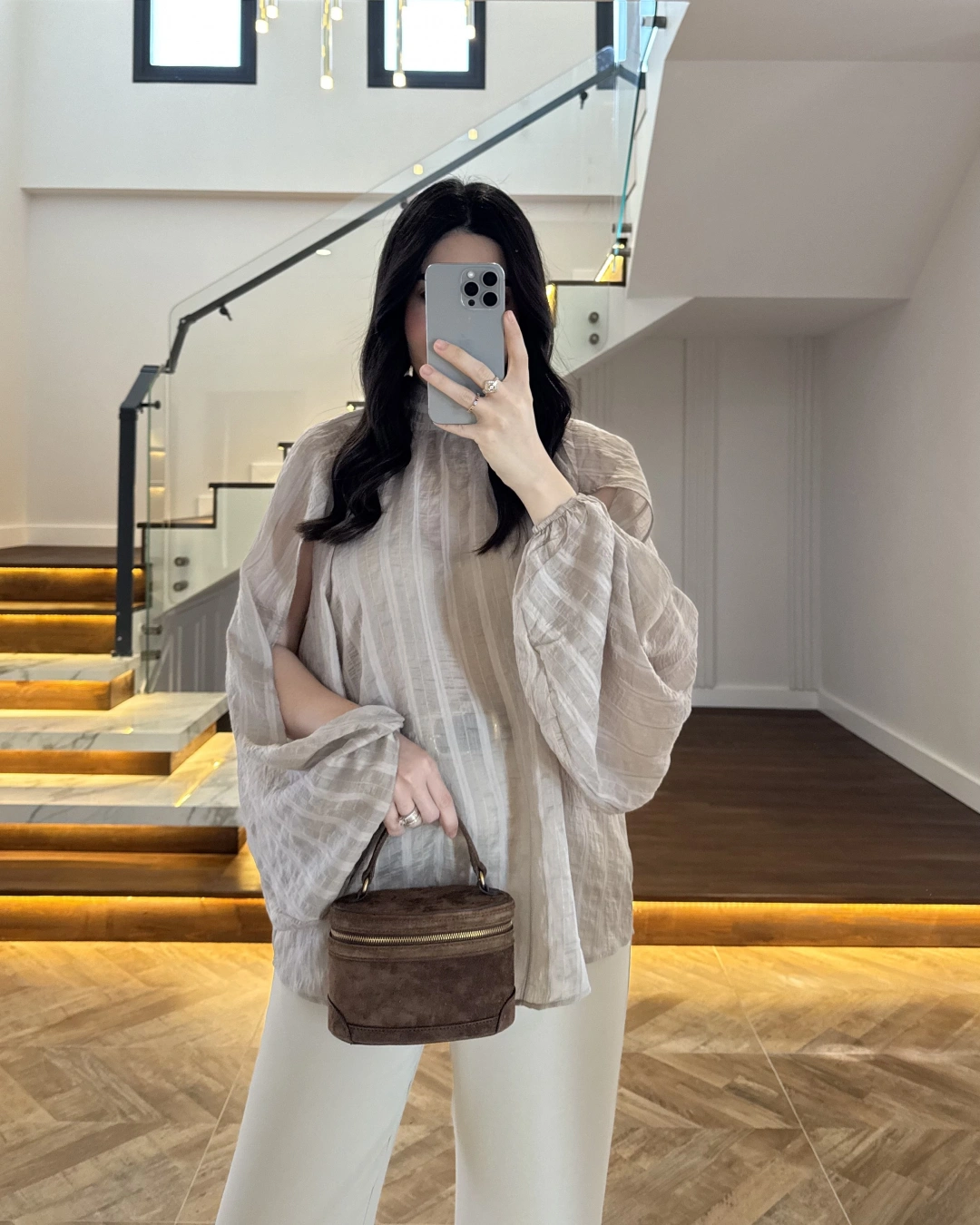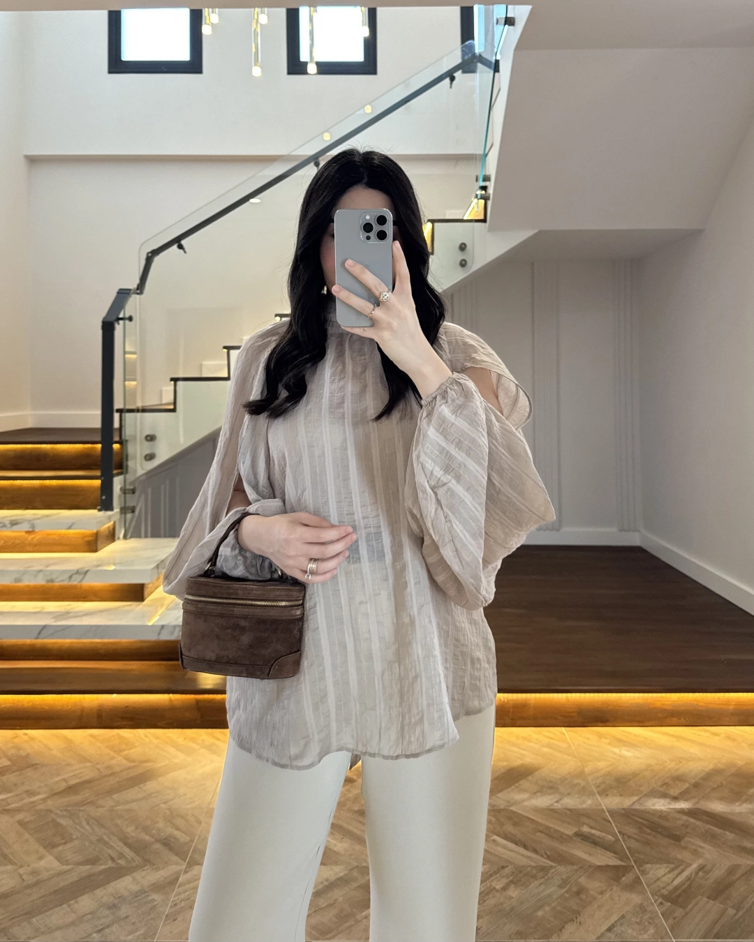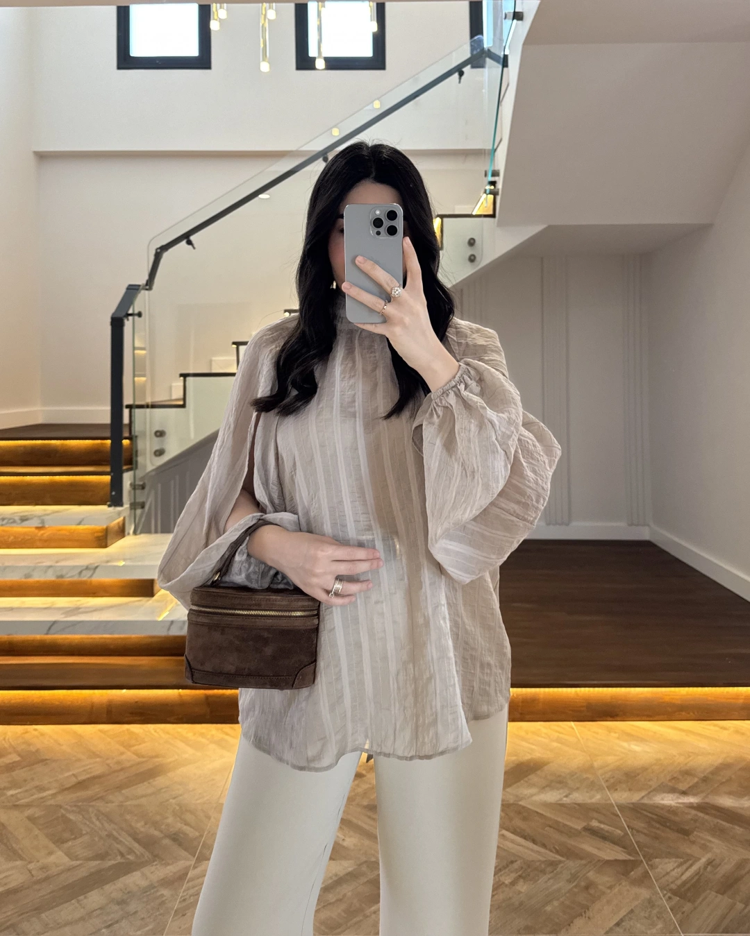 KAHVE KAT KAT PELERİN BLUZ -5044