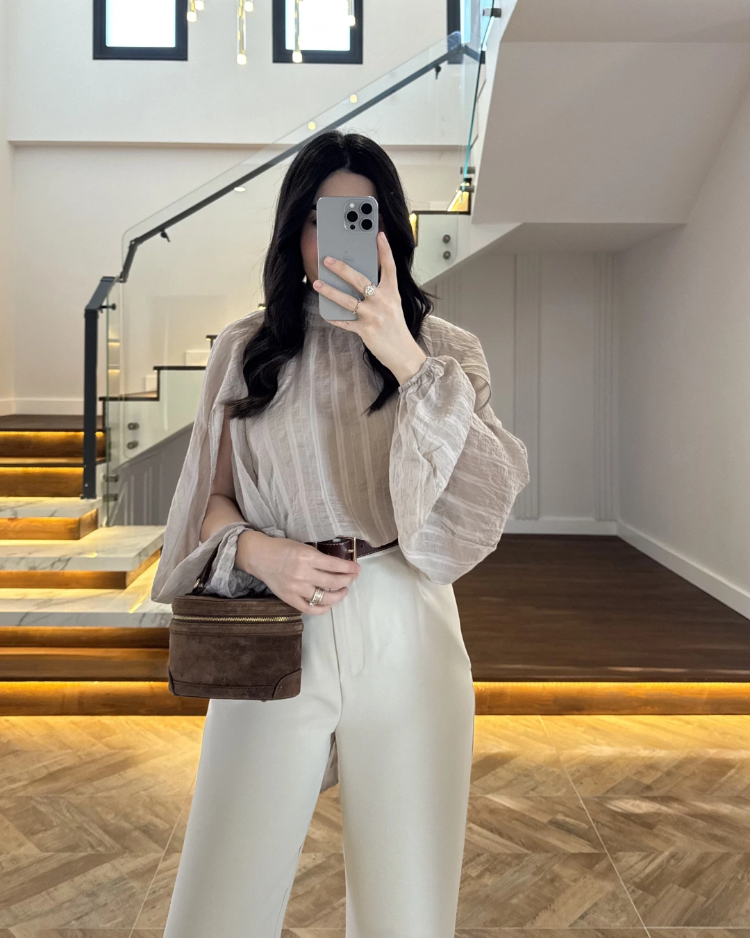 BEYAZ PİLE DETAY V YAK GÖMLEK-2222