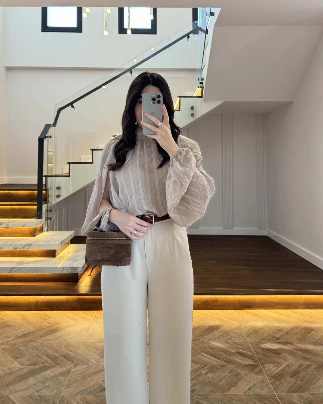 LASTİKLİ ŞALVAR PANTOLON VİZON-3905