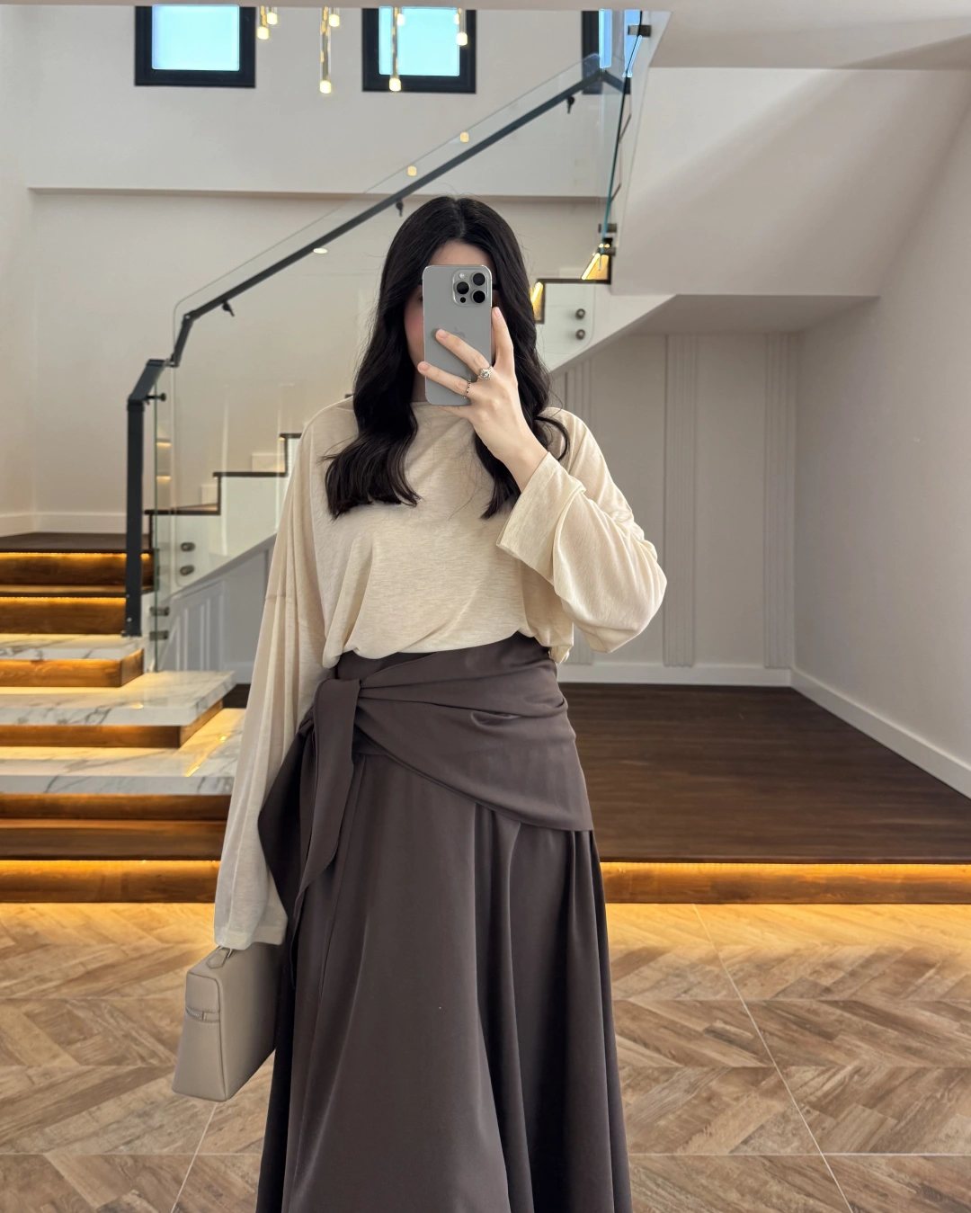 KAHVE KAT KAT PELERİN BLUZ -5044