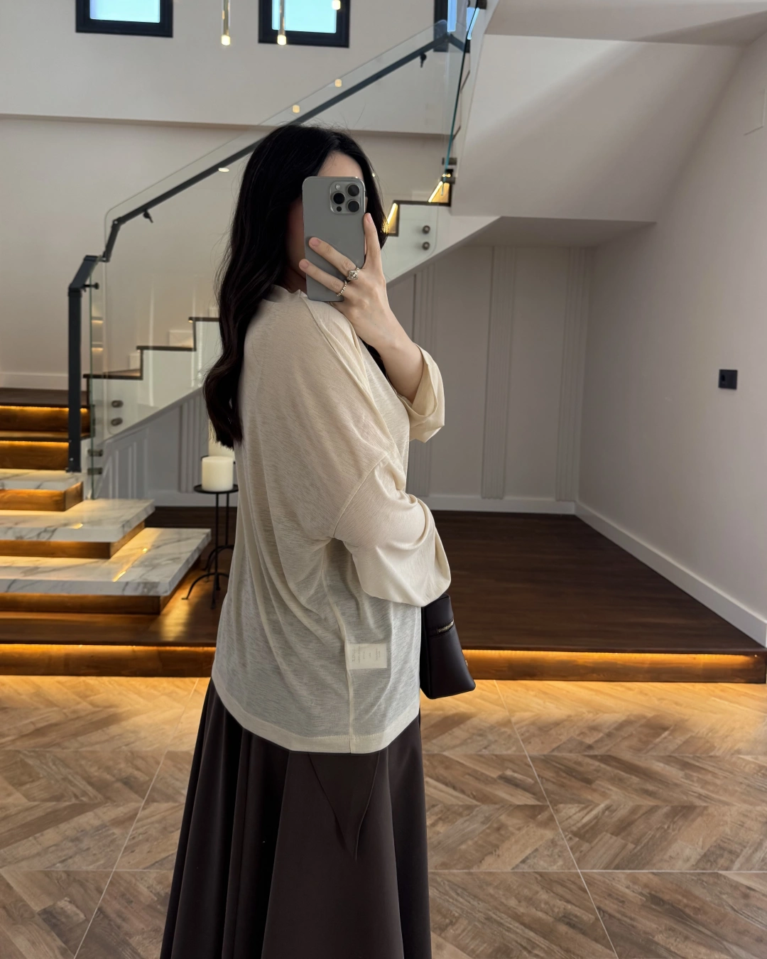 KAHVE PİLE DETAY V YAK GÖMLEK-2222