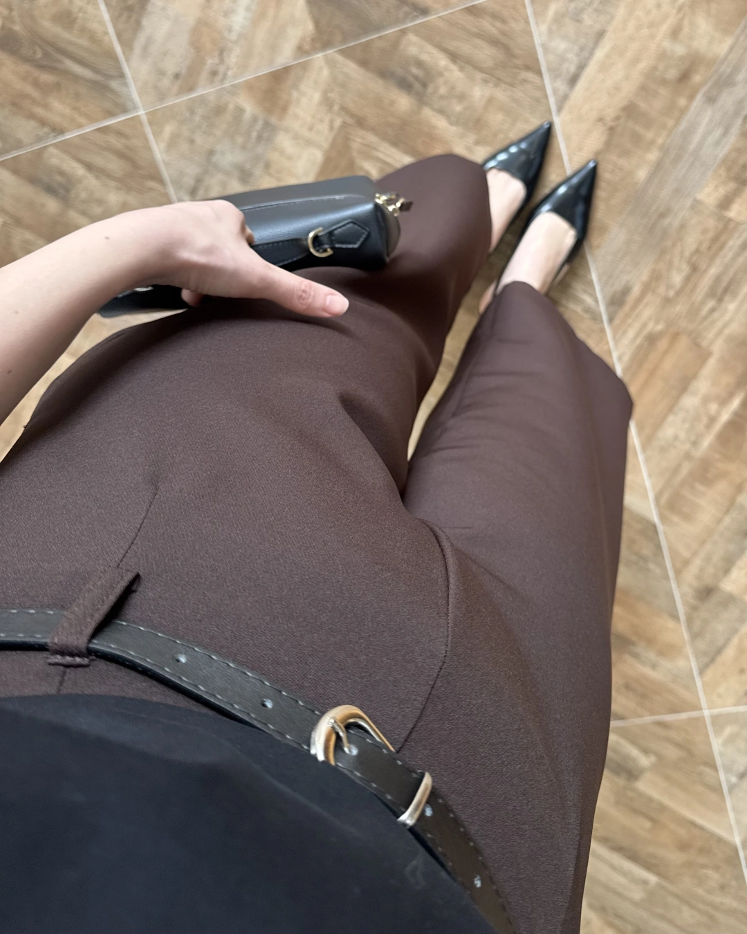 BELİ KEMERLİ CREP KUMAŞ PANTOLON KAHVE