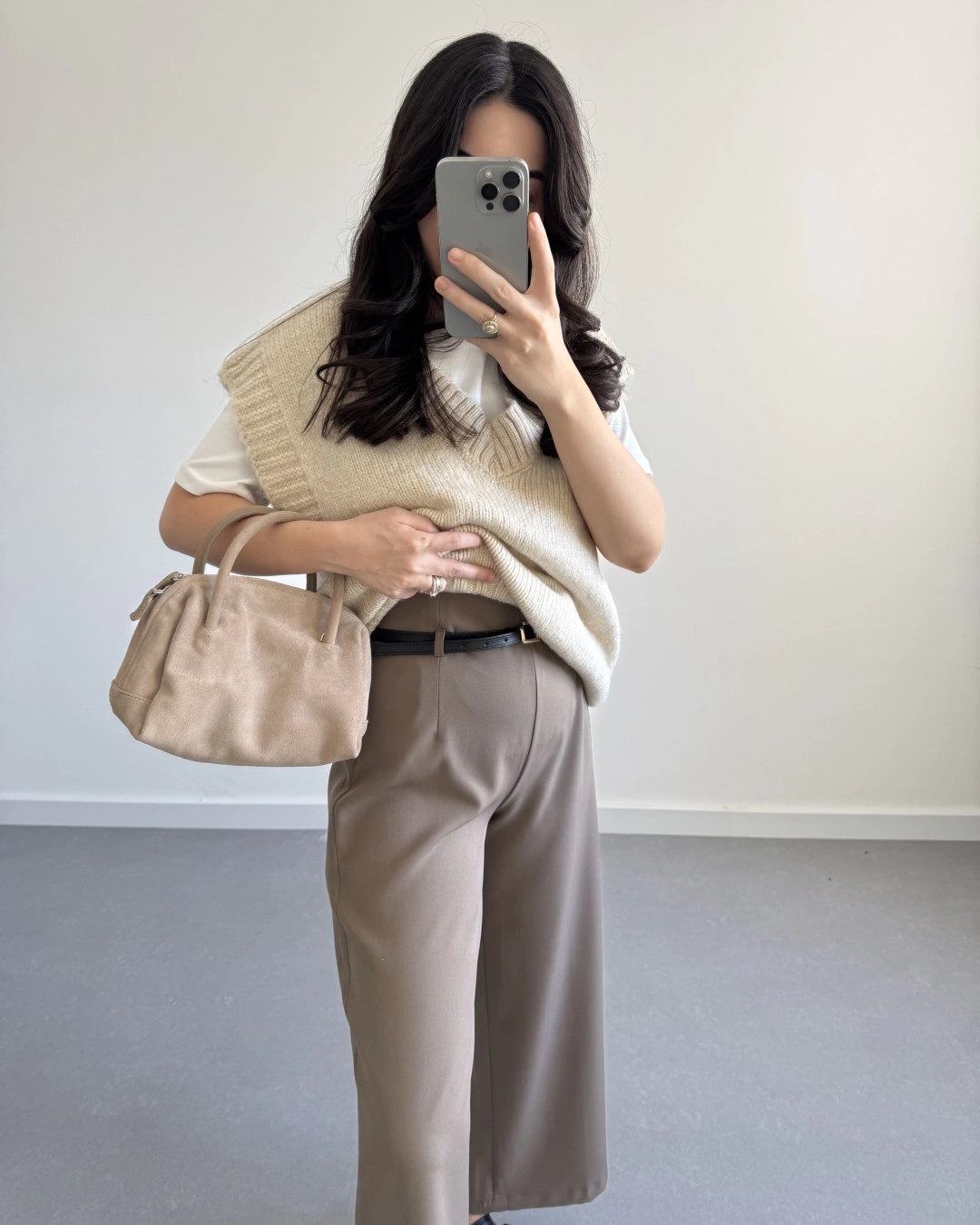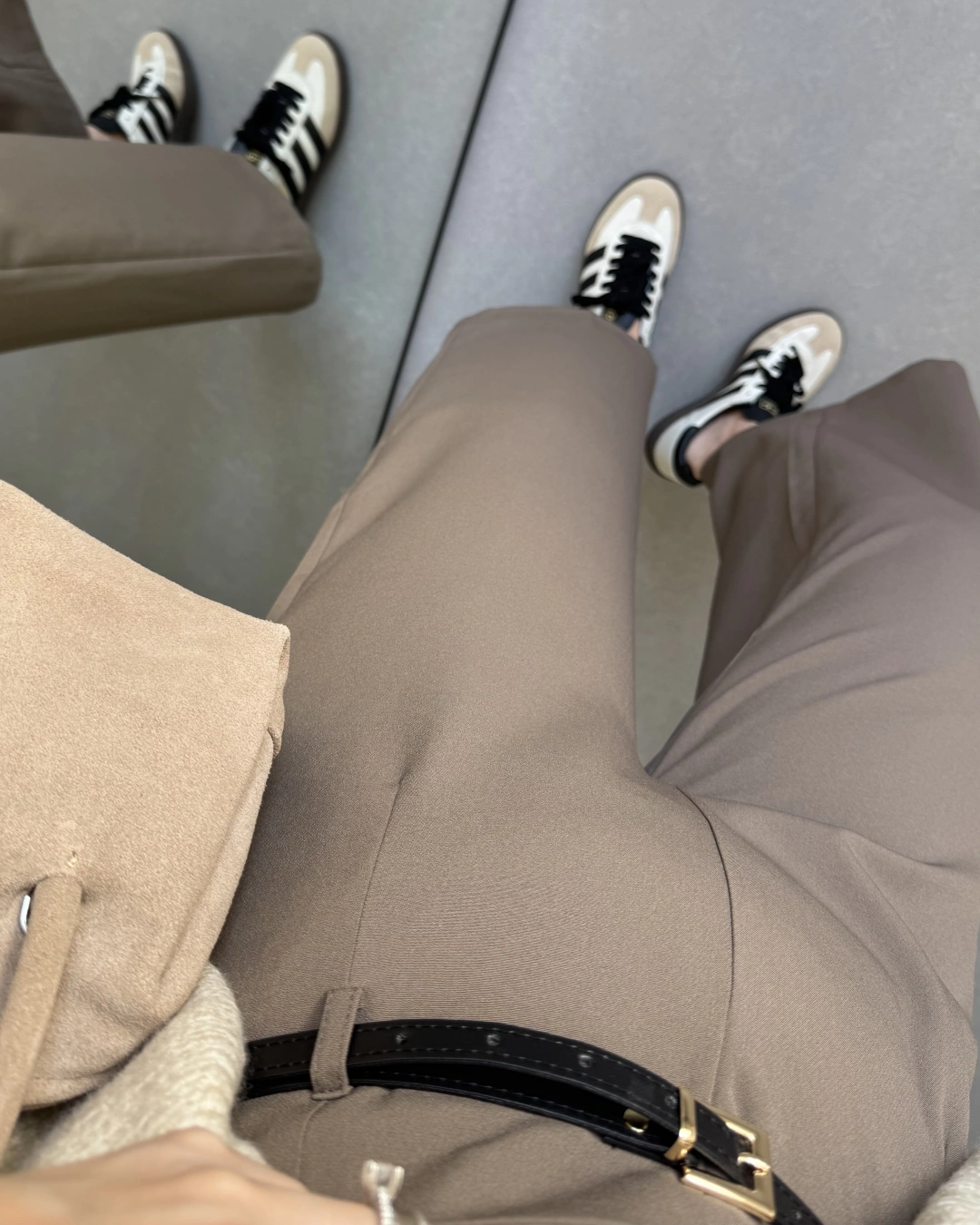 BELİ KEMERLİ CREP KUMAŞ PANTOLON VİZON