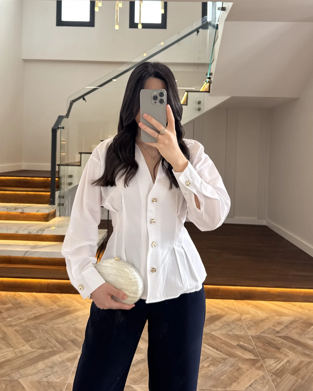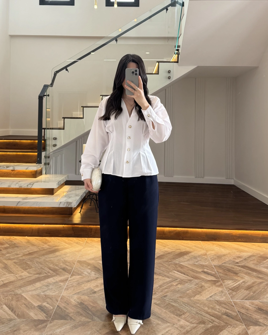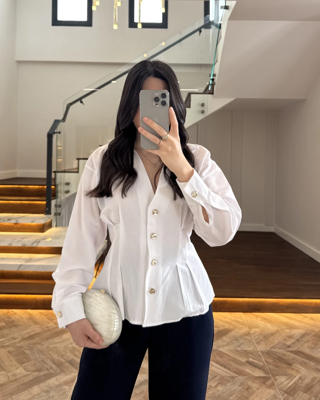 BEYAZ PİLE DETAY V YAK GÖMLEK-2222