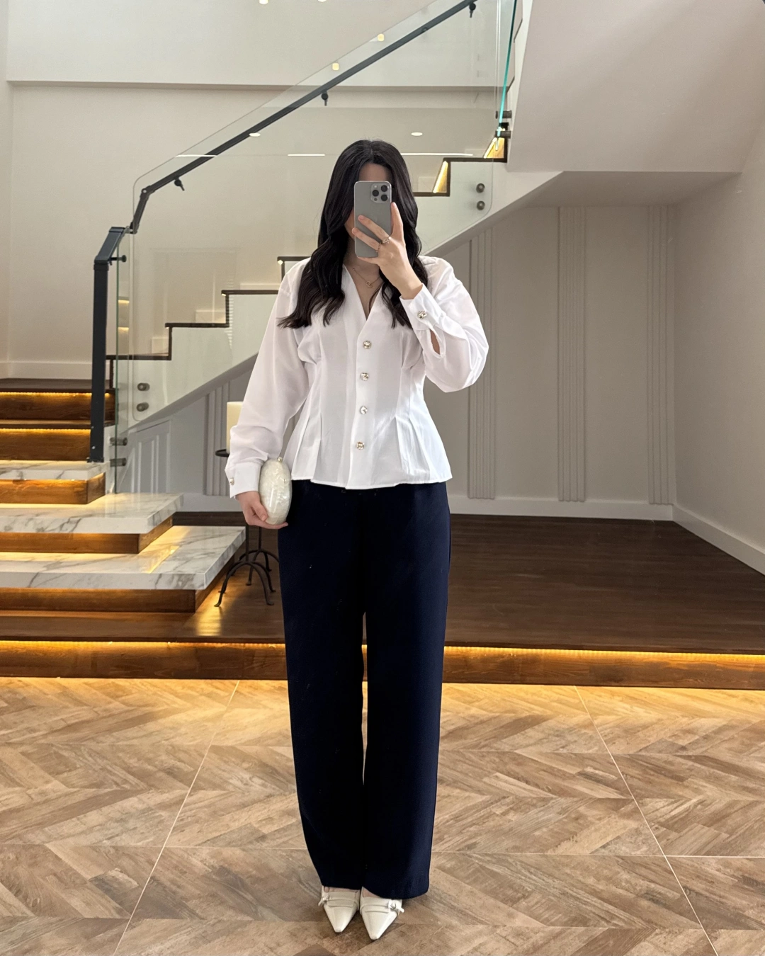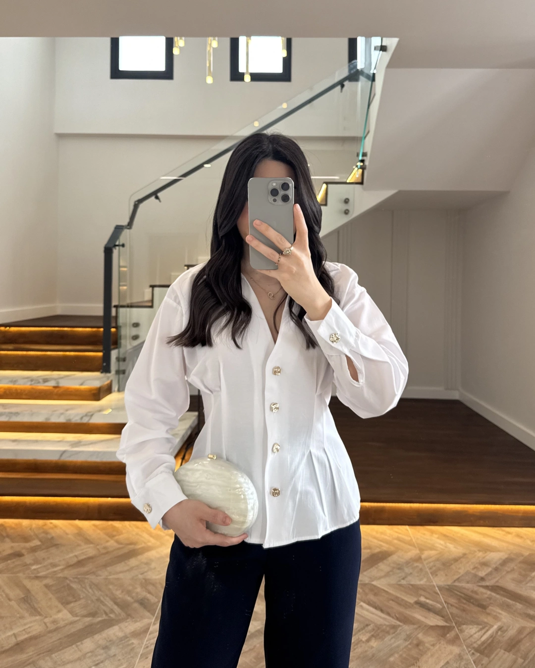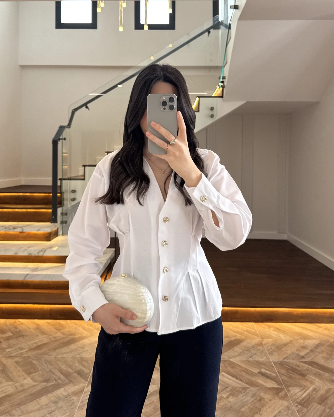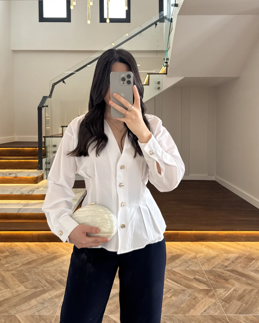 BEYAZ PİLE DETAY V YAK GÖMLEK-2222