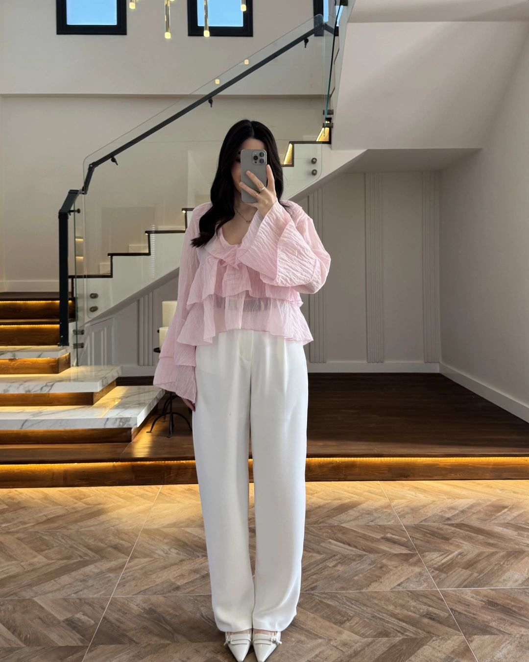 PEMBE UÇUŞAN PELERİN BLUZ -5026