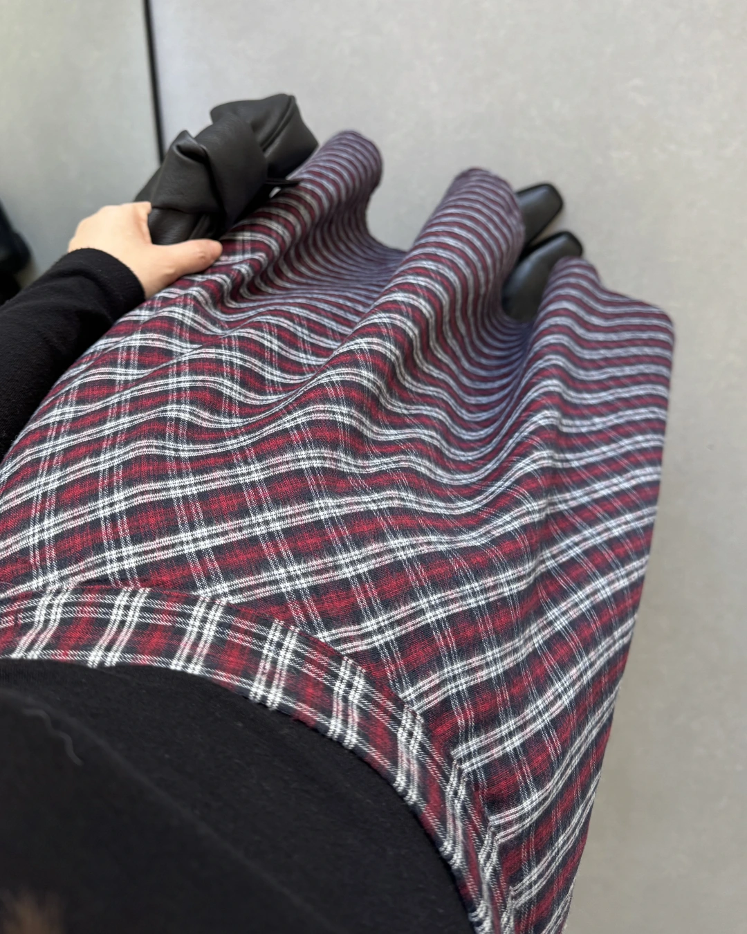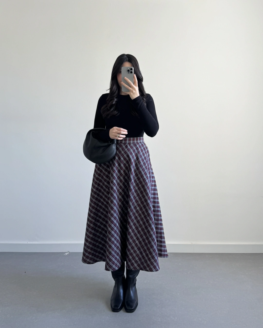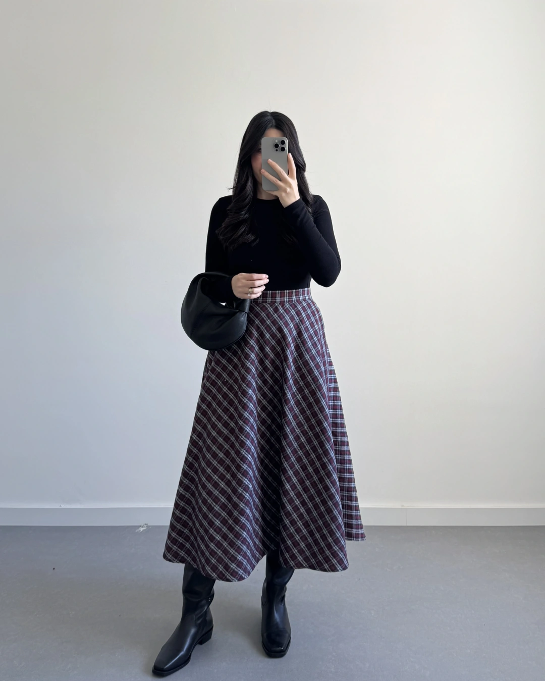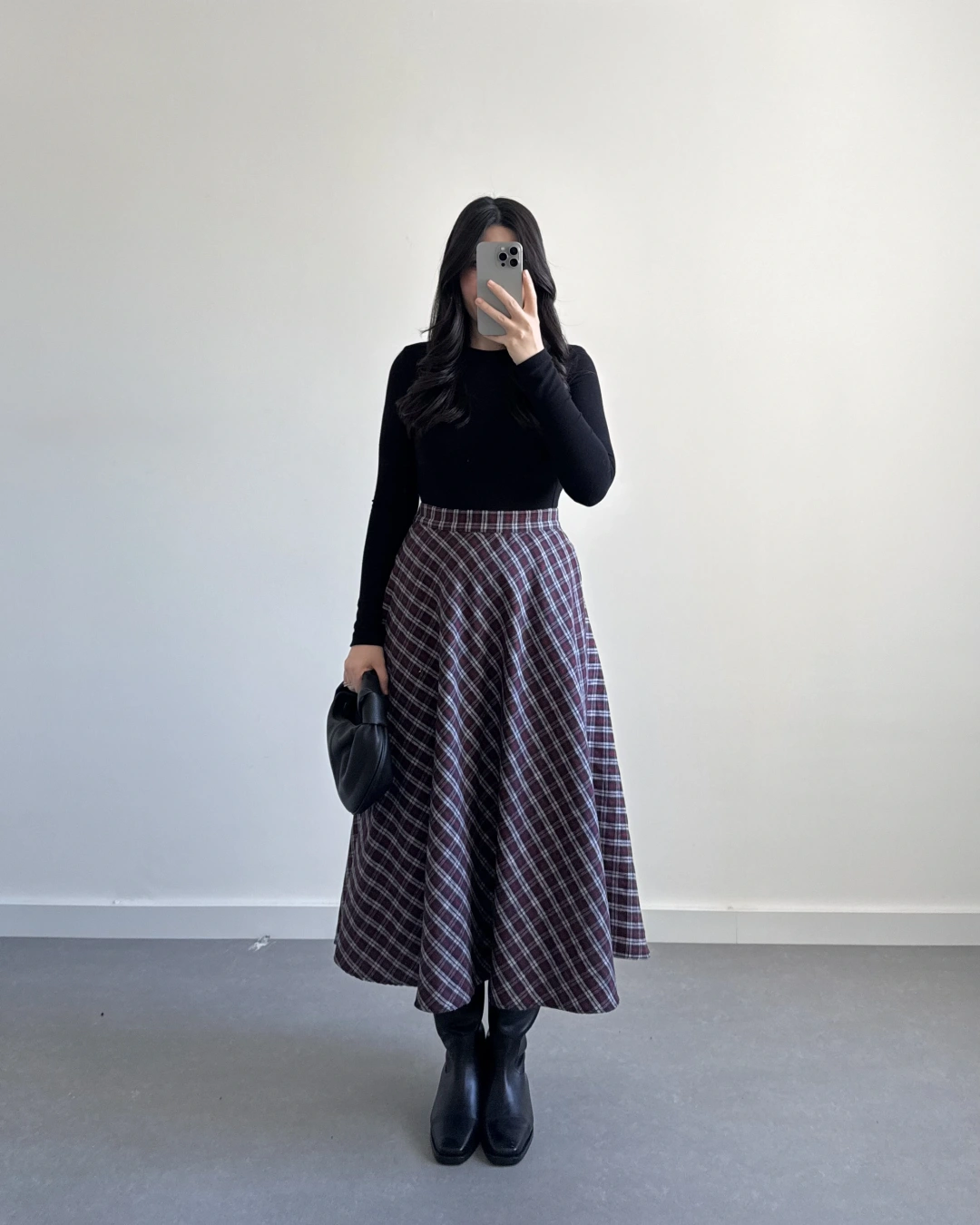 SİYAH ŞİFON EKOSE DESEN KLOŞ ETEK