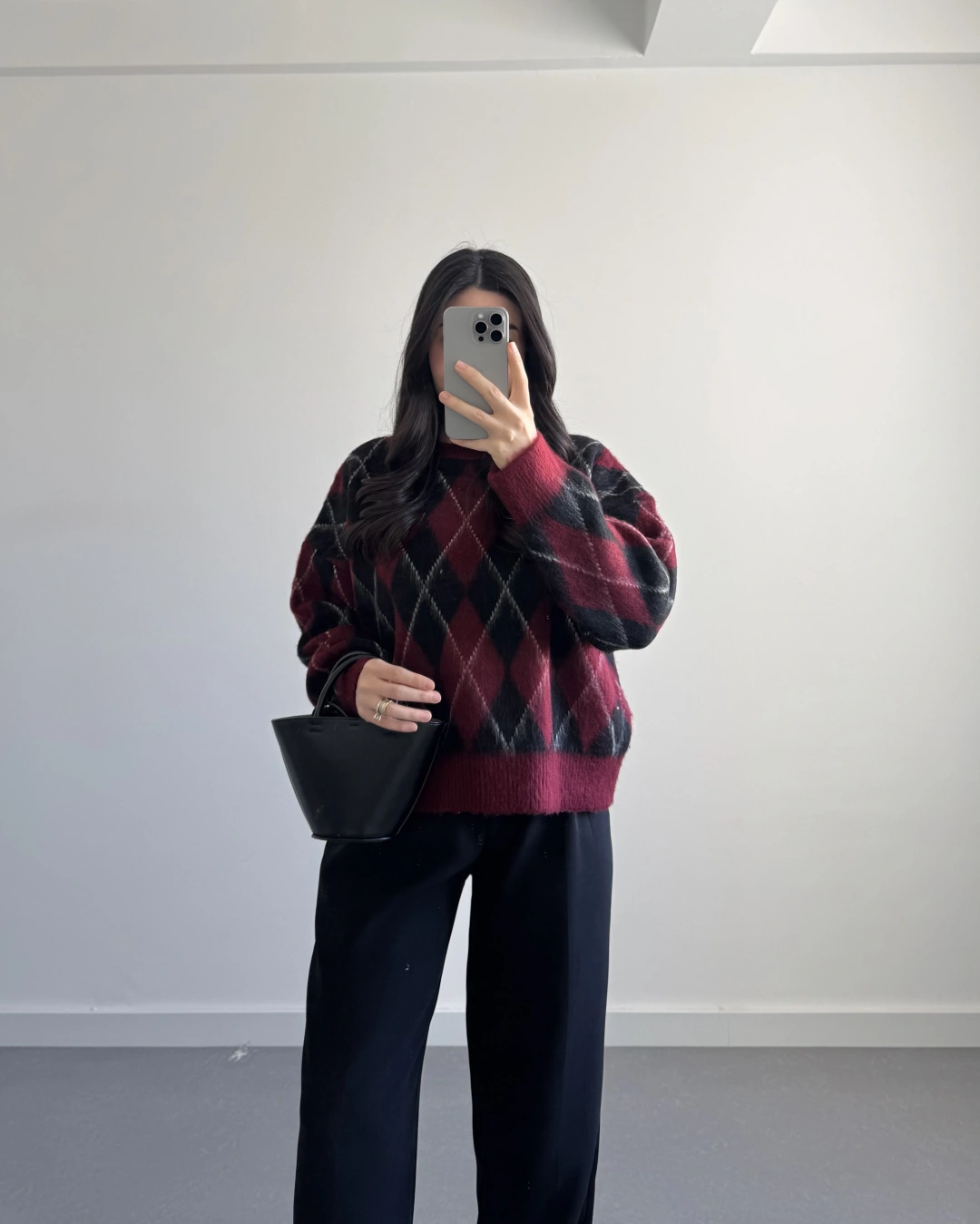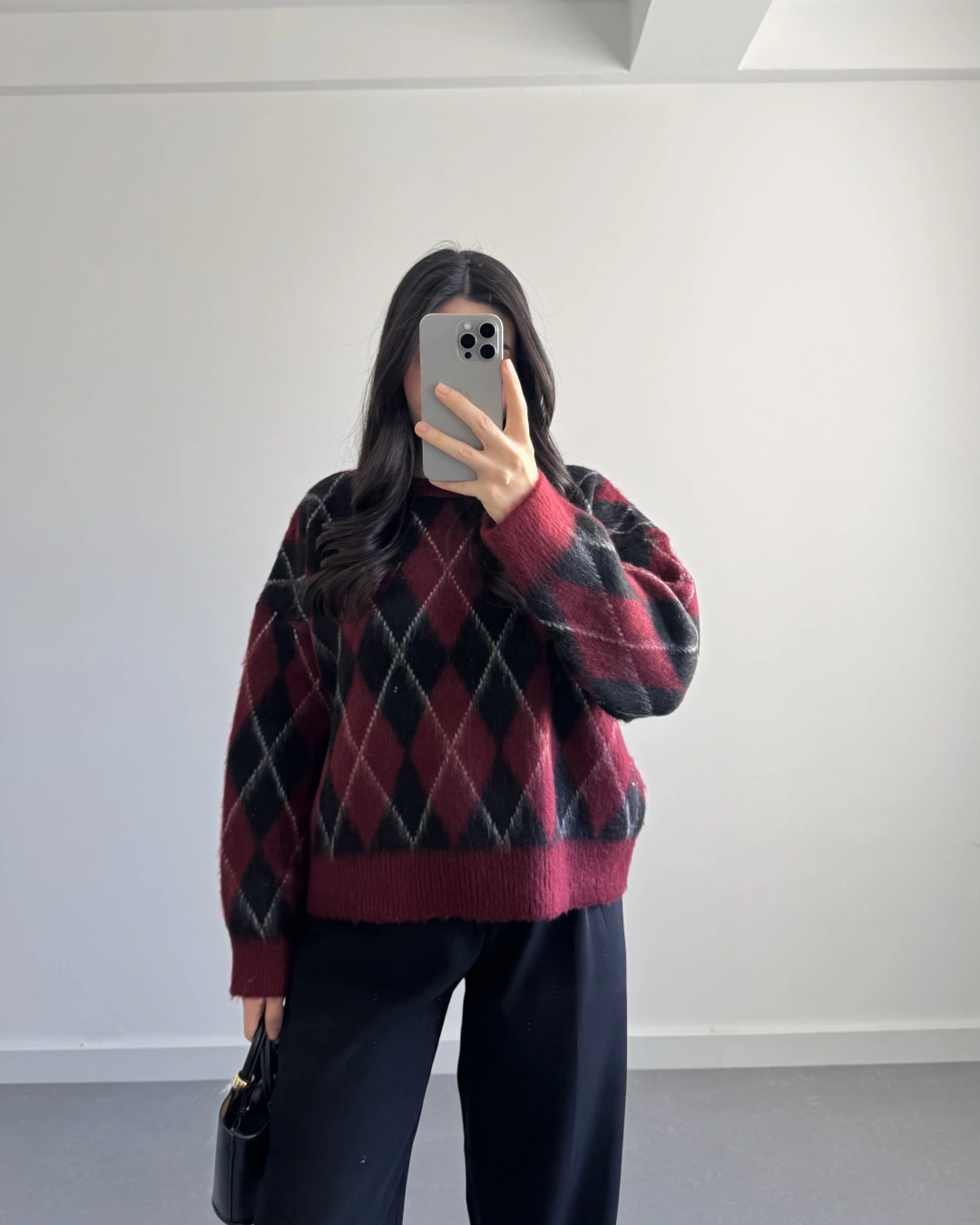 BORDO-SİYAH BAKLAVA KAZAK