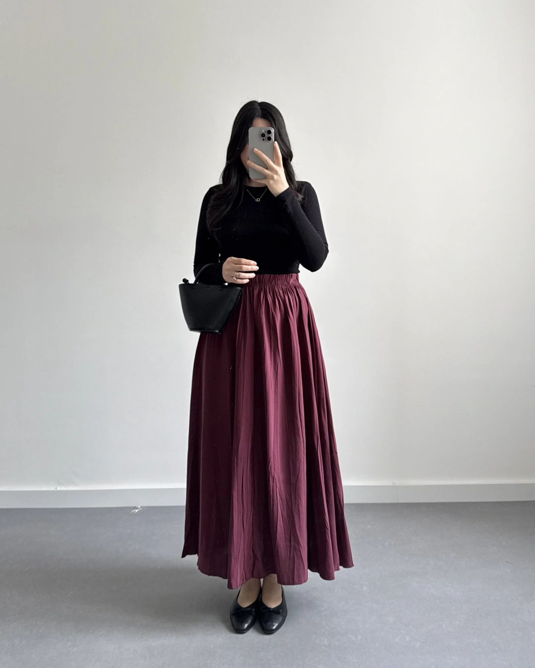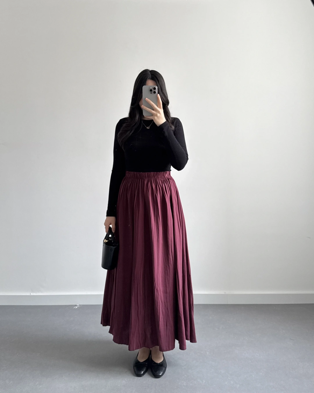 SİYAH ŞİFON EKOSE DESEN KLOŞ ETEK