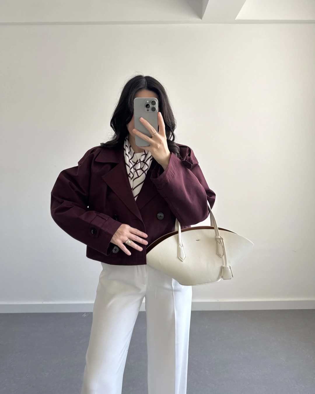 BORDO ZR MODEL KRUVAZE YAKA TRENÇKOT