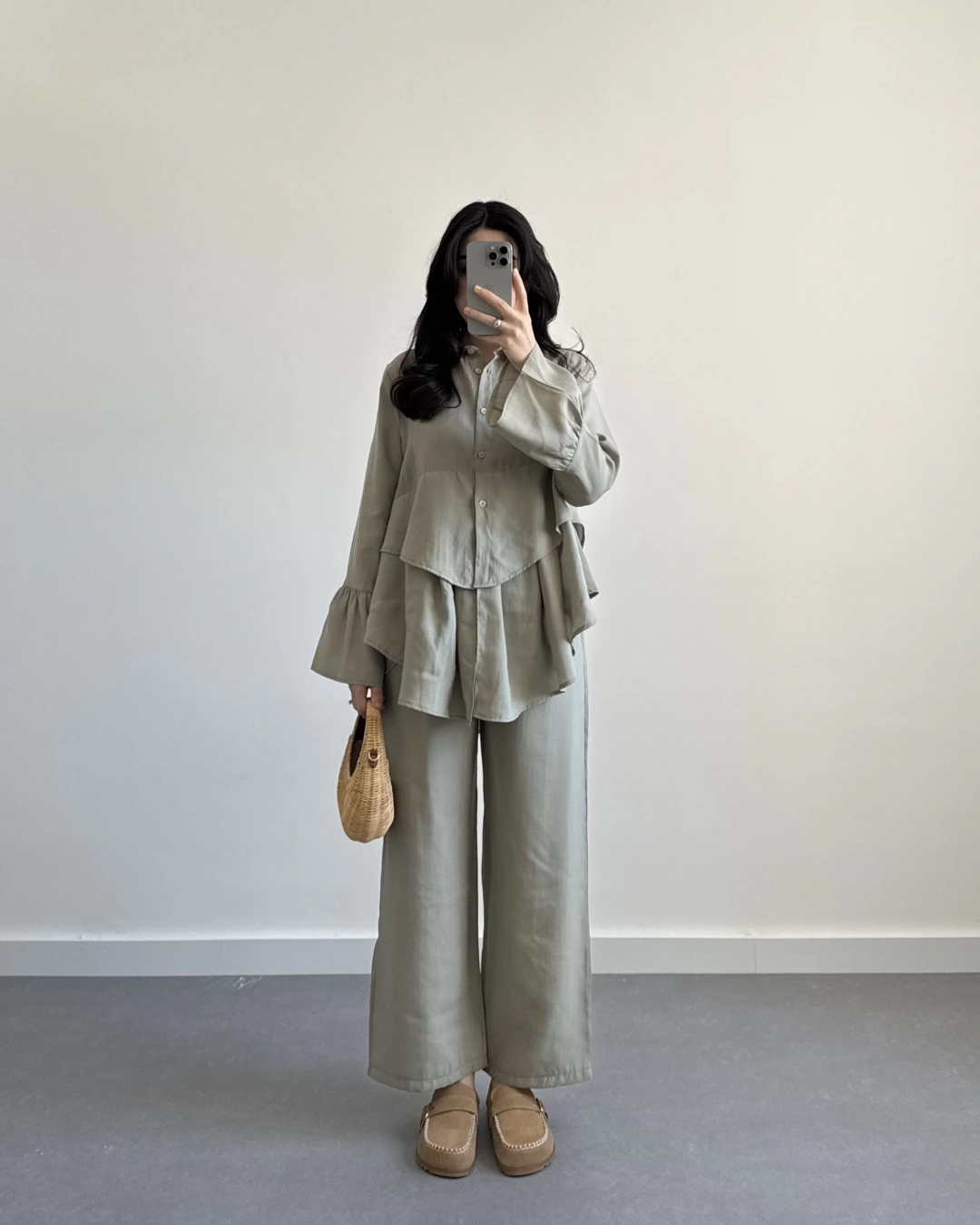 KAHVE PARAŞÜT KUMAŞ DETAYLI MODAL TAKIM