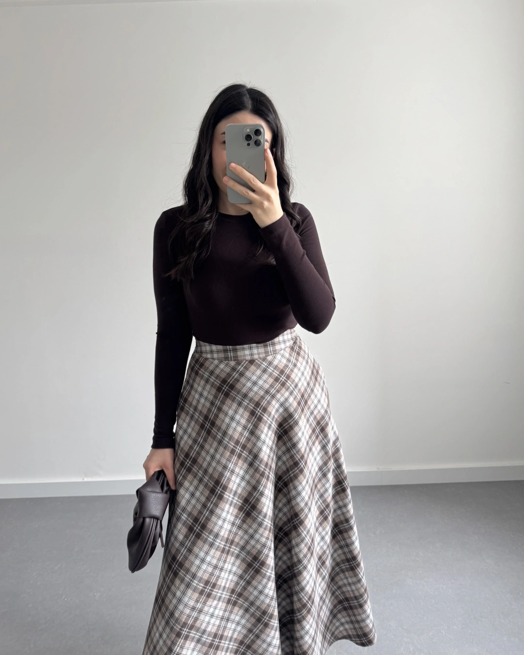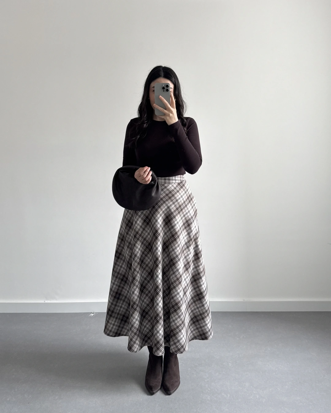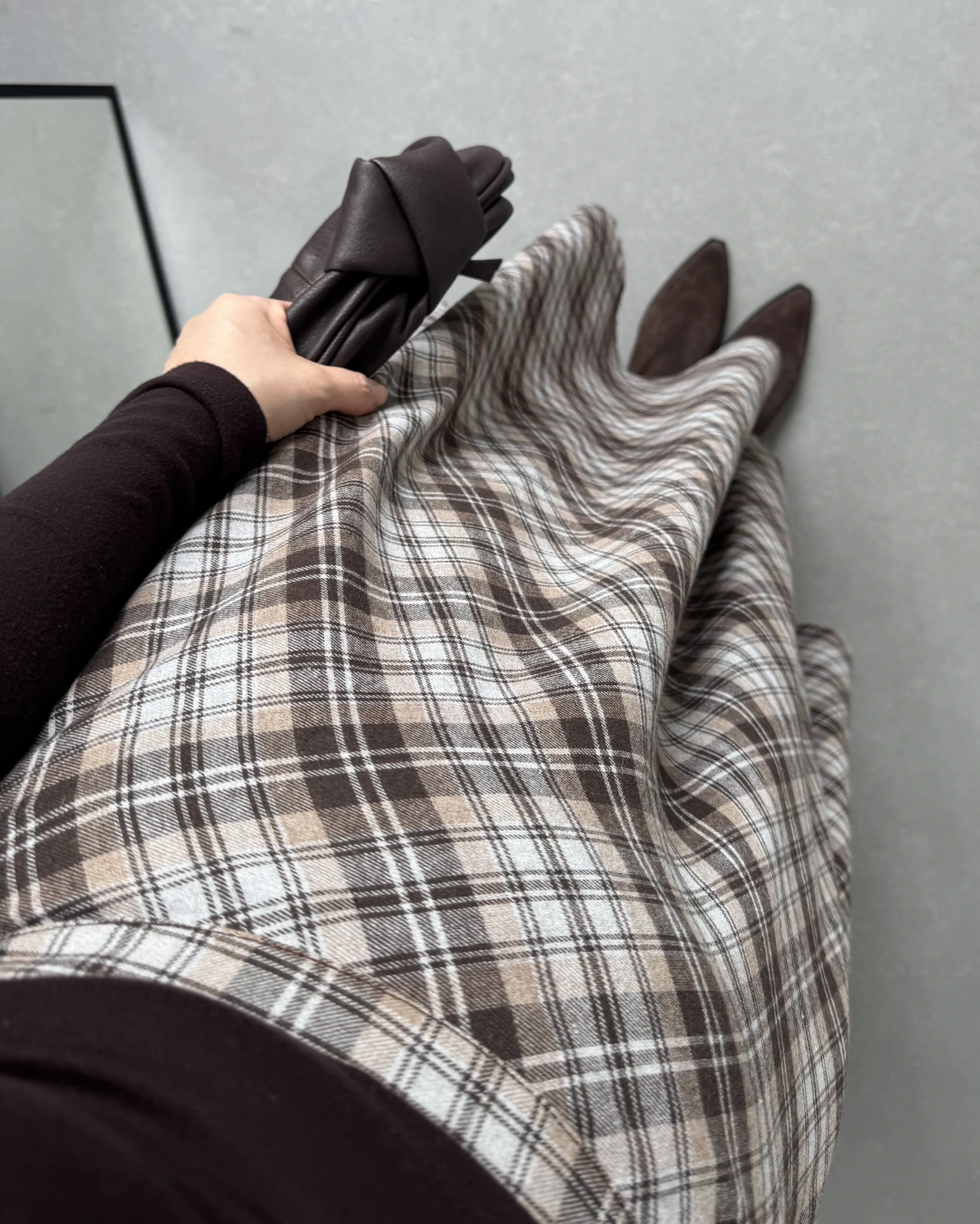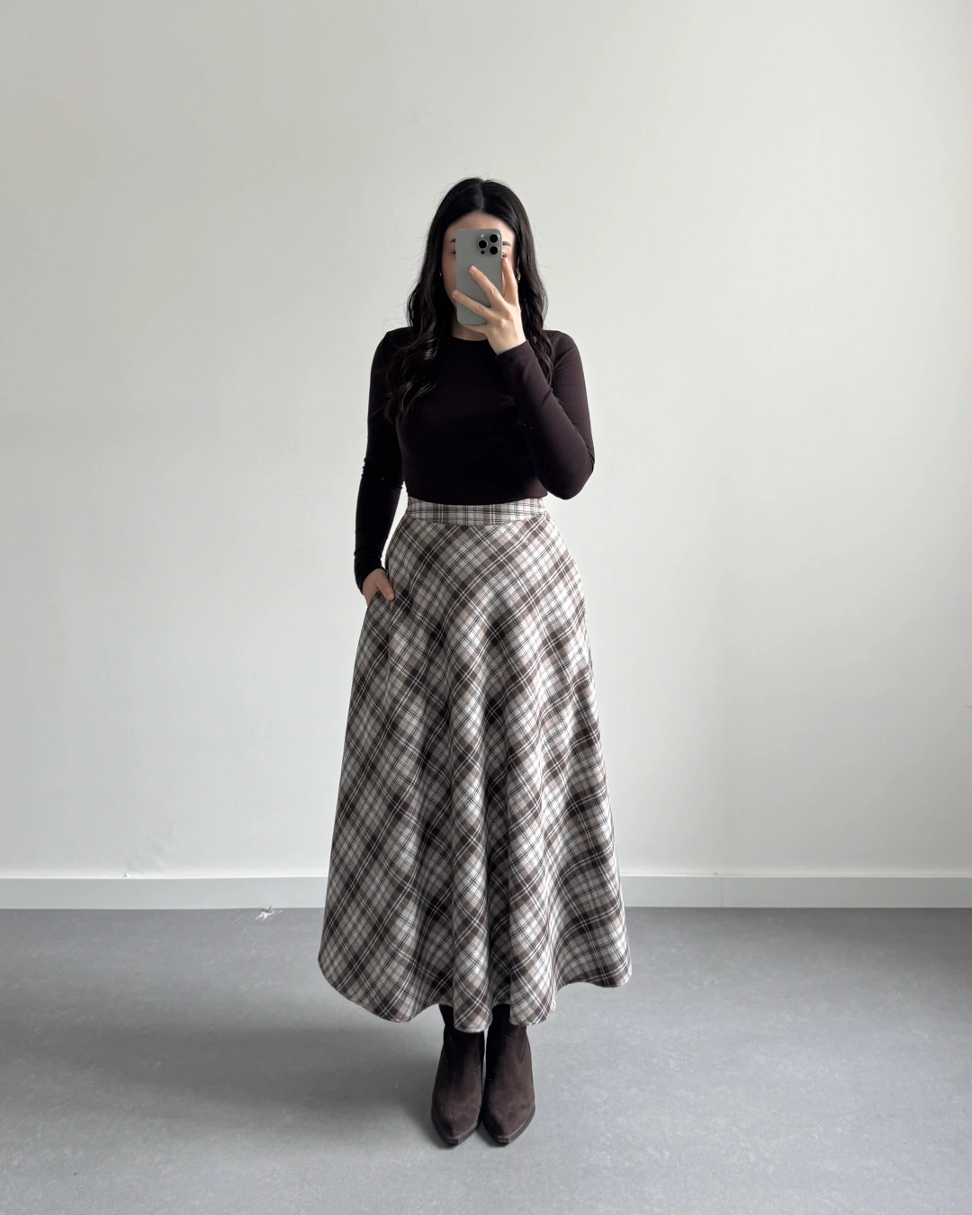 GRİ- KAHVE EKOSE CEPLİ ETEK