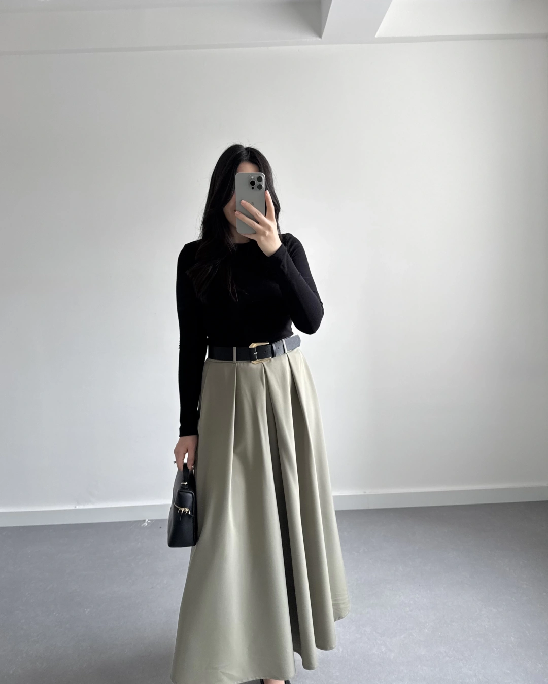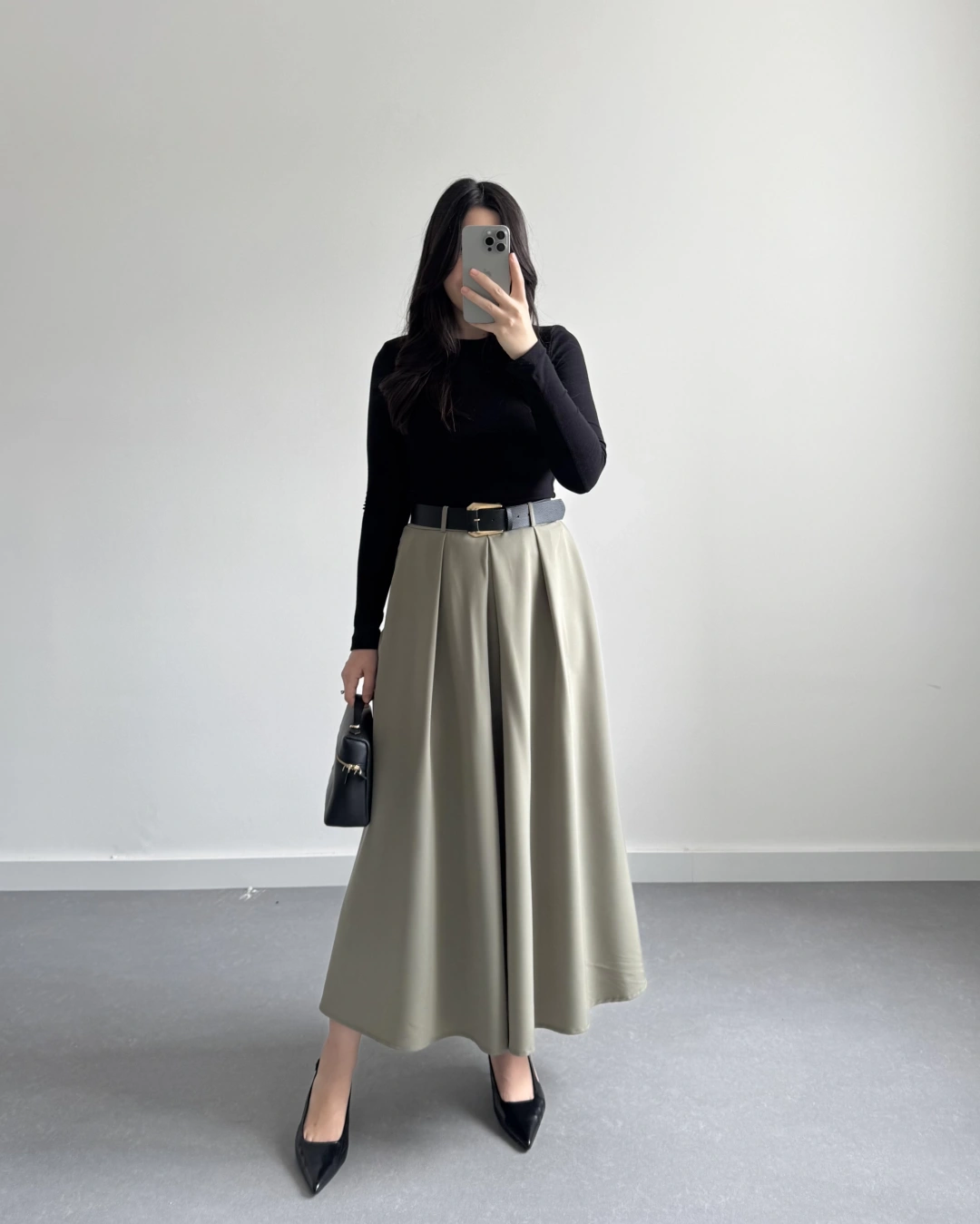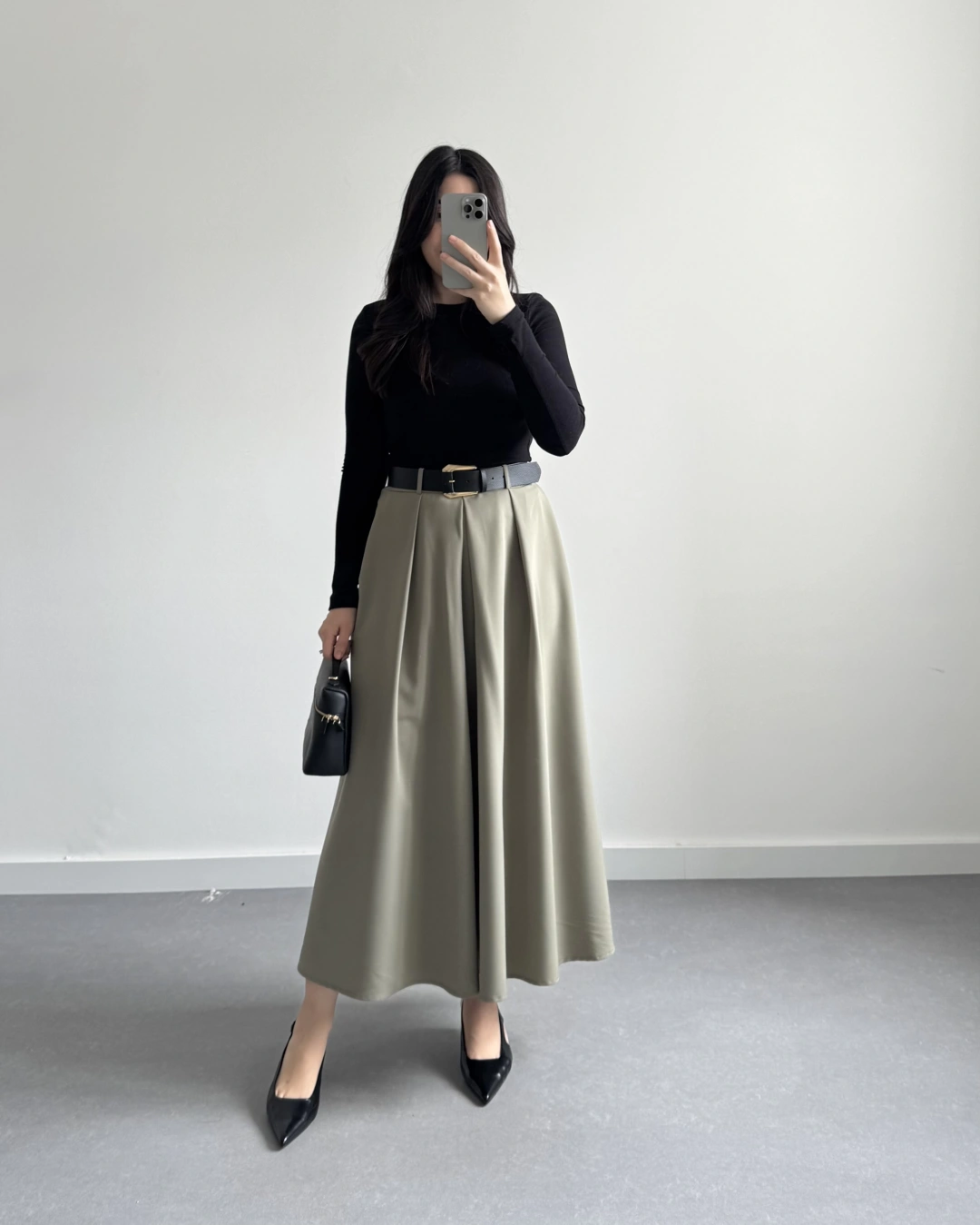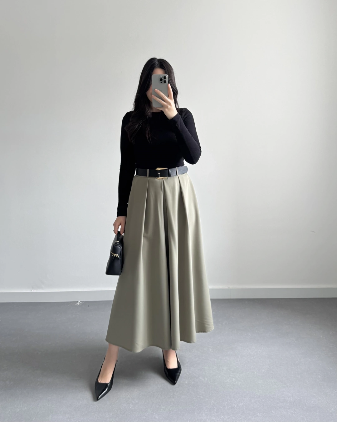 HAKİ KEMERLİ POLİVİSKON ETEK