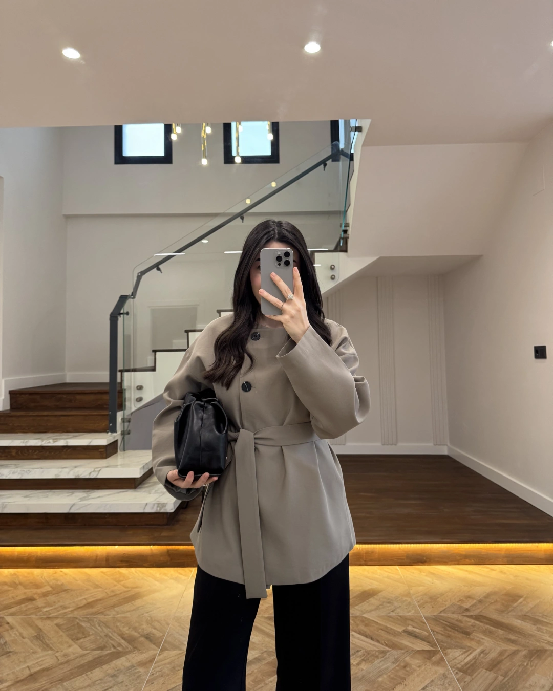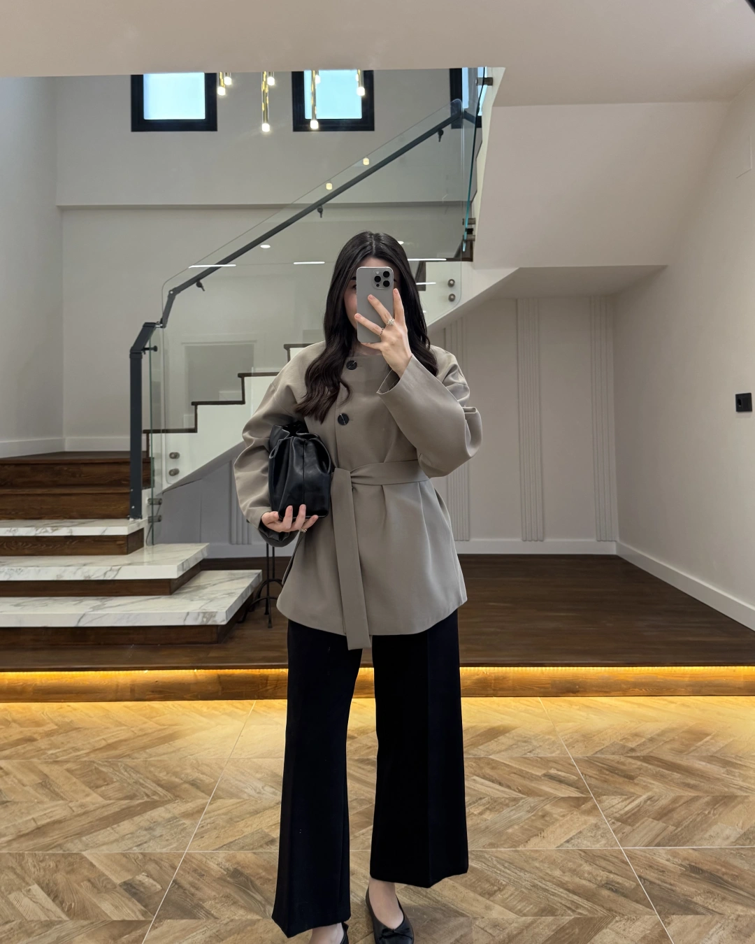 HAKİ KUŞAK DETAYLI CEKET-7672