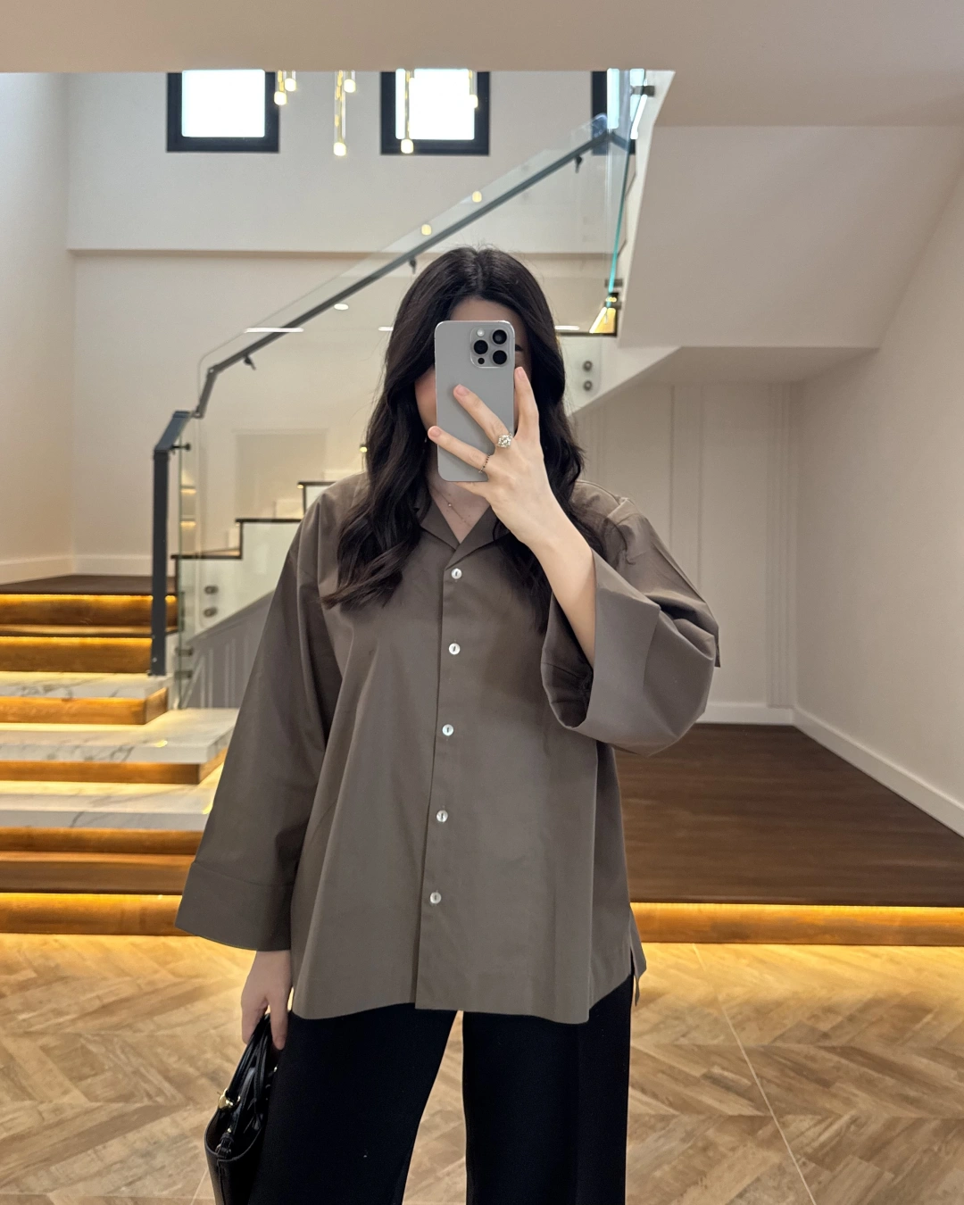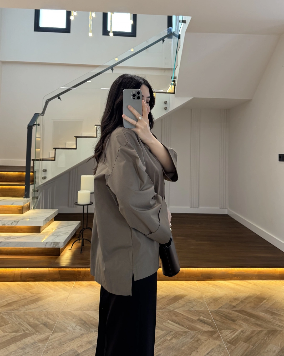HAKİ OVERSİZE DUBLE KOL GÖMLEK-5411