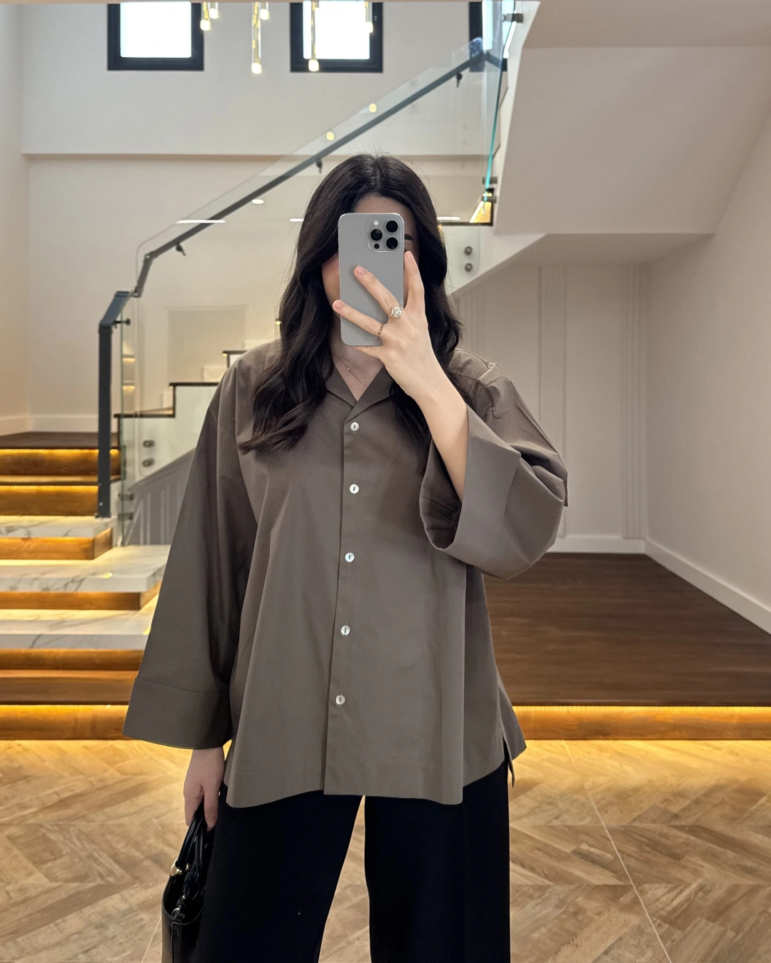 KAHVE PİLE DETAY V YAK GÖMLEK-2222