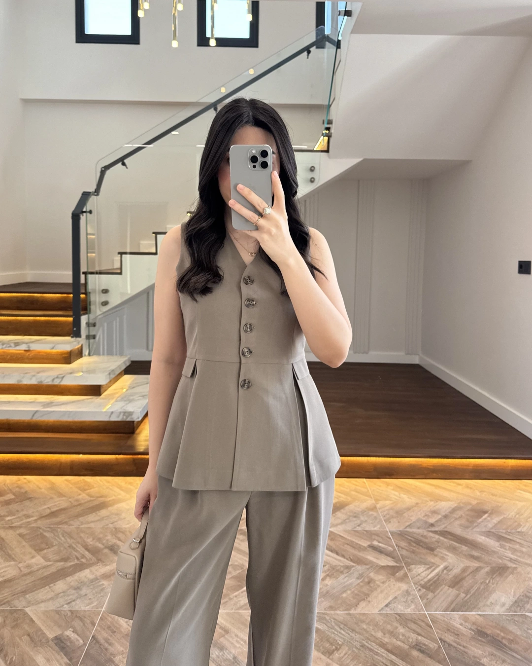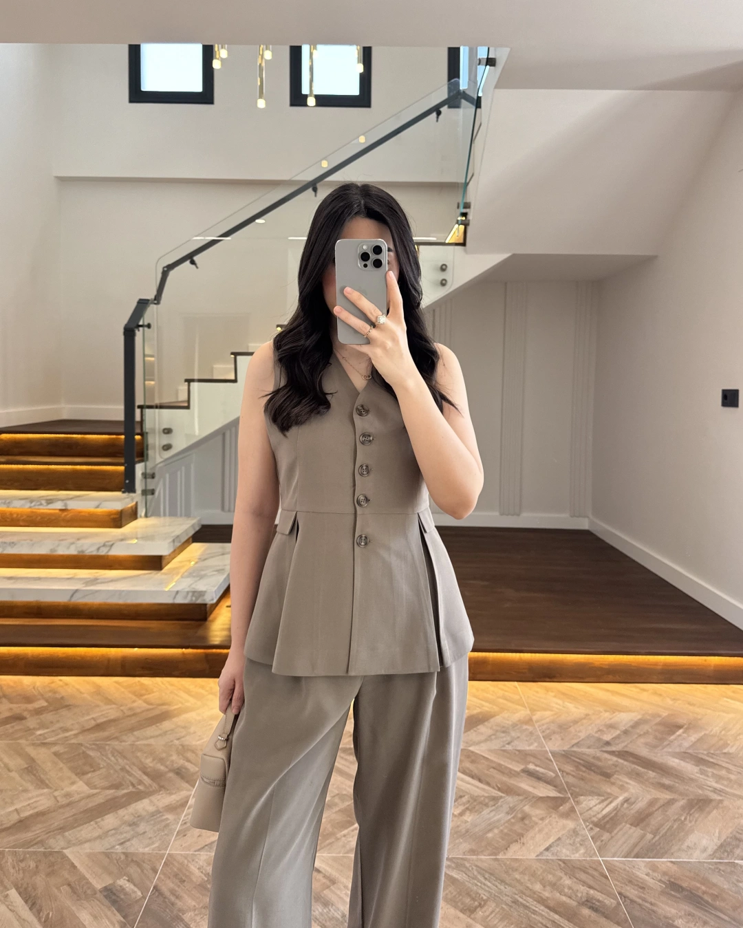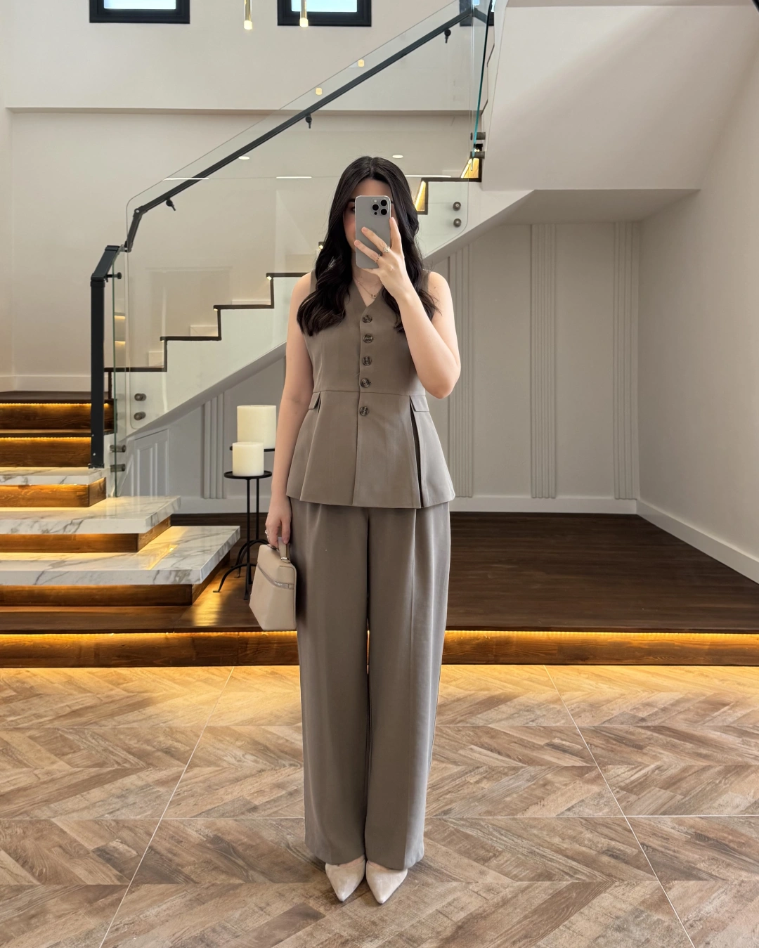 KAHVE PİLELİ YELEK TAKIM-9041