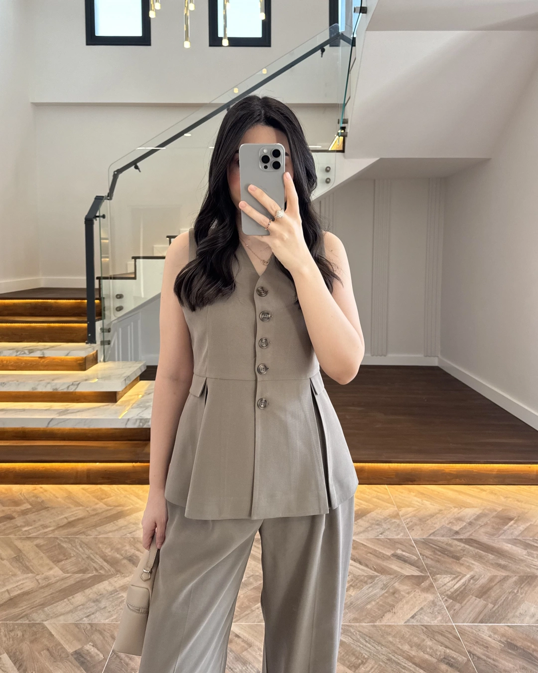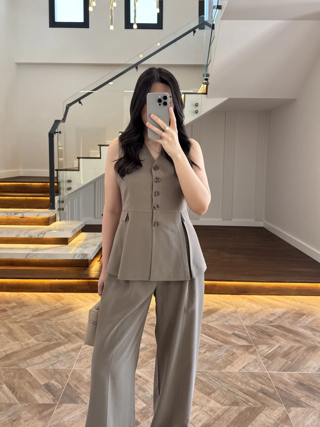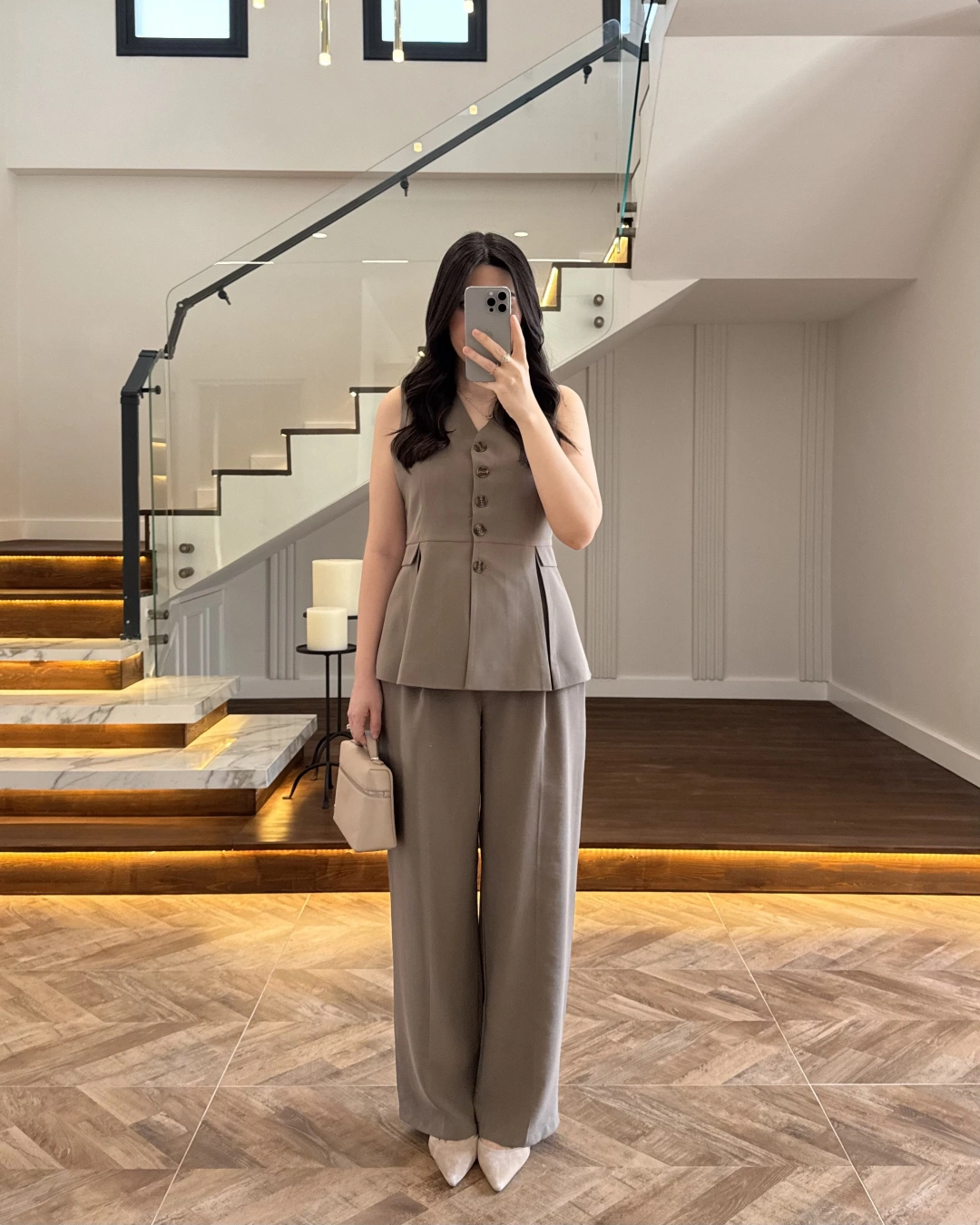 KAHVE PİLELİ YELEK TAKIM-9041