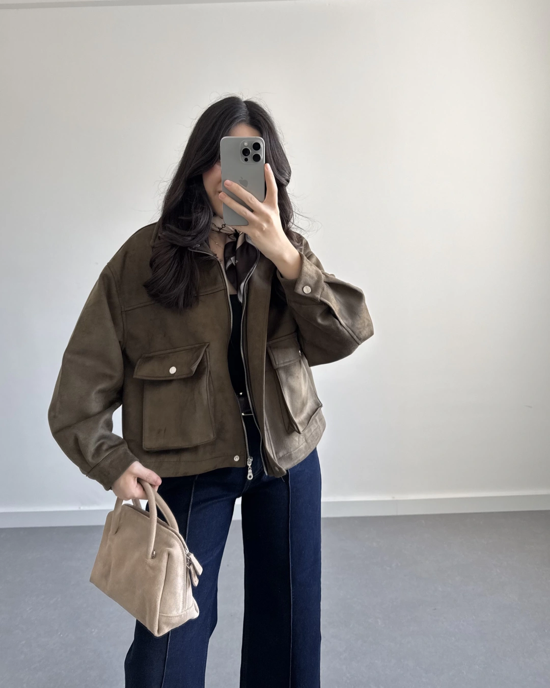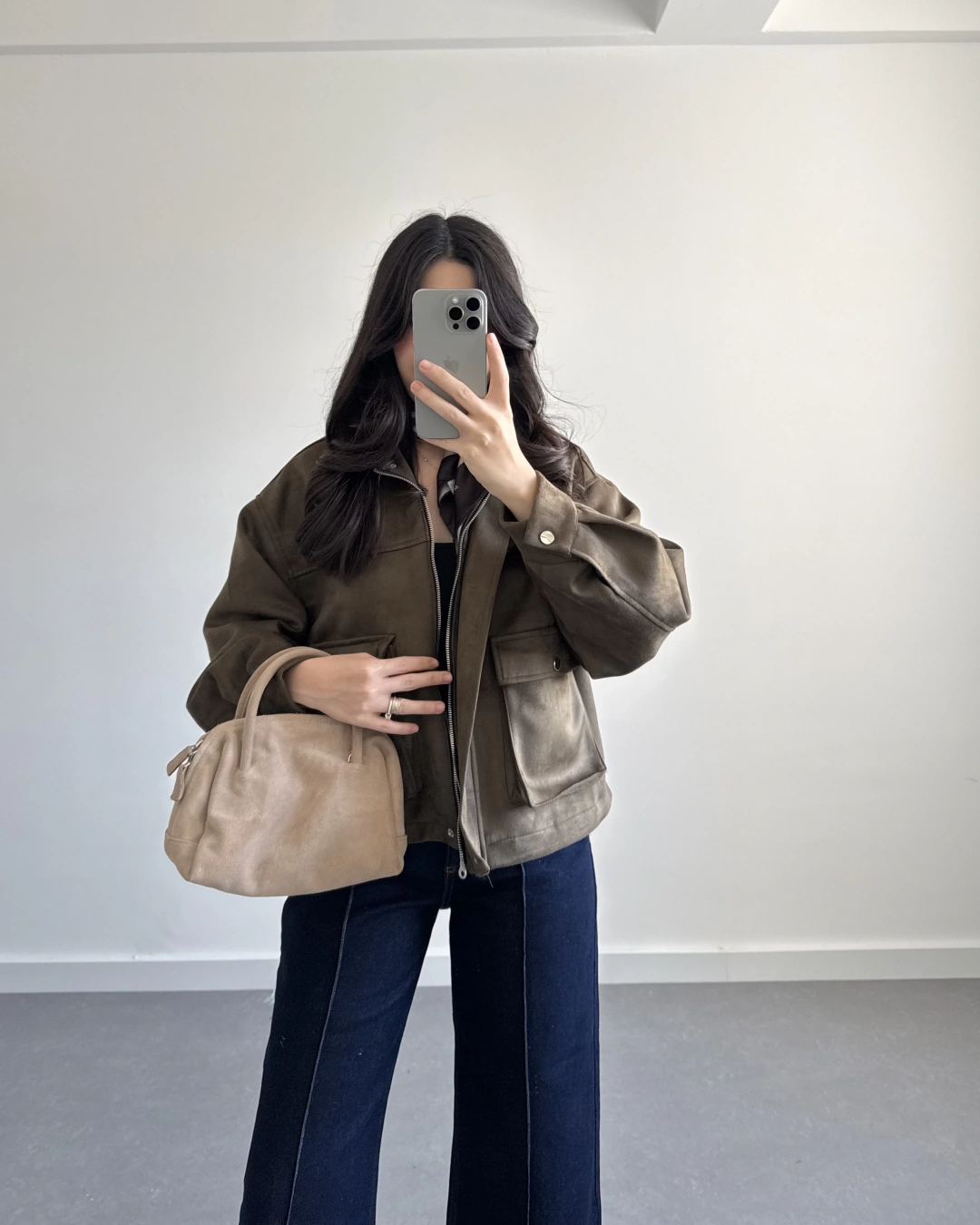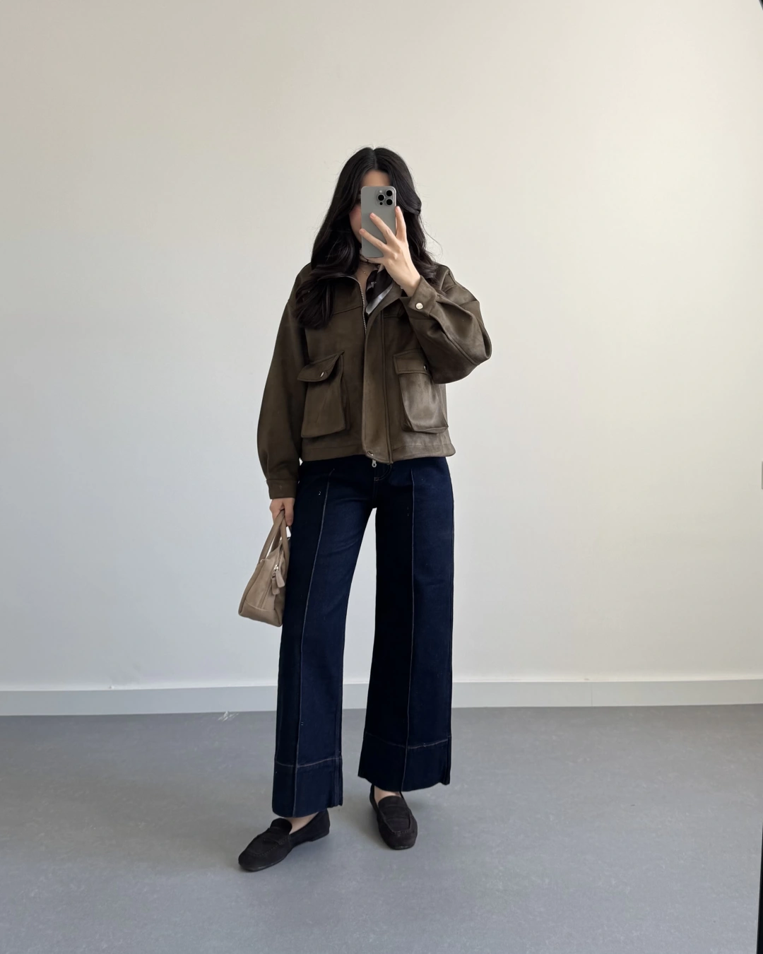 HAKİ SÜET ÖNÜ CEPLİ BOMBER CEKET