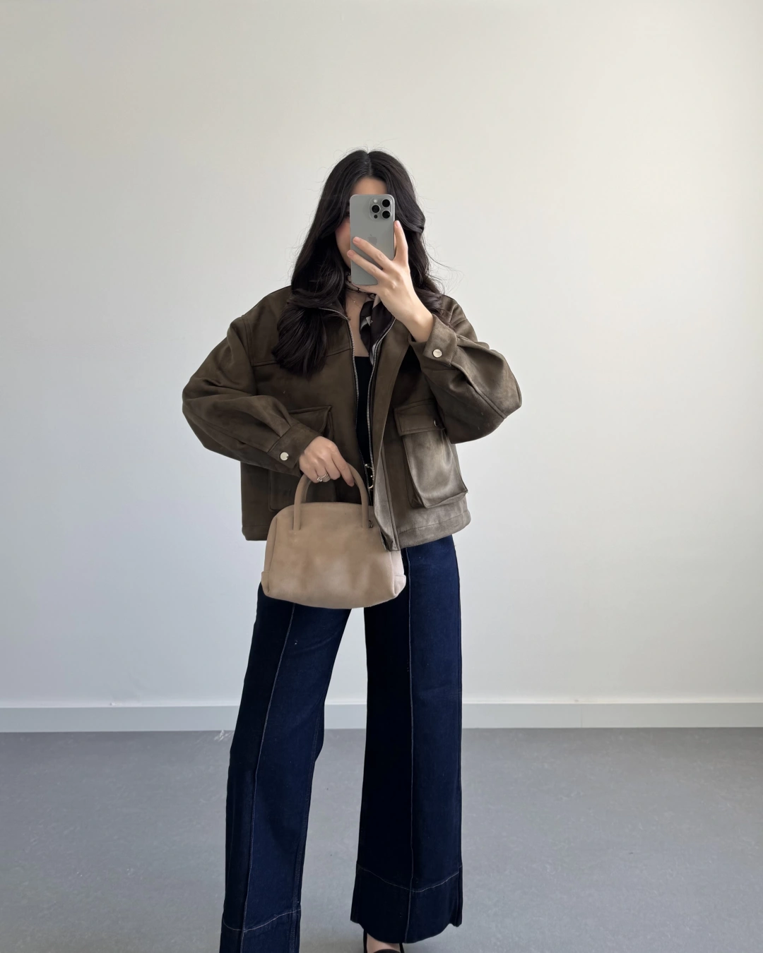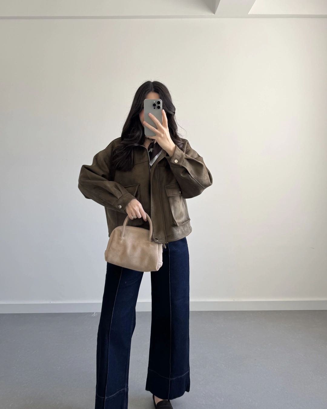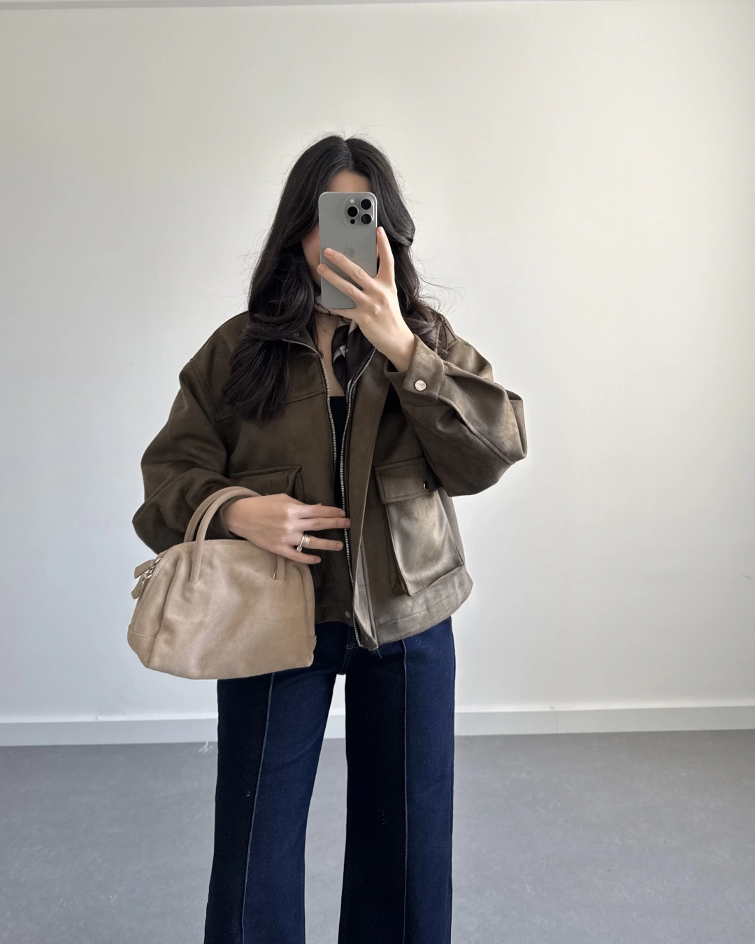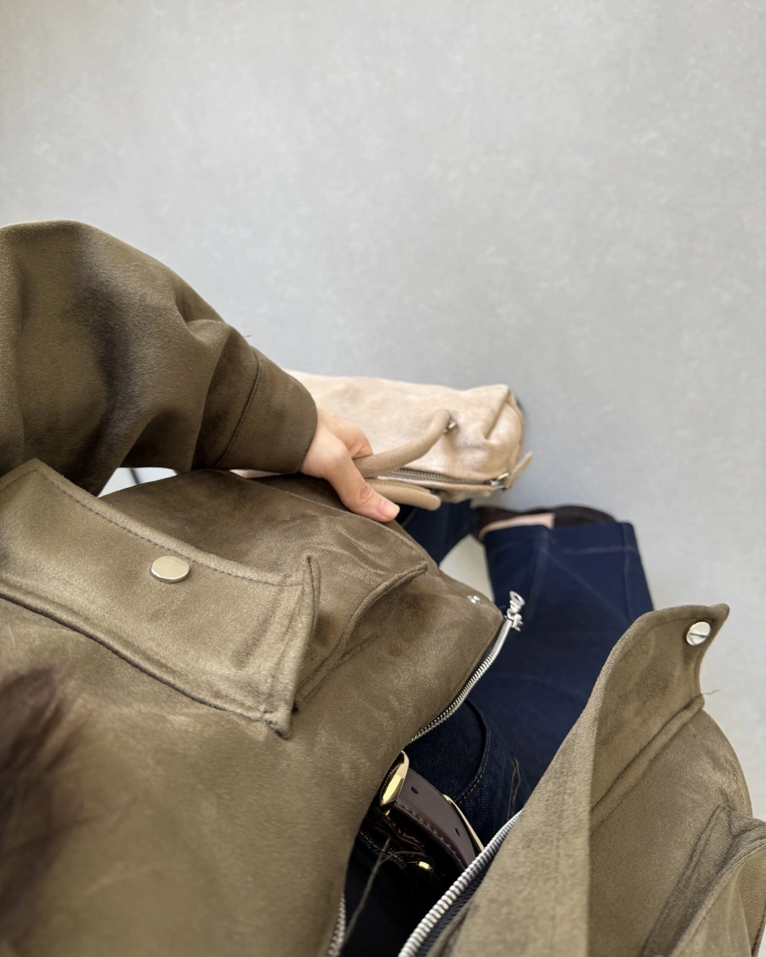 HAKİ SÜET ÖNÜ CEPLİ BOMBER CEKET