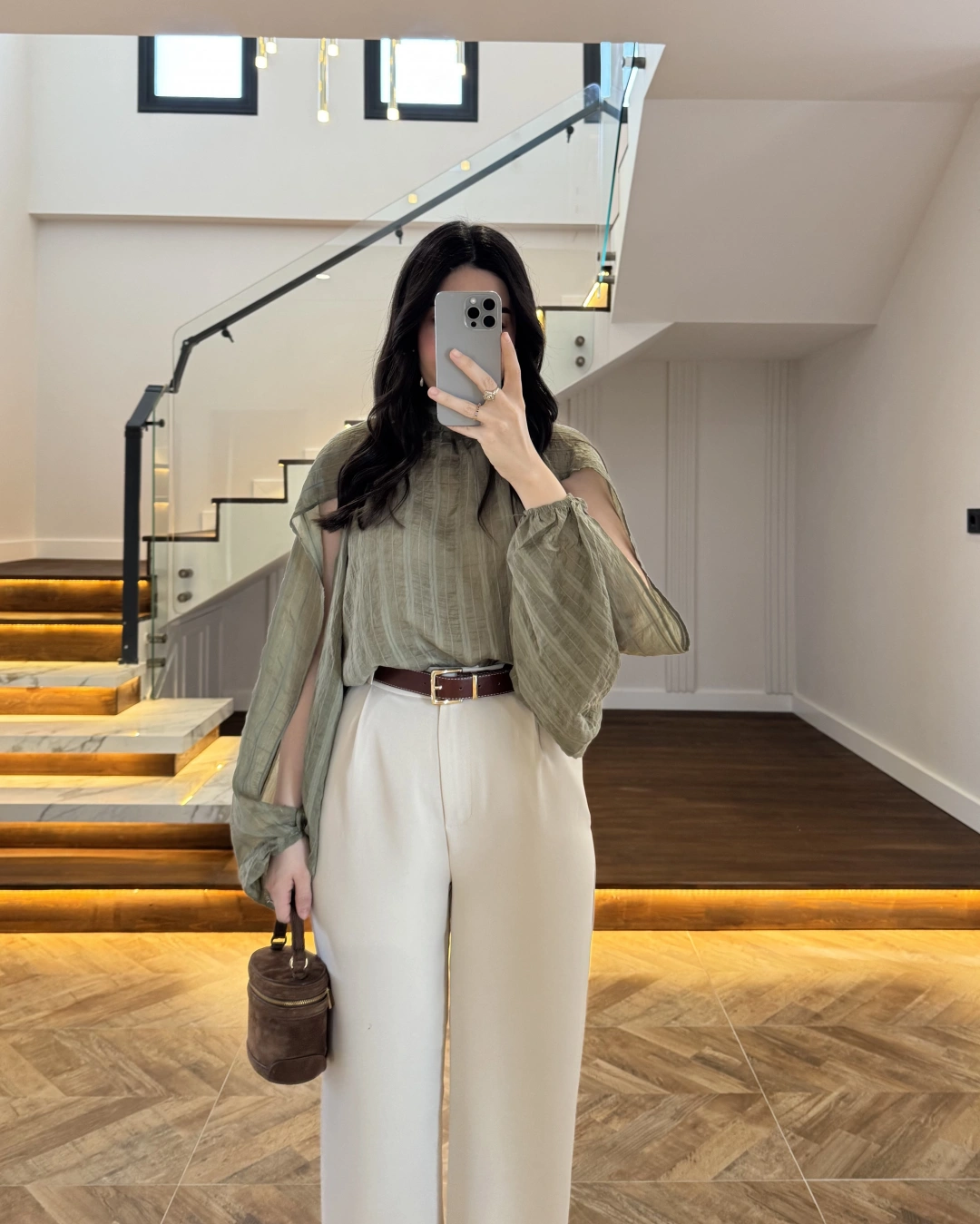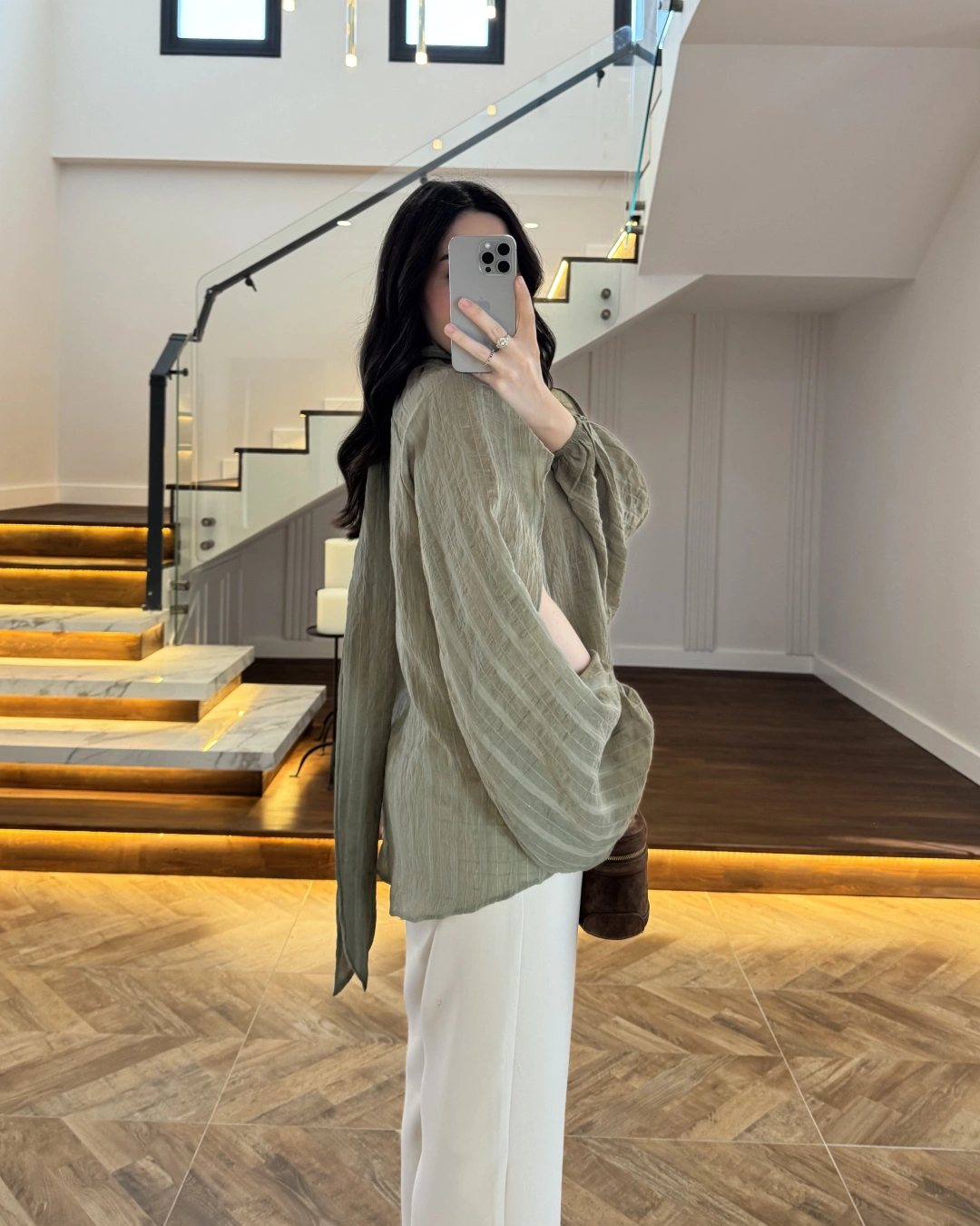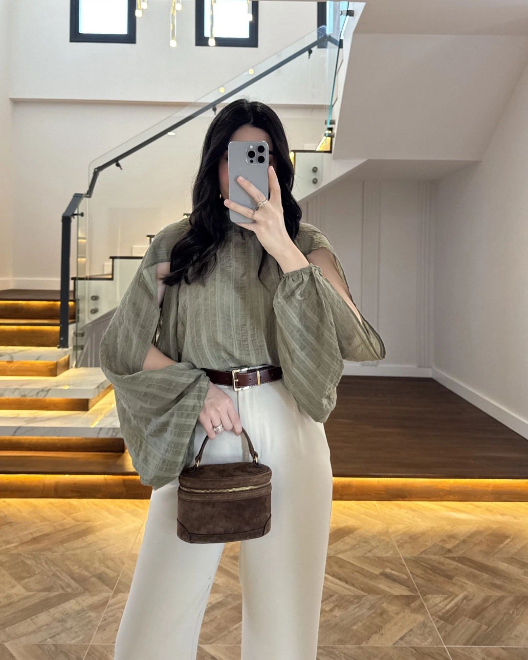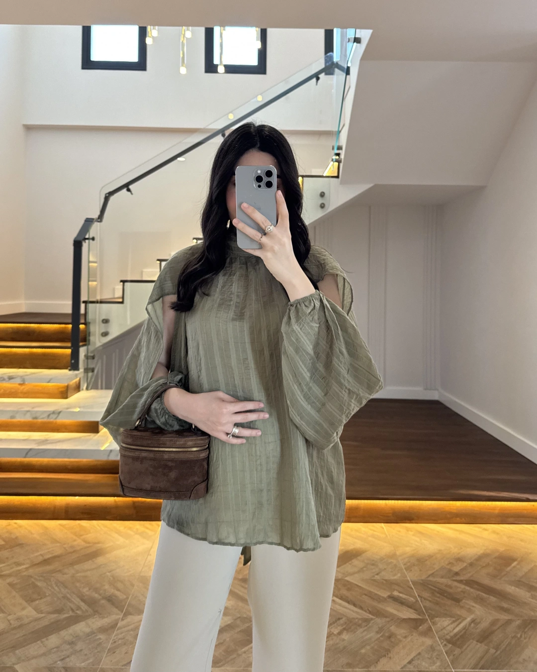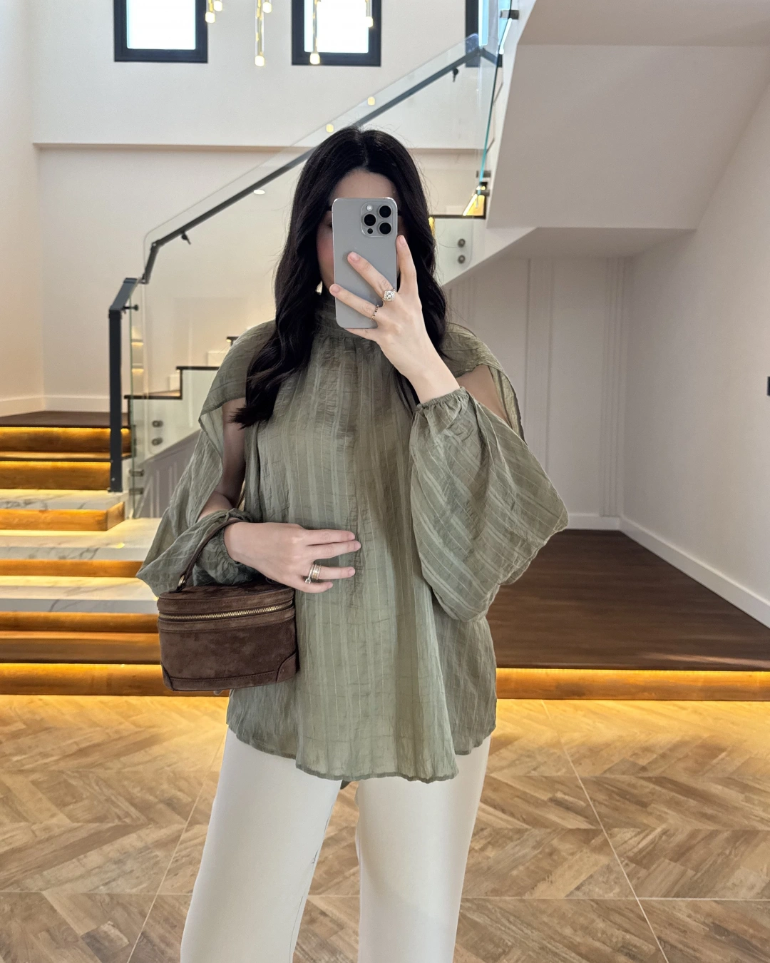 HAKİ TASARIM BALON KOL BLUZ -5415