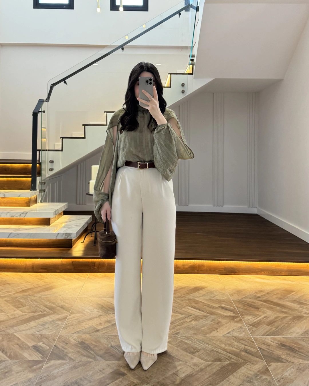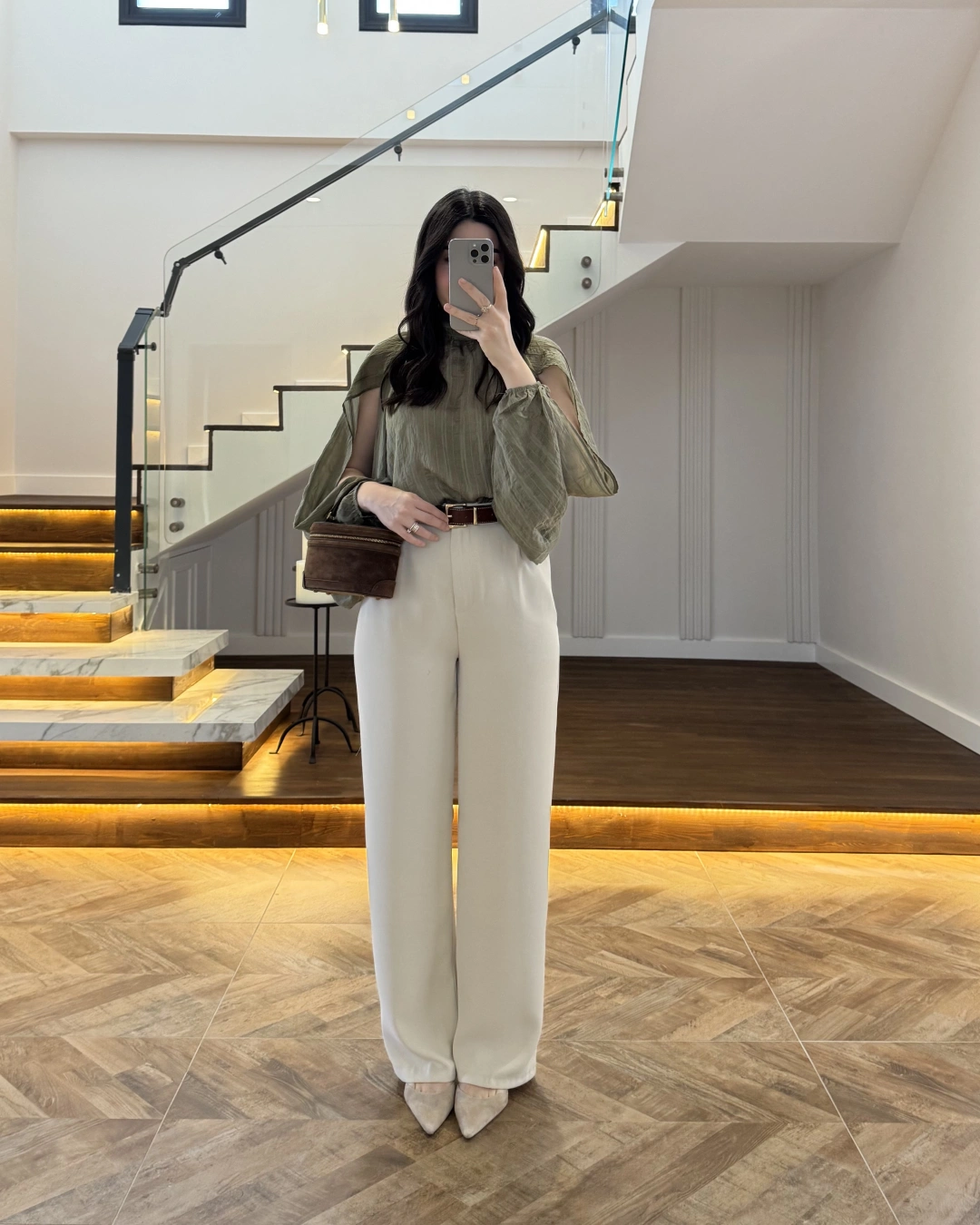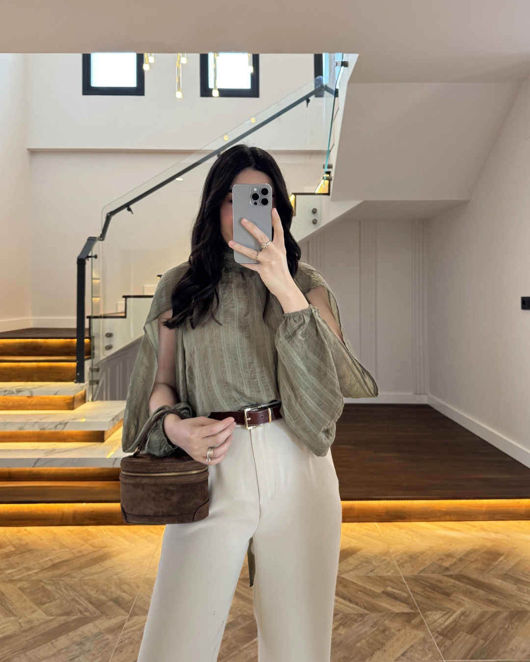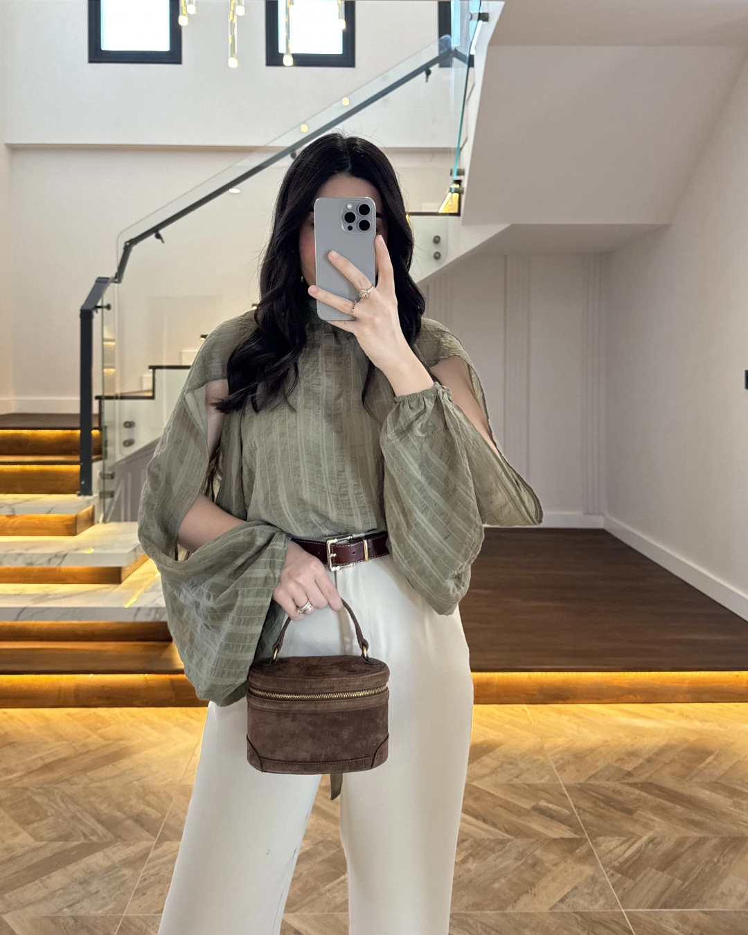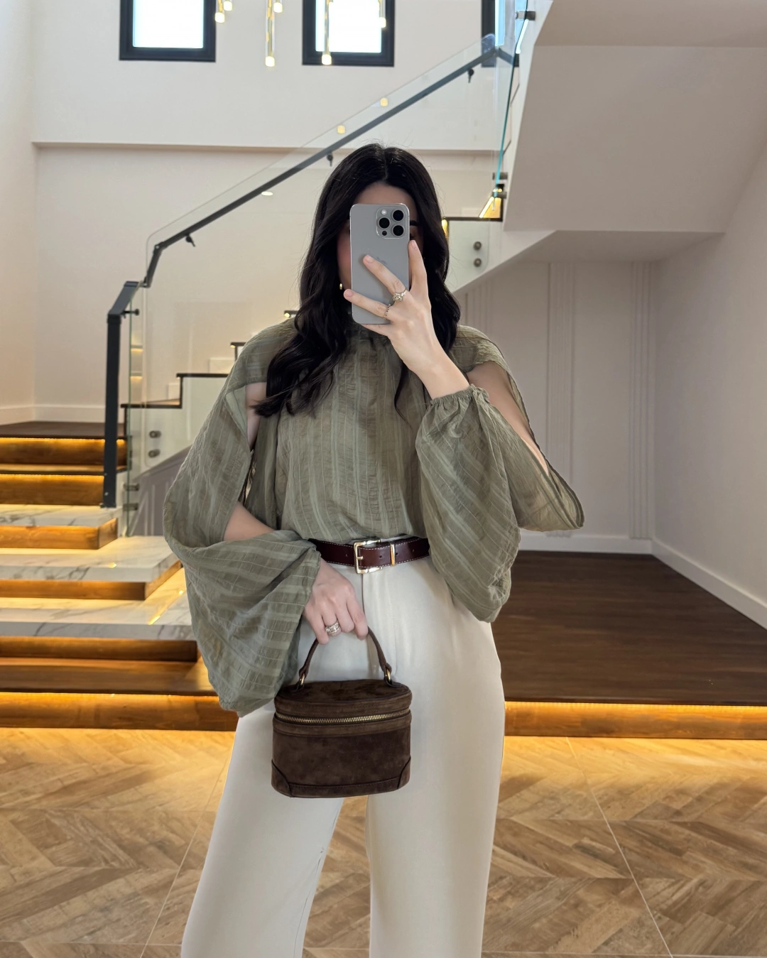 HAKİ TASARIM BALON KOL BLUZ -5415