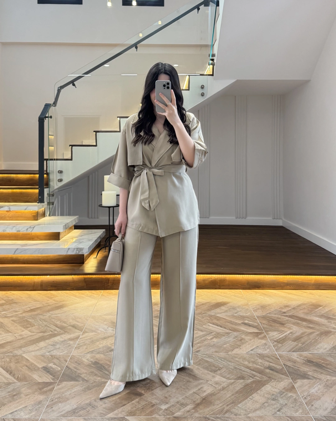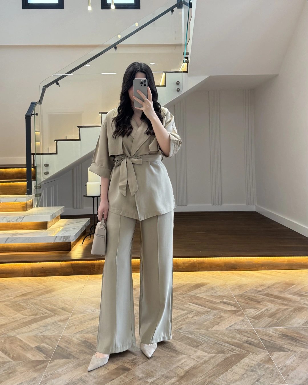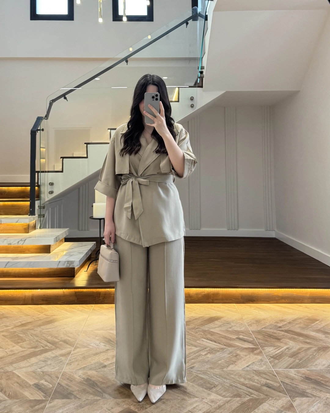 HAKİ TENSEL YARIM KOL GÖMLEK PANTOLON TAKIM -267309