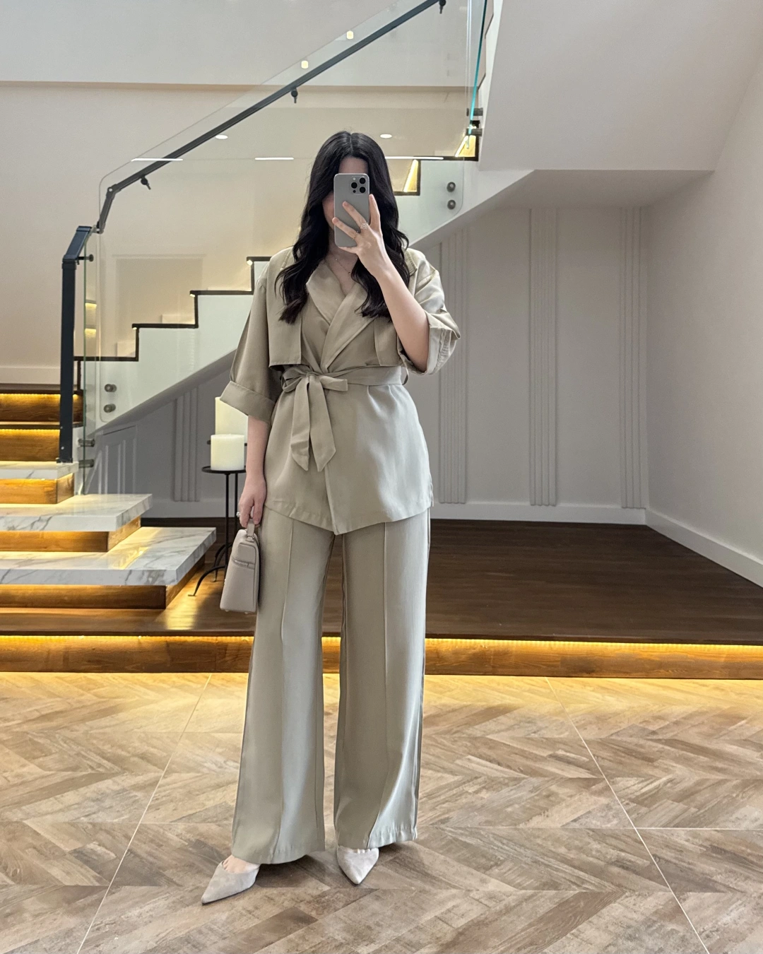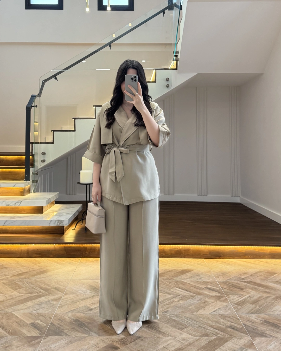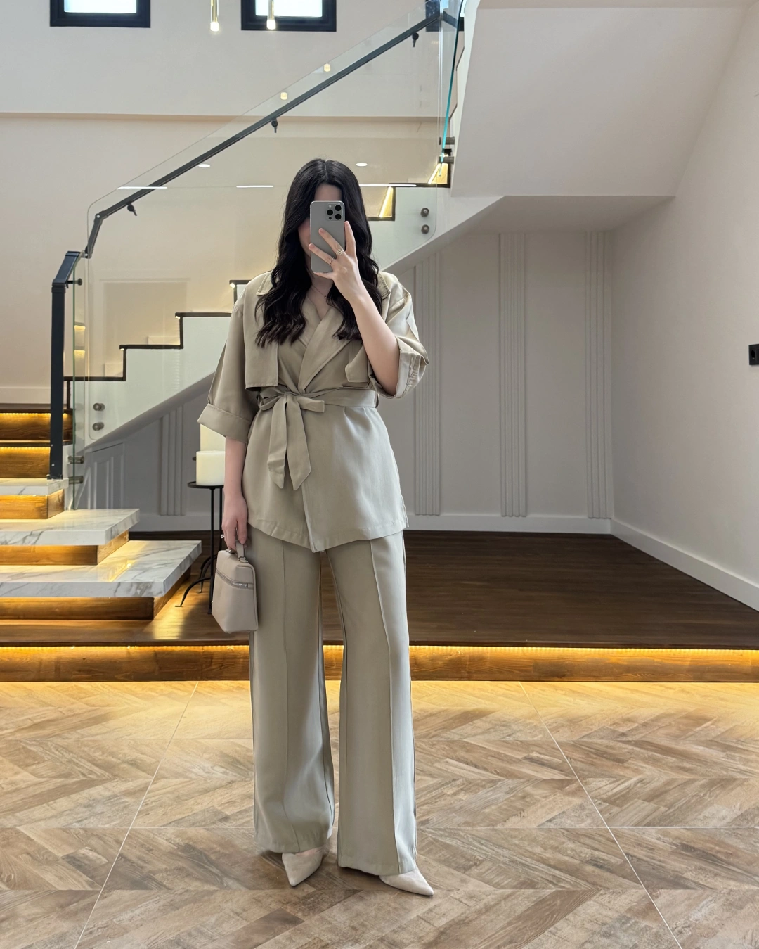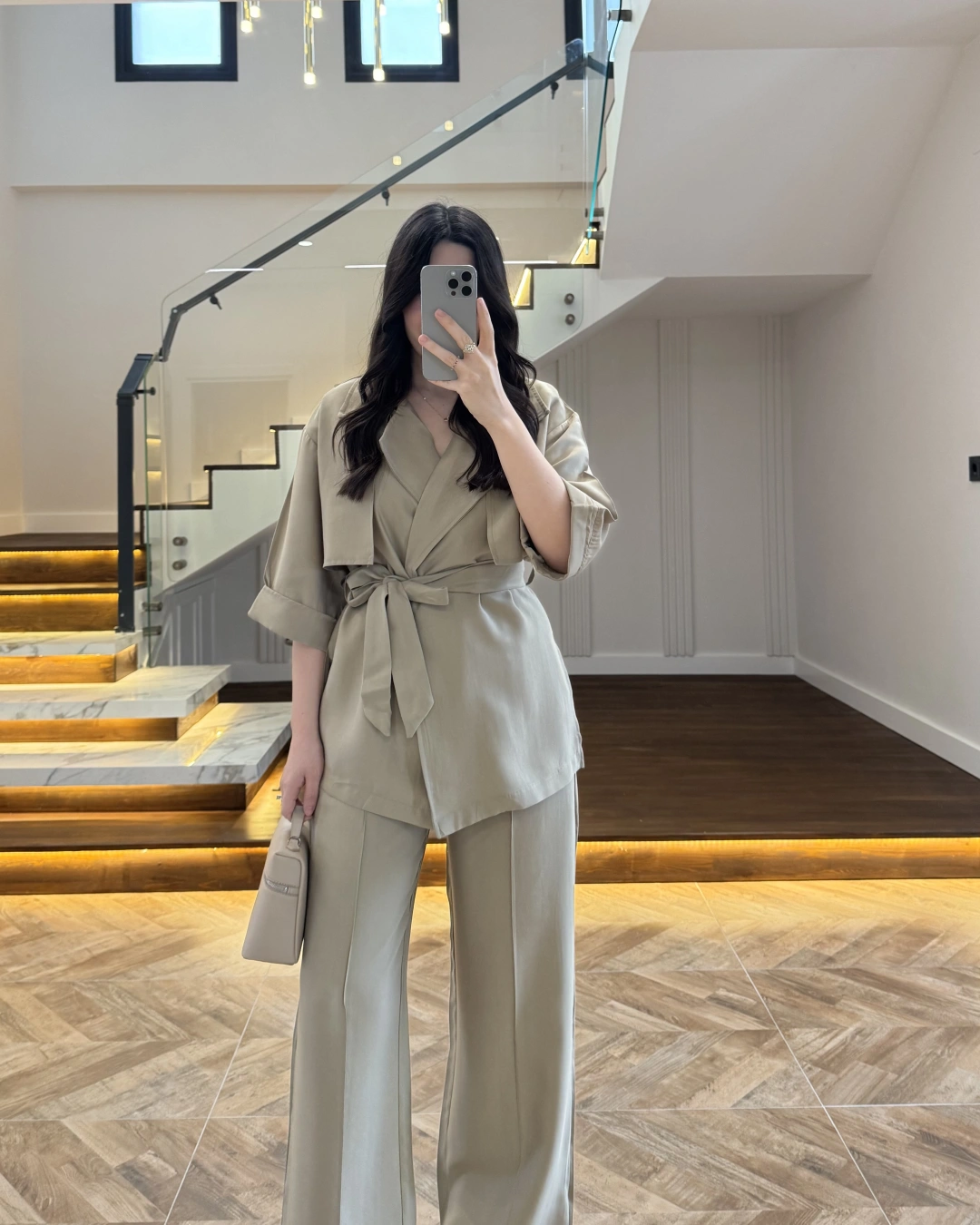 HAKİ TENSEL YARIM KOL GÖMLEK PANTOLON TAKIM -267309