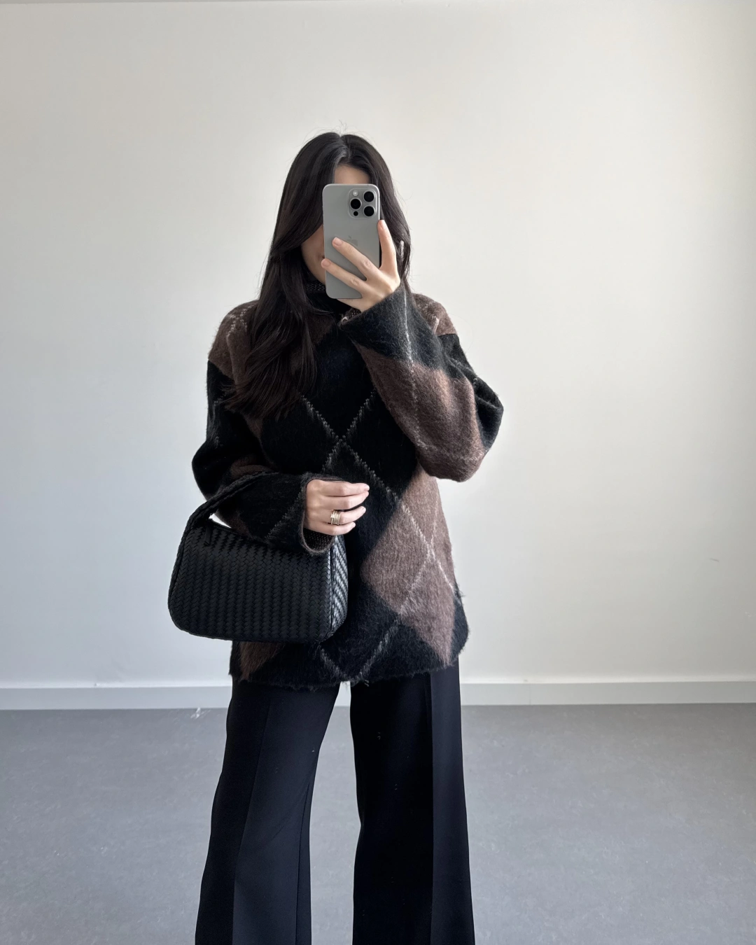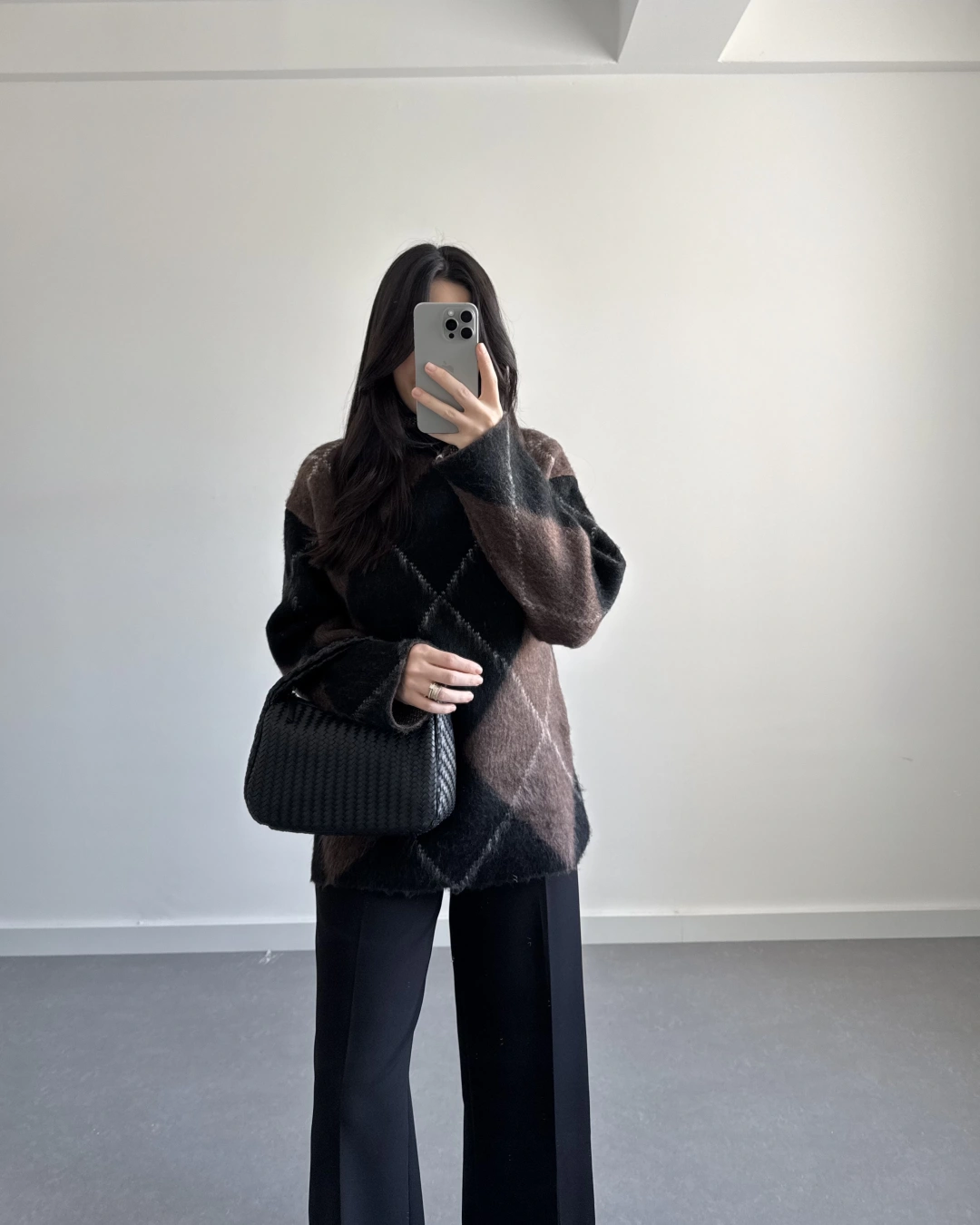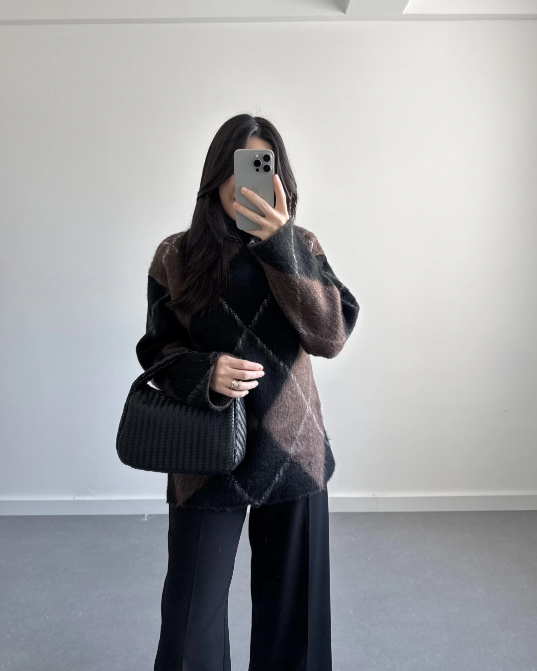 HM BAKLAVA DESEN KAHVE YÜN KAZAK