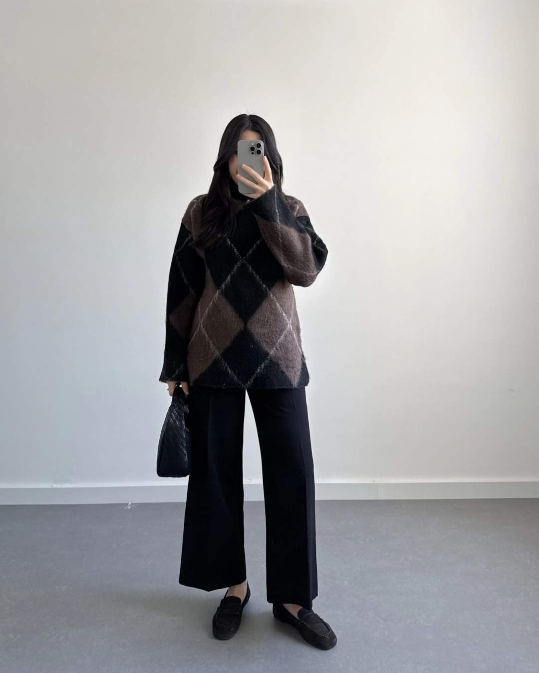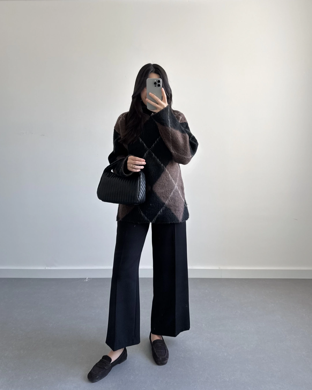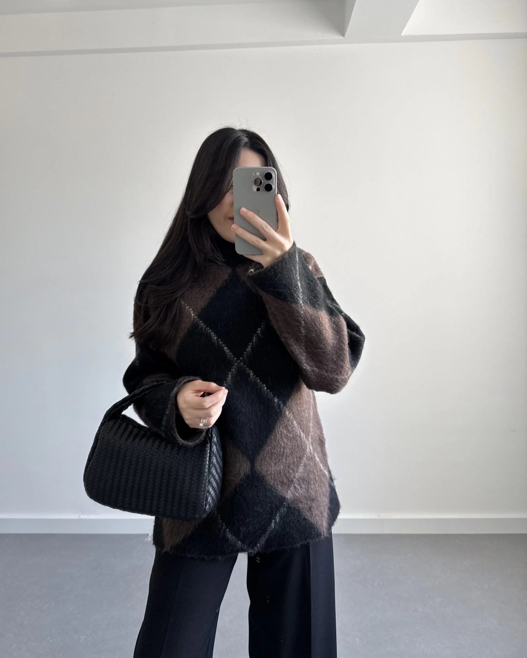 HM BAKLAVA DESEN KAHVE YÜN KAZAK