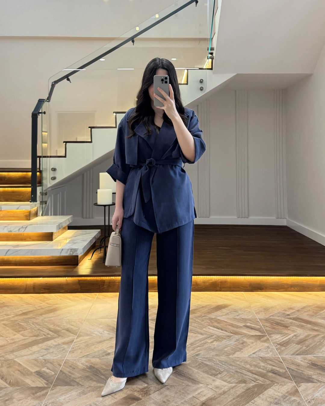 (ÖN SİPARİŞ) LACİVERT KÖPRÜ DETAYLI PALAZZO PANTOLON-3855
