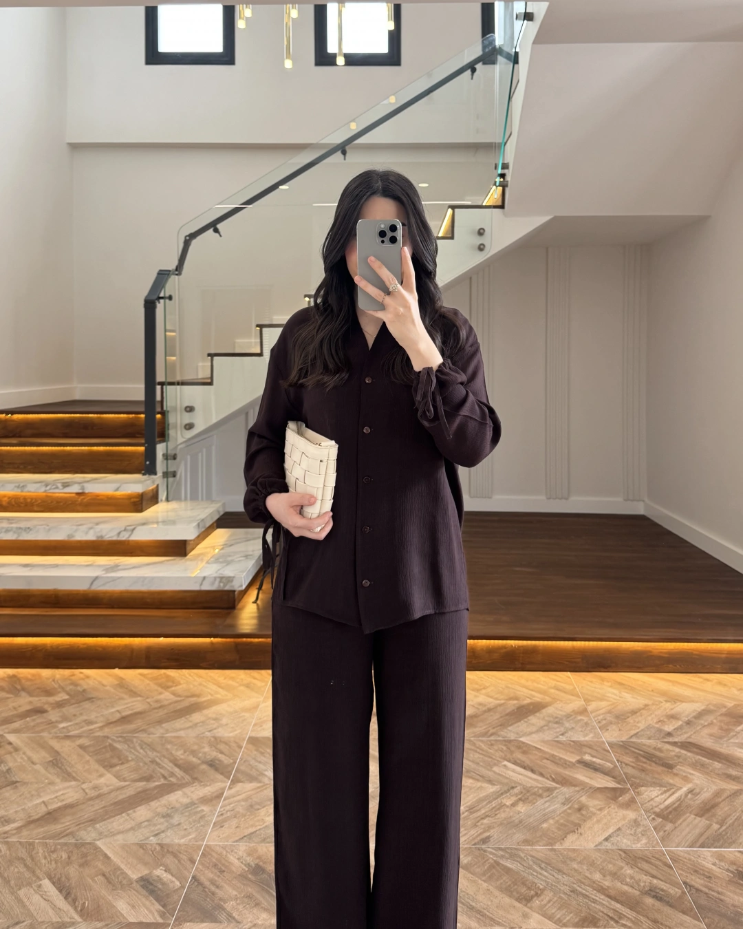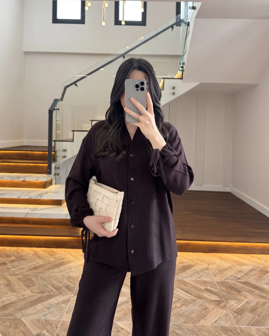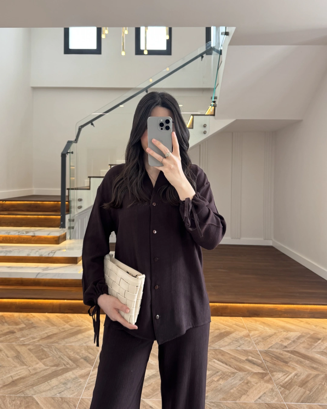 KAHVE VİSKON GÖMLEK TAKIM-9050