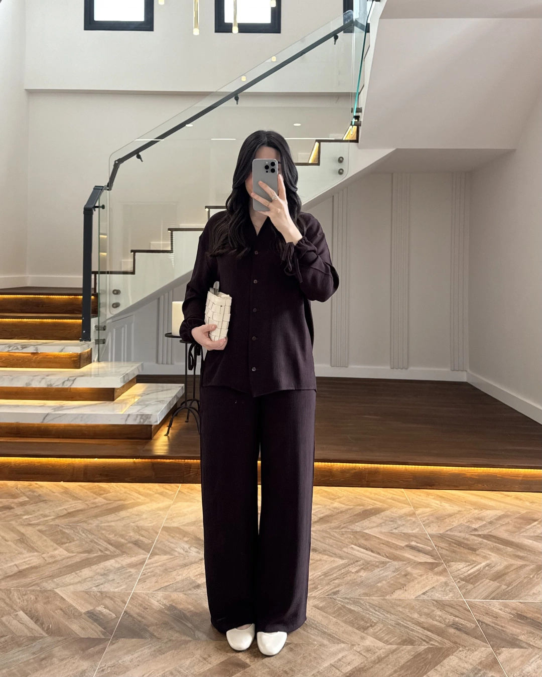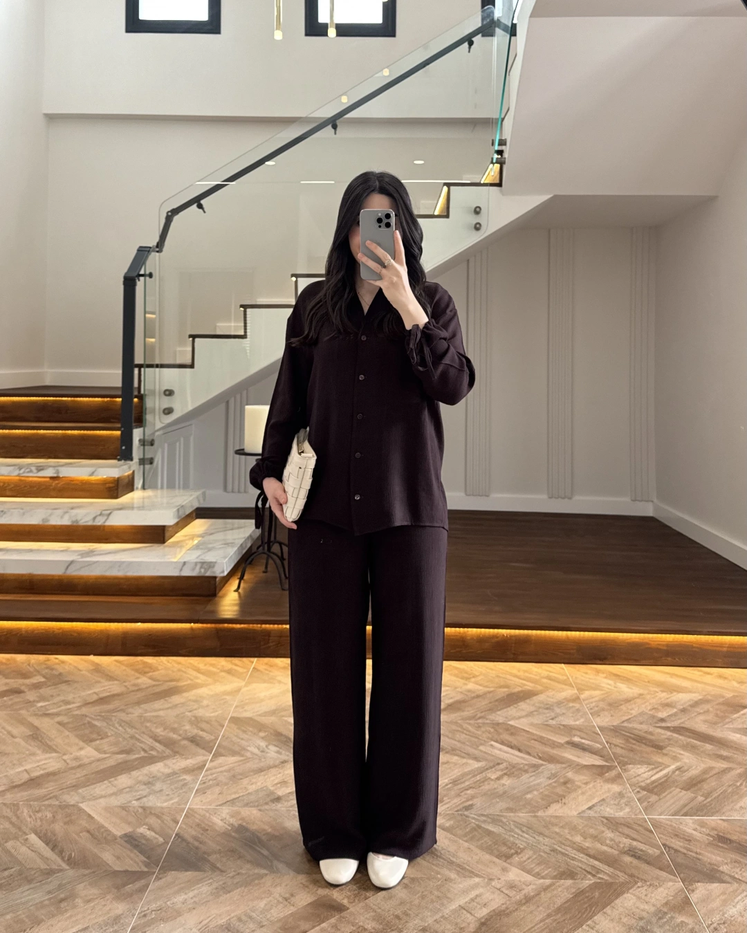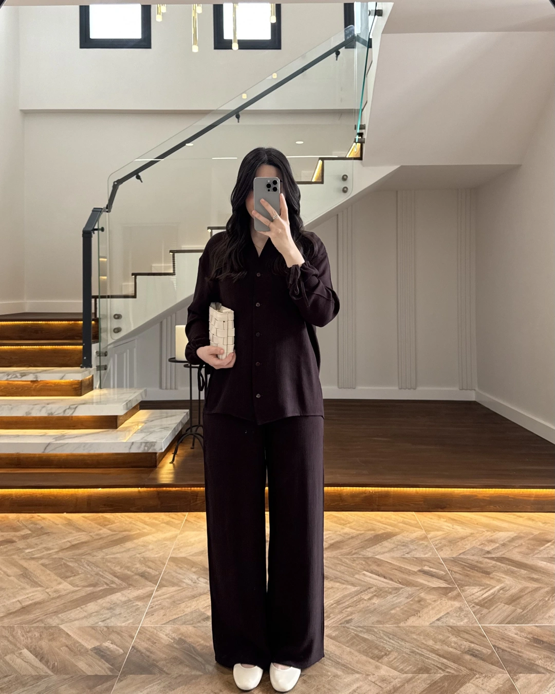 KAHVE VİSKON GÖMLEK TAKIM-9050