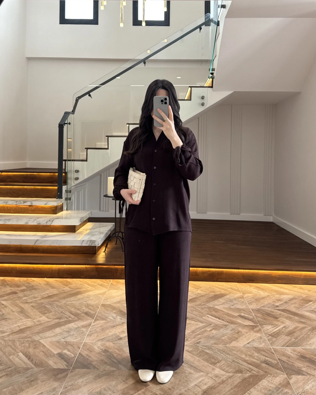 KAHVE PİLE DETAY V YAK GÖMLEK-2222