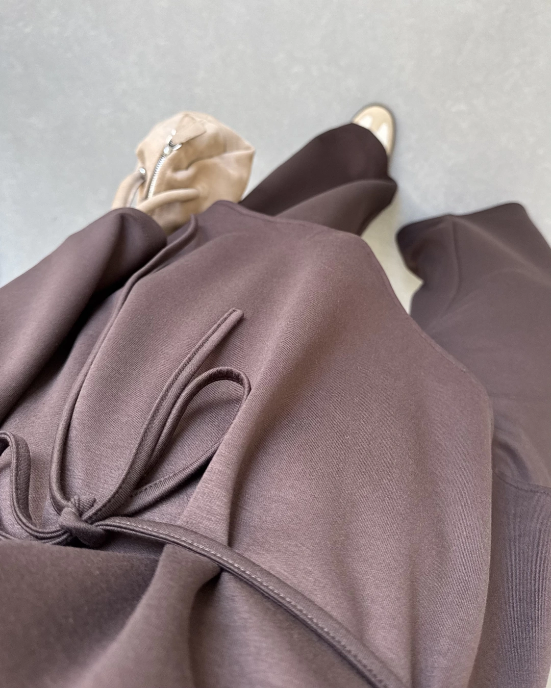 KAHVE BELİ KUŞAKLI PİLELİ MODAL TAKIM
