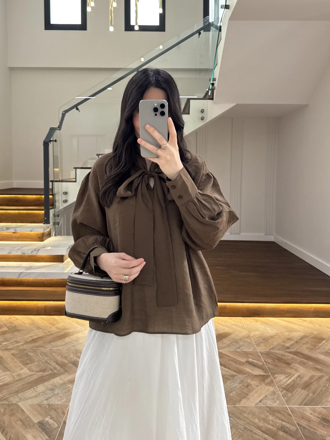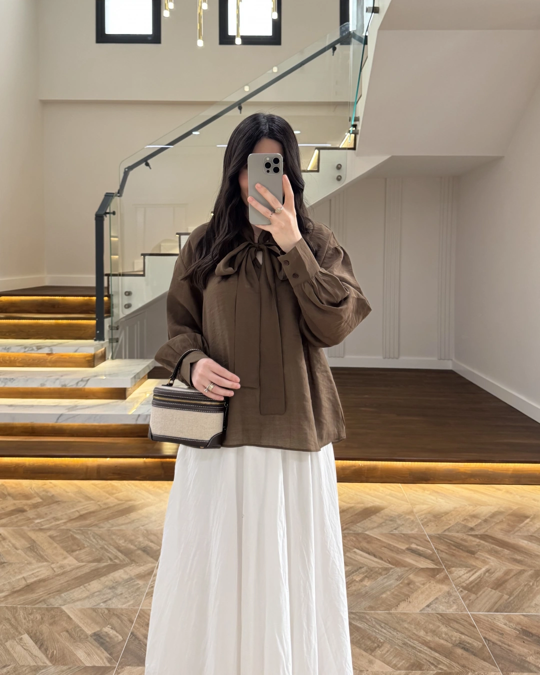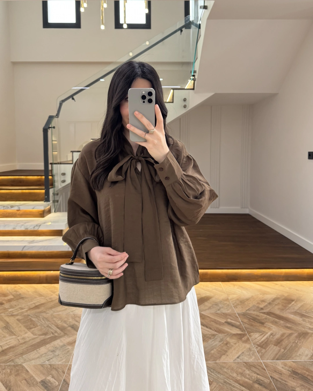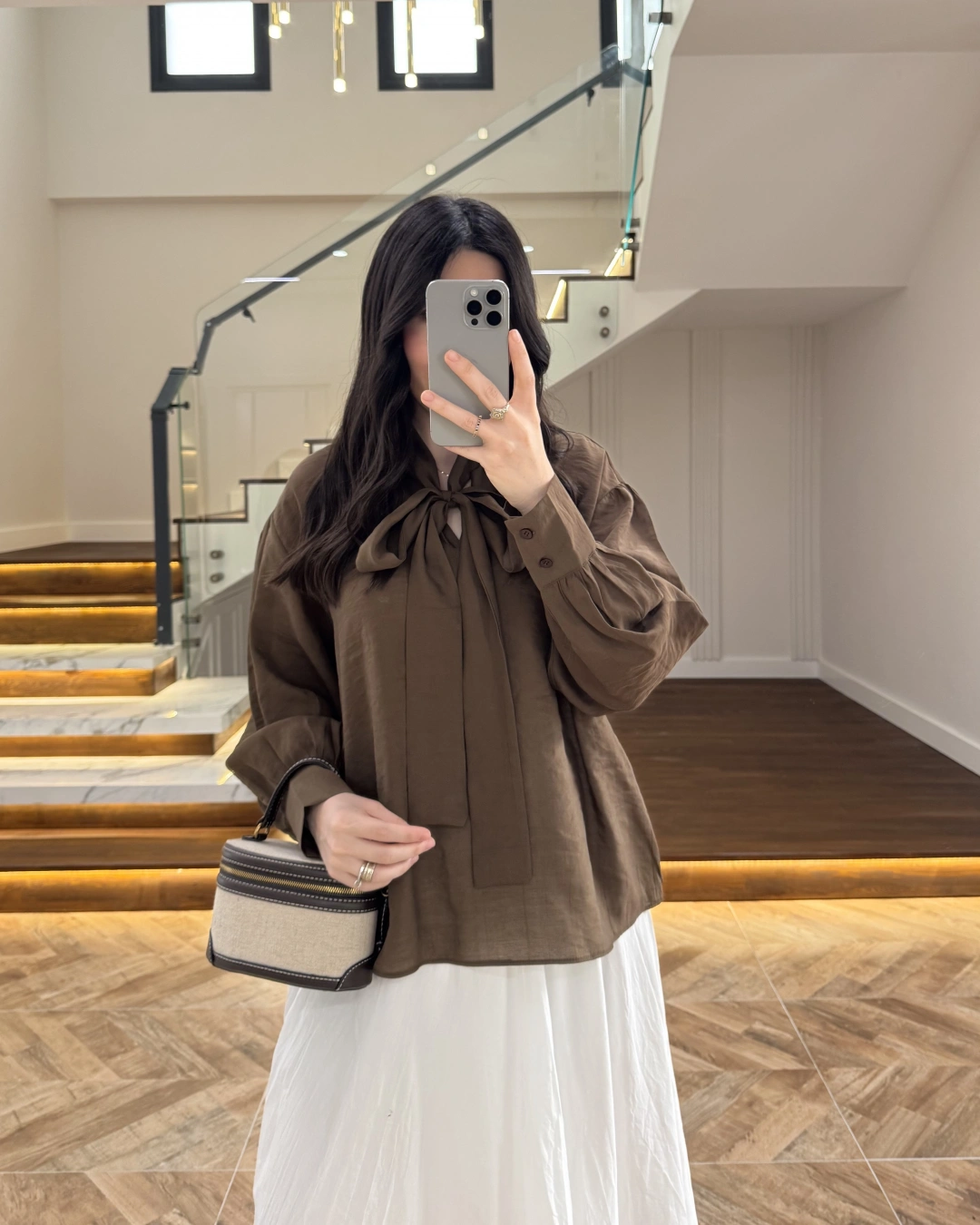 KAHVE PUANTİYELİ SALAŞ BLUZ