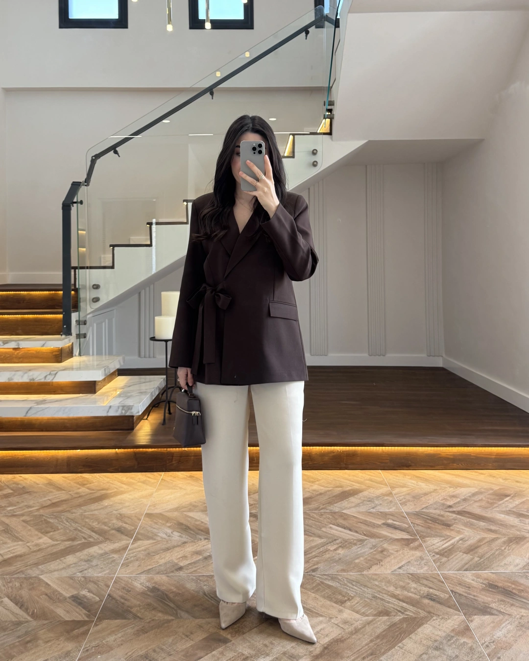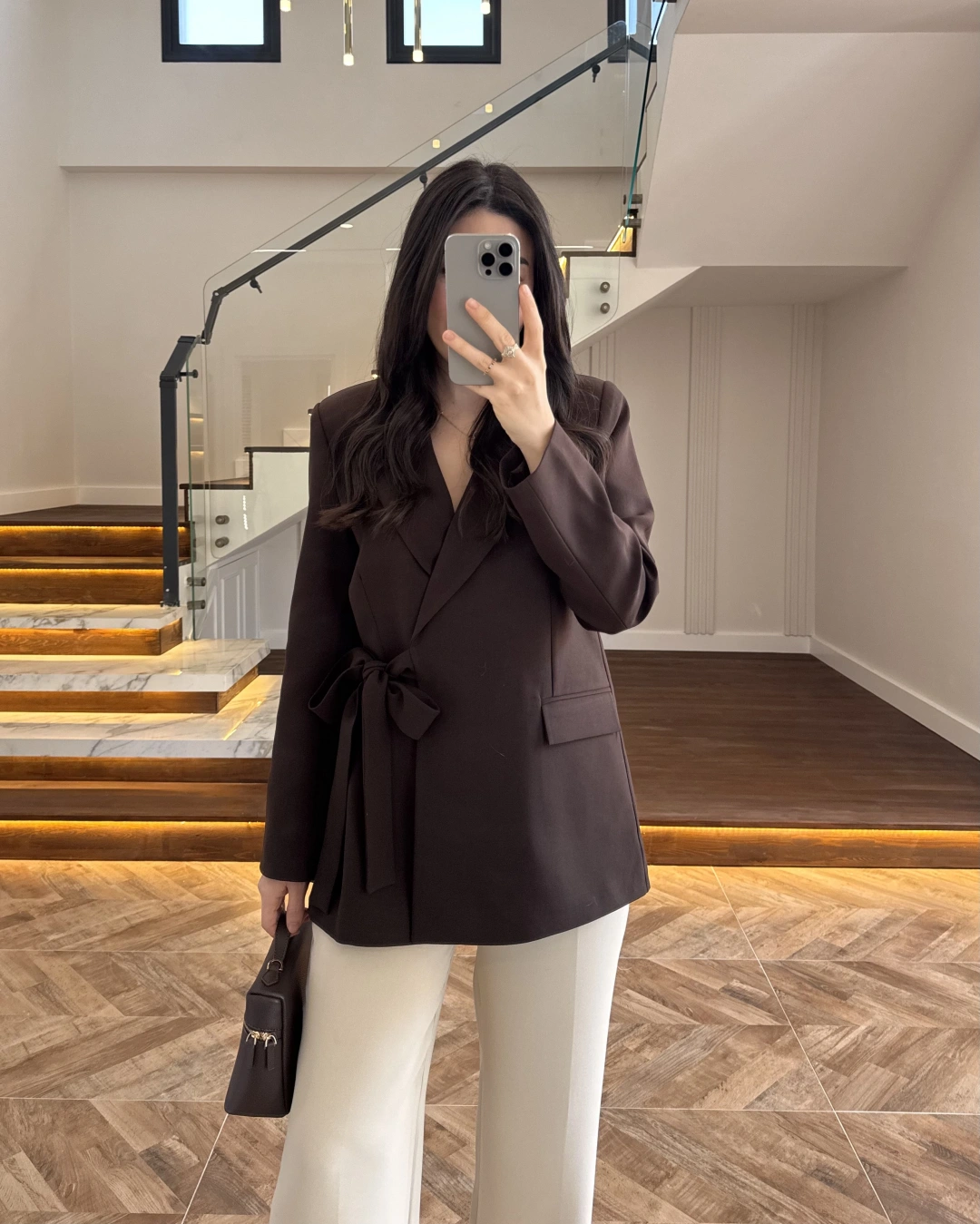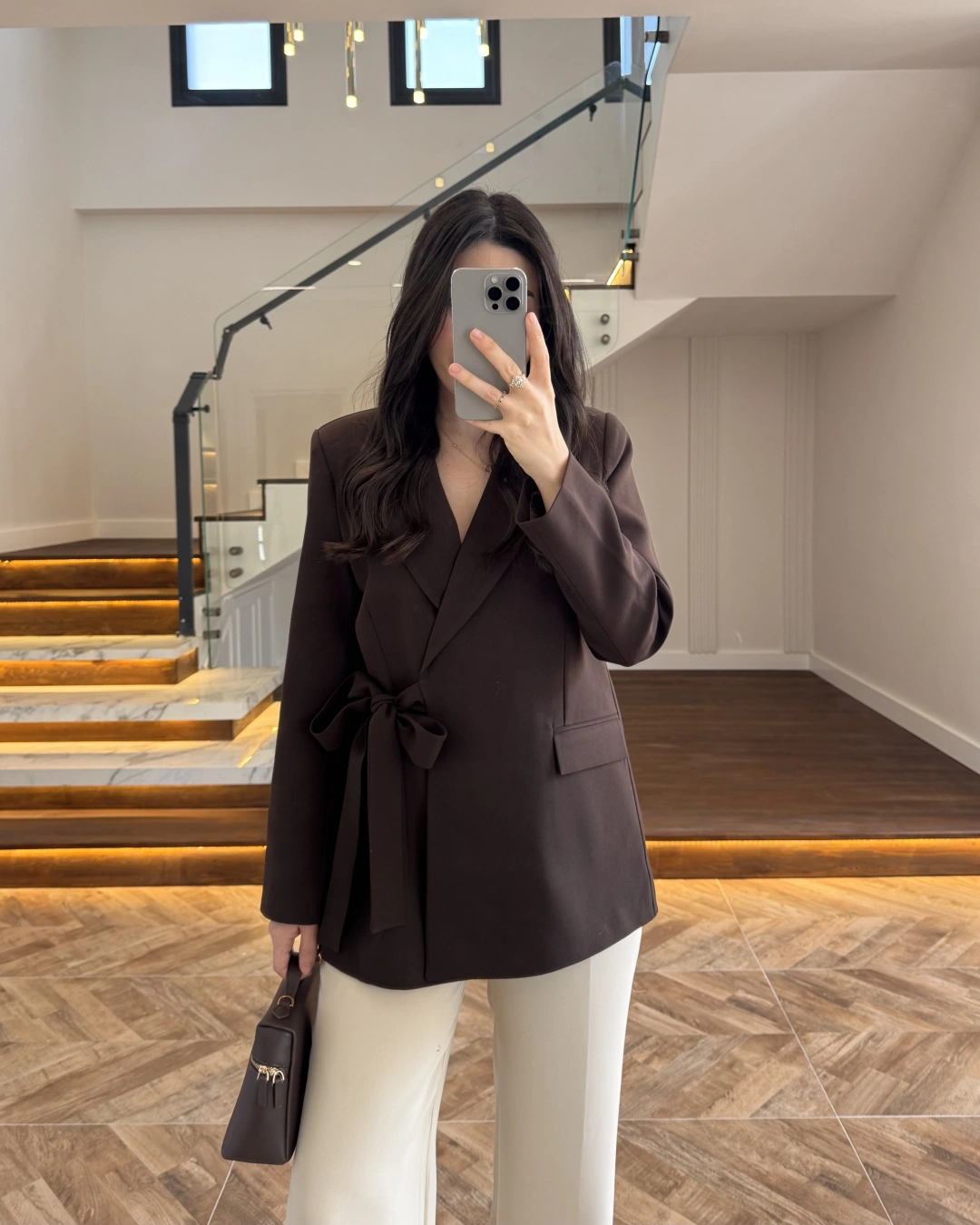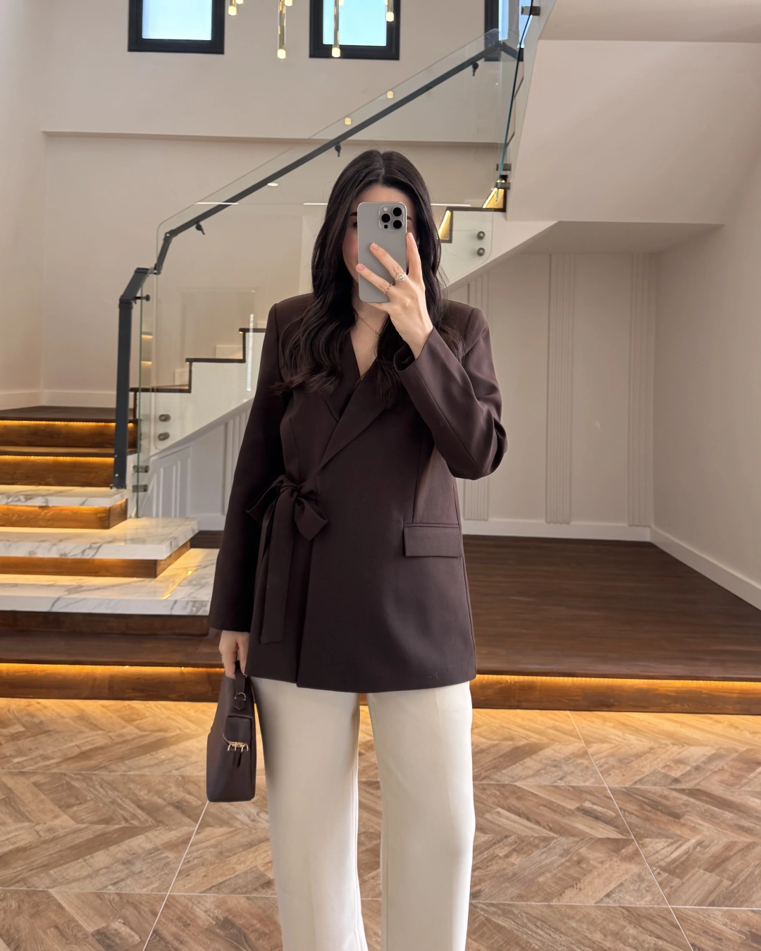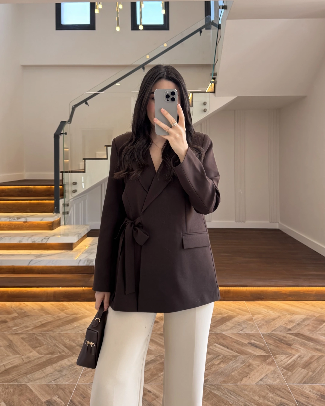 KAHVE BAĞLAMA DETAYLI BLAZER CEKET -7657