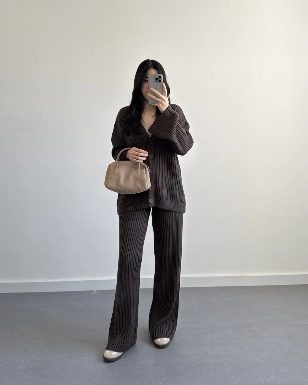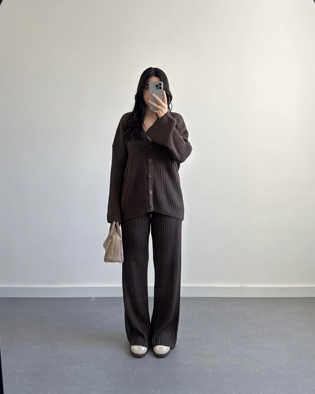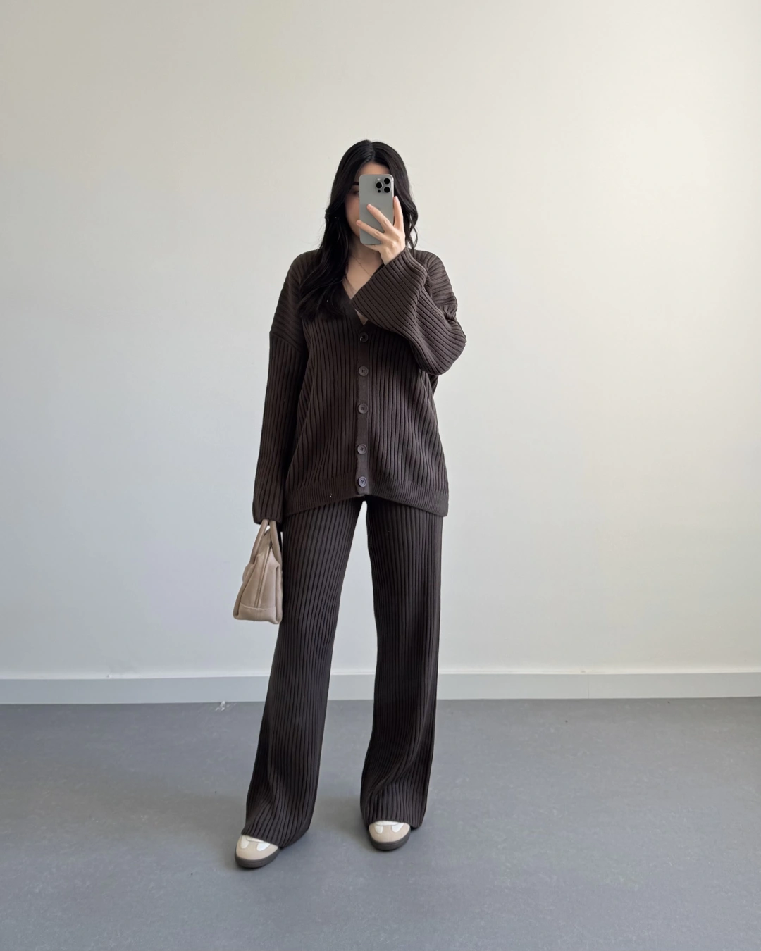 KAHVE BASİC FİTİLLİ HIRKA TAKIM