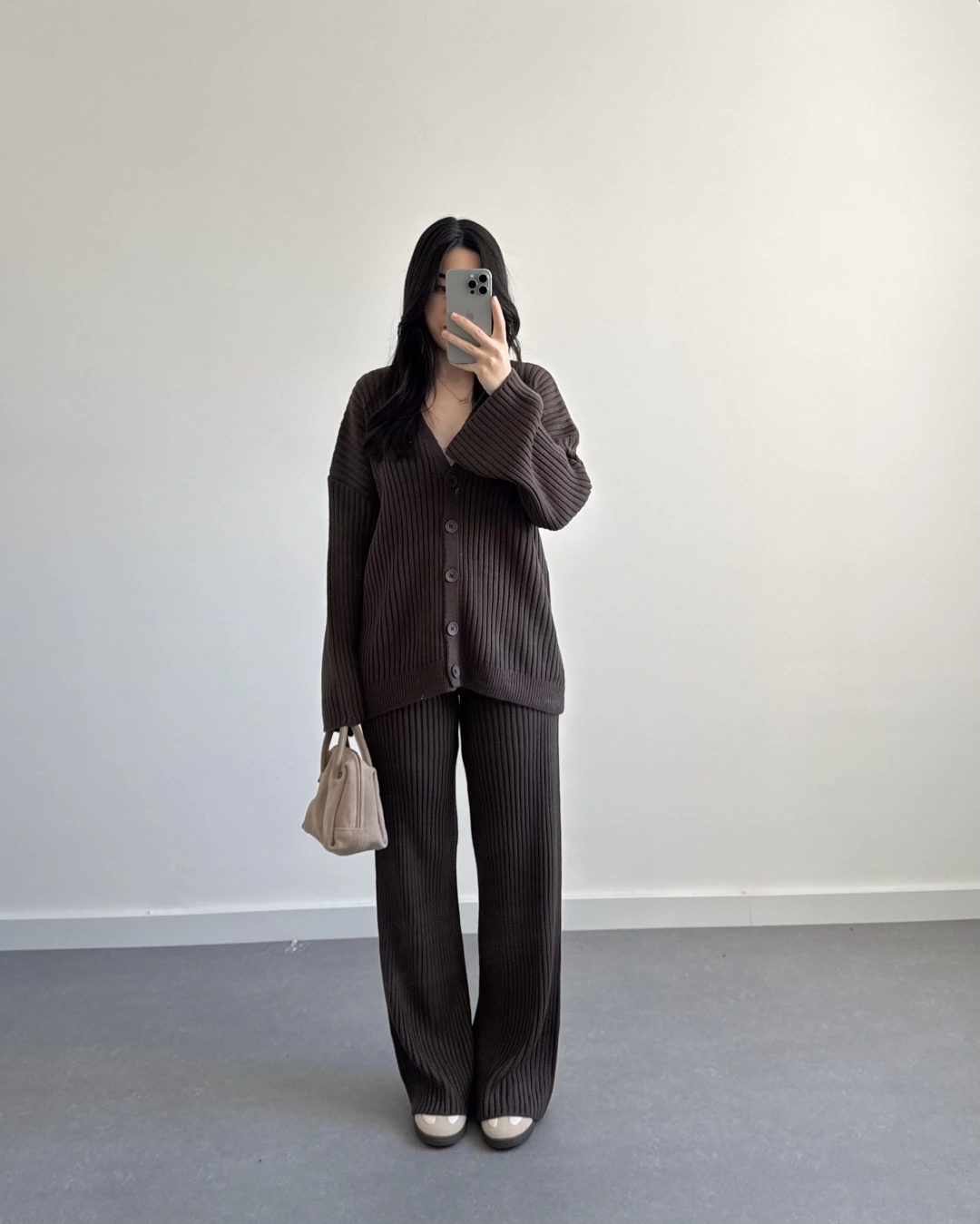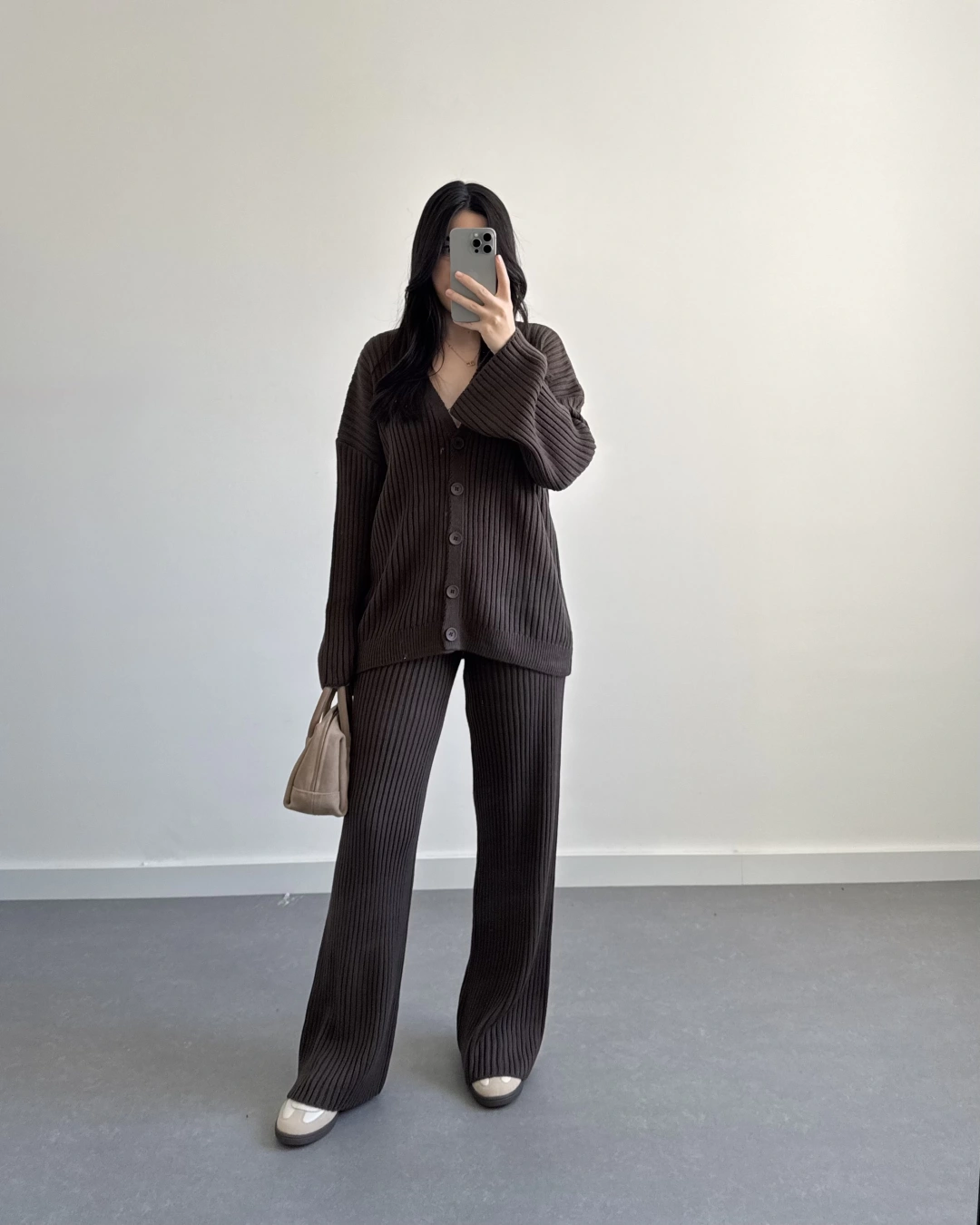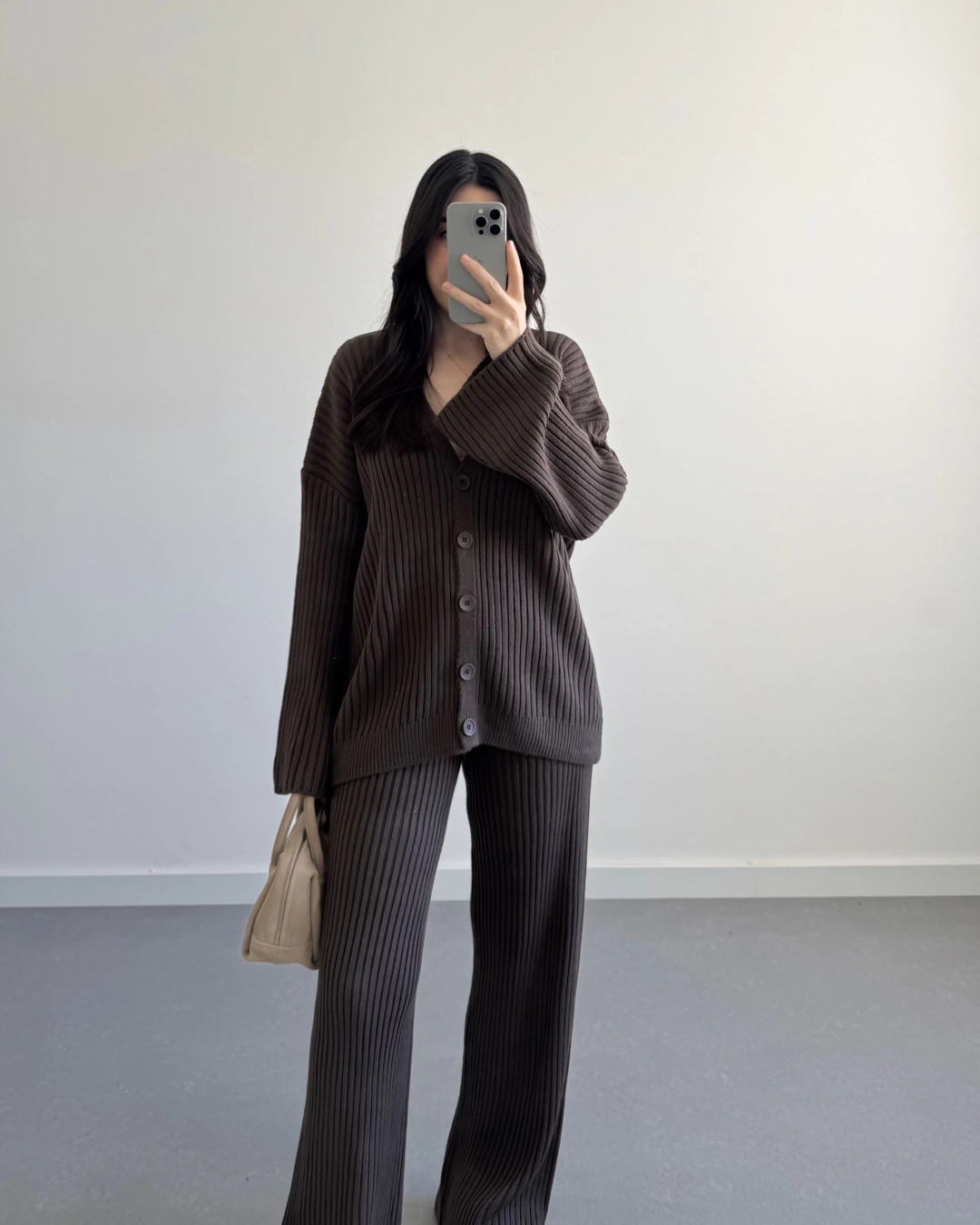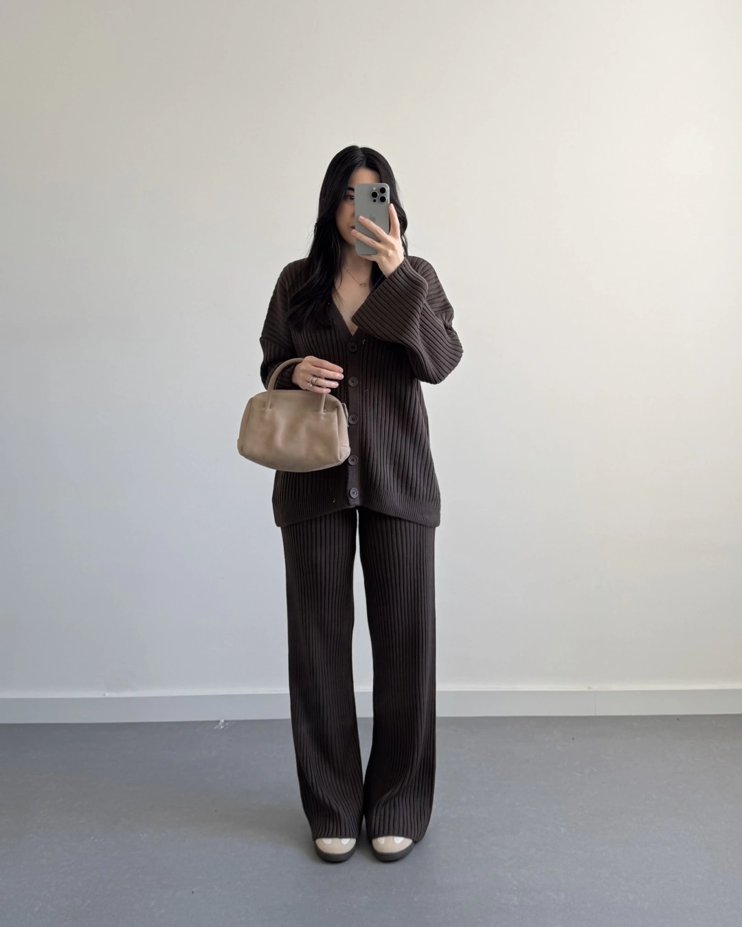 KAHVE BASİC FİTİLLİ HIRKA TAKIM