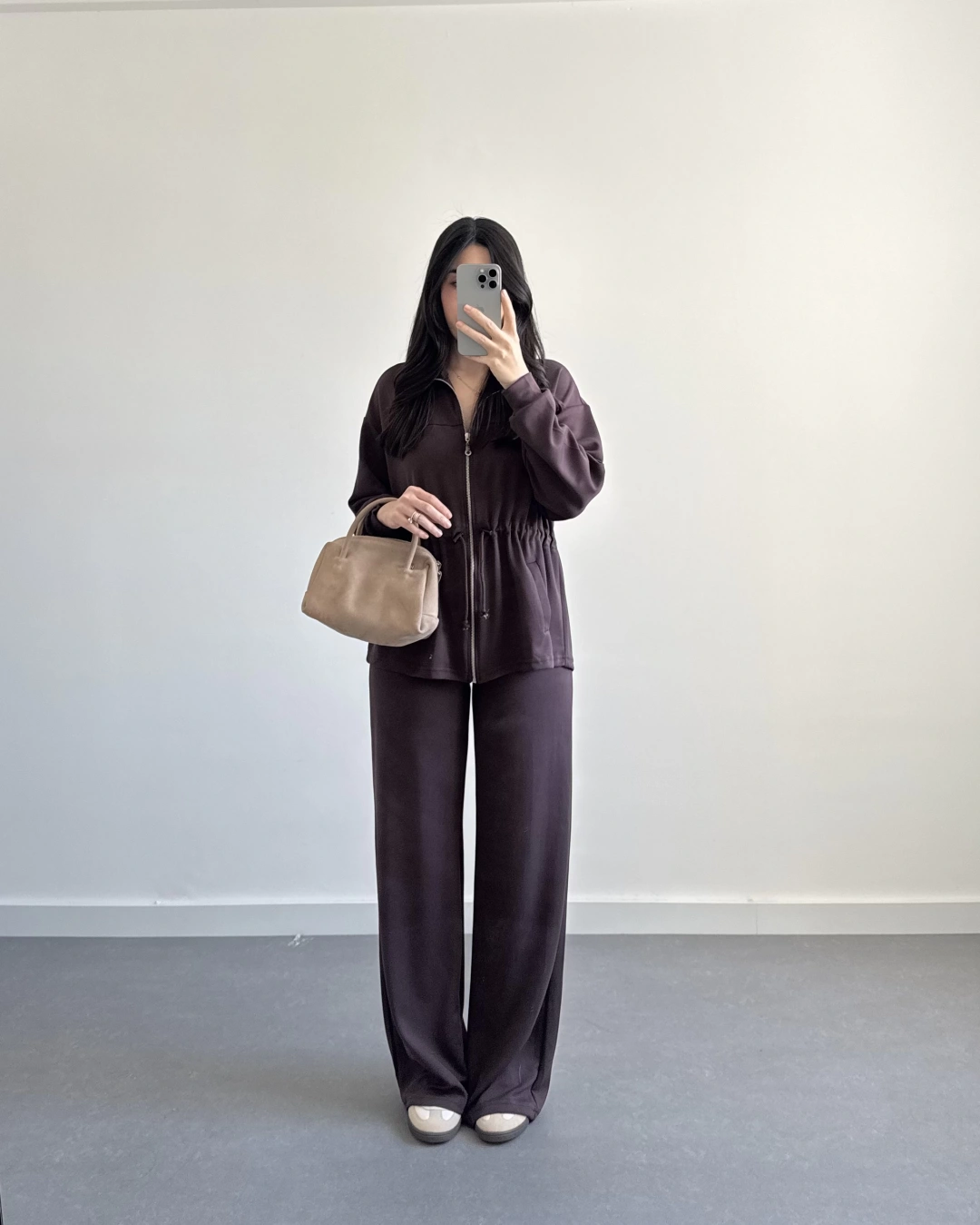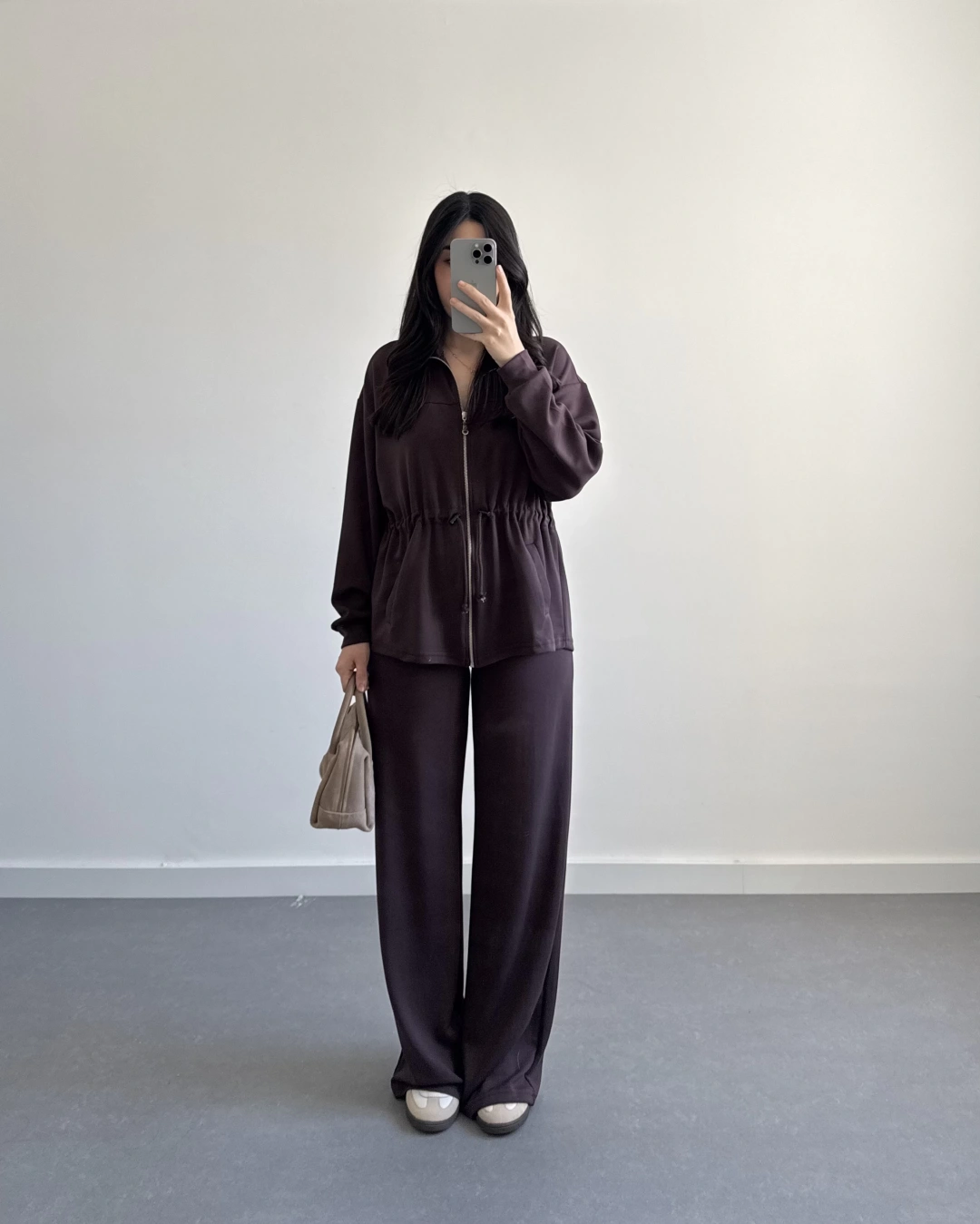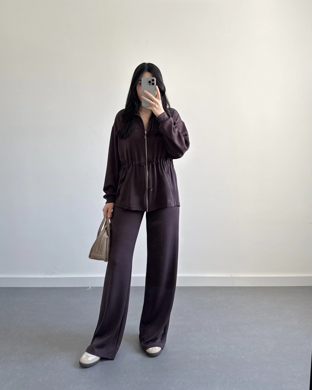 KAHVE BELİ BÜZGÜ İPLİ MODAL TAKIM