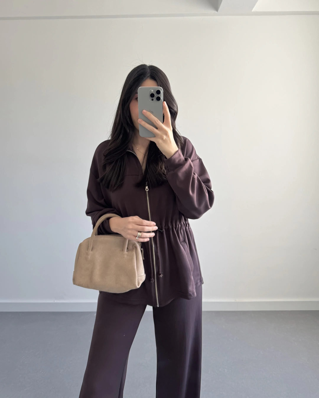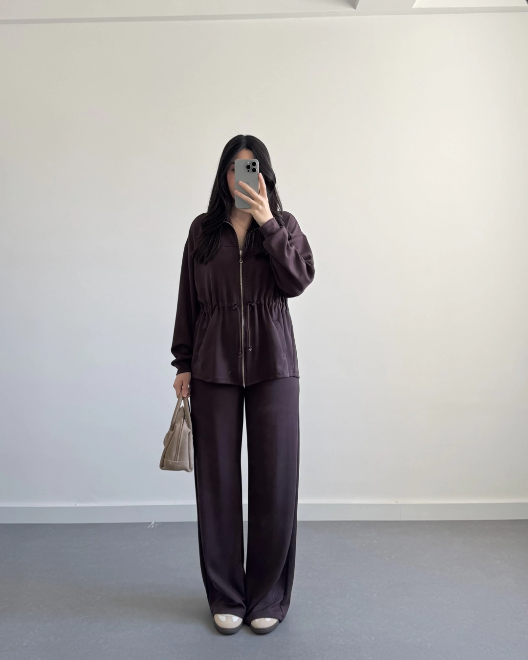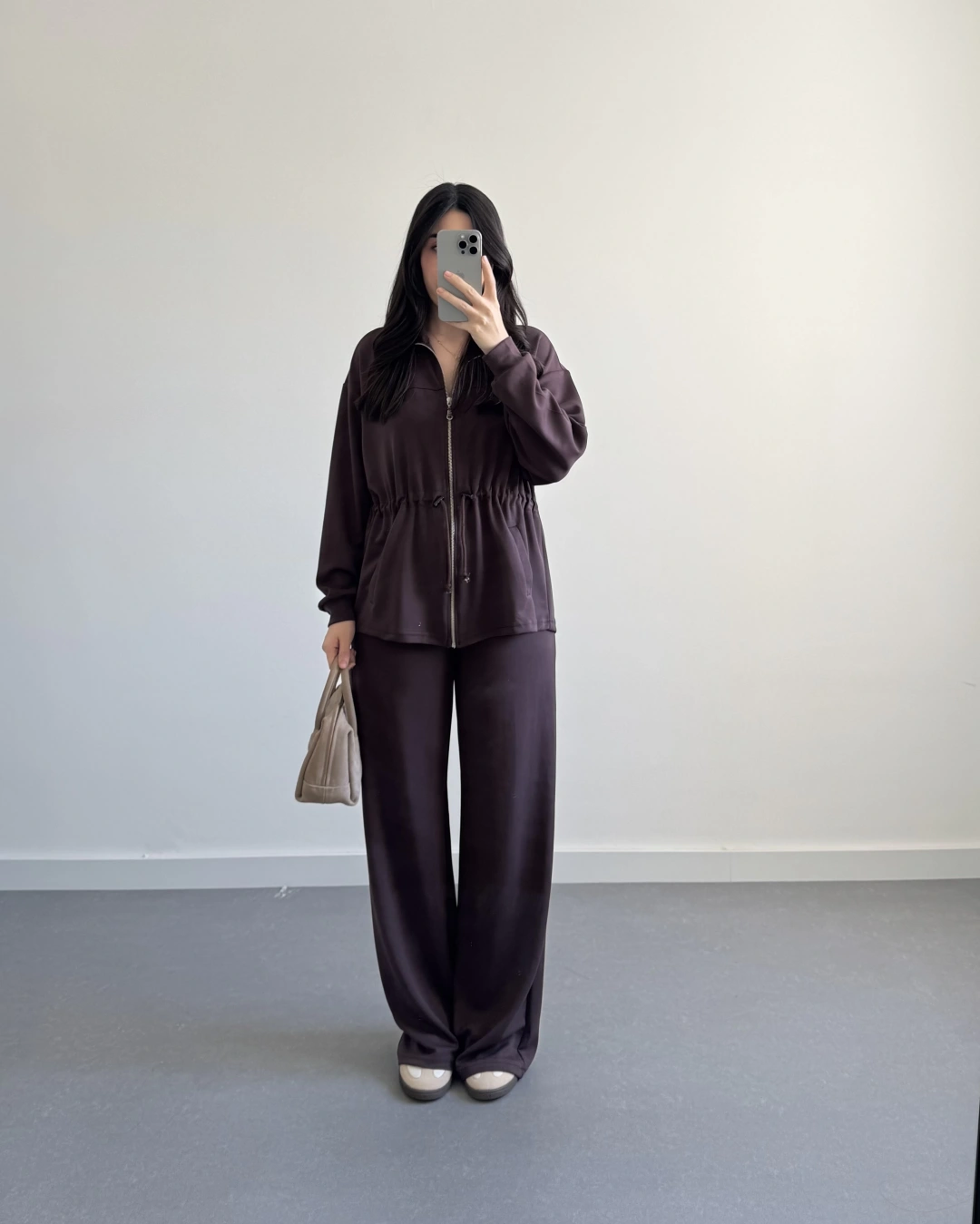 KAHVE BELİ BÜZGÜ İPLİ MODAL TAKIM